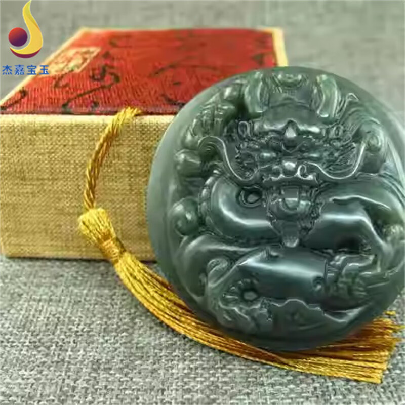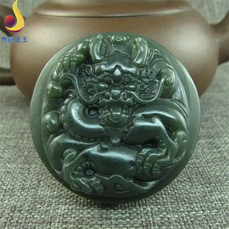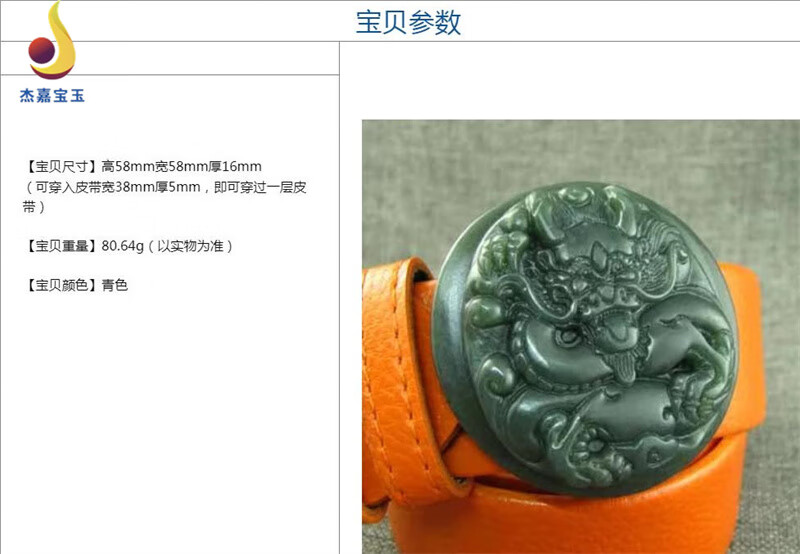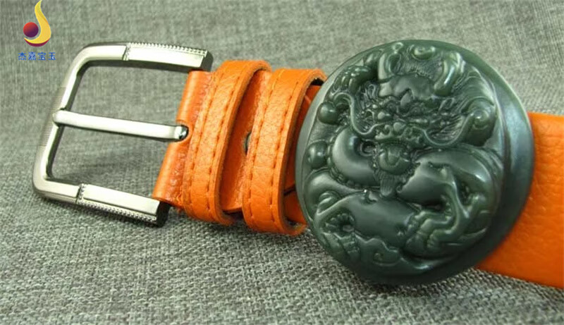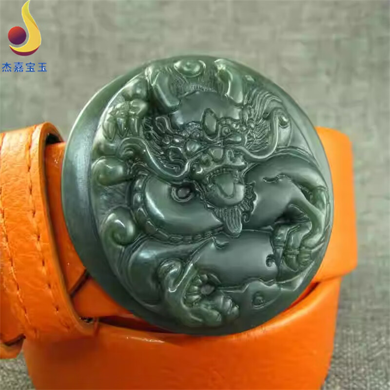 杰嘉宝玉原创和田玉青玉龙皮带扣腰扣龙腾四海男士腰带玉石挂件腰佩证书