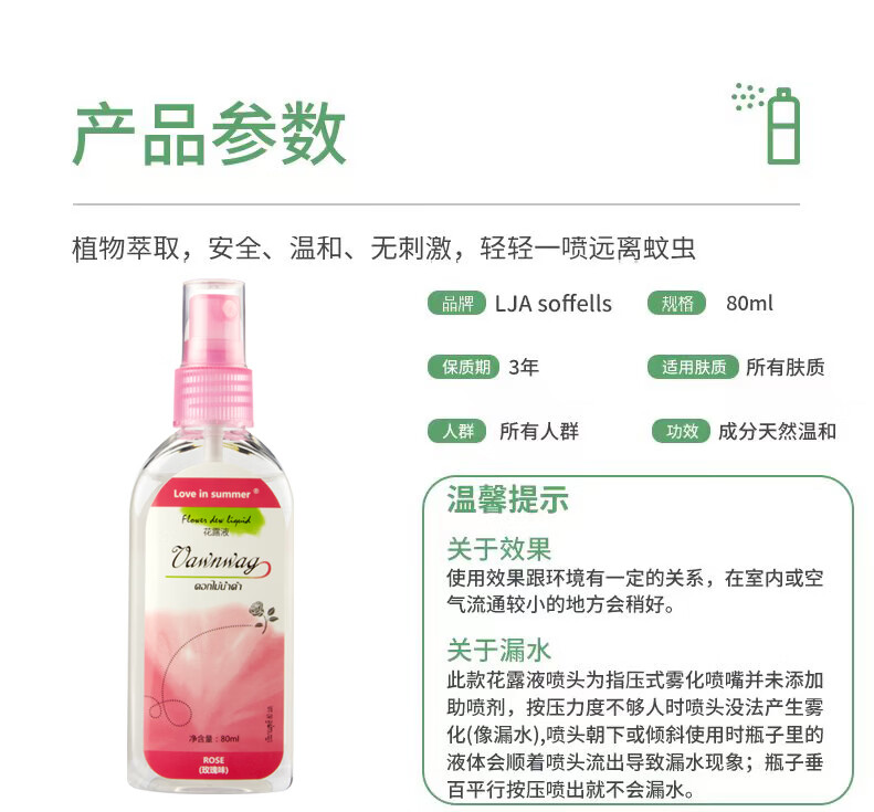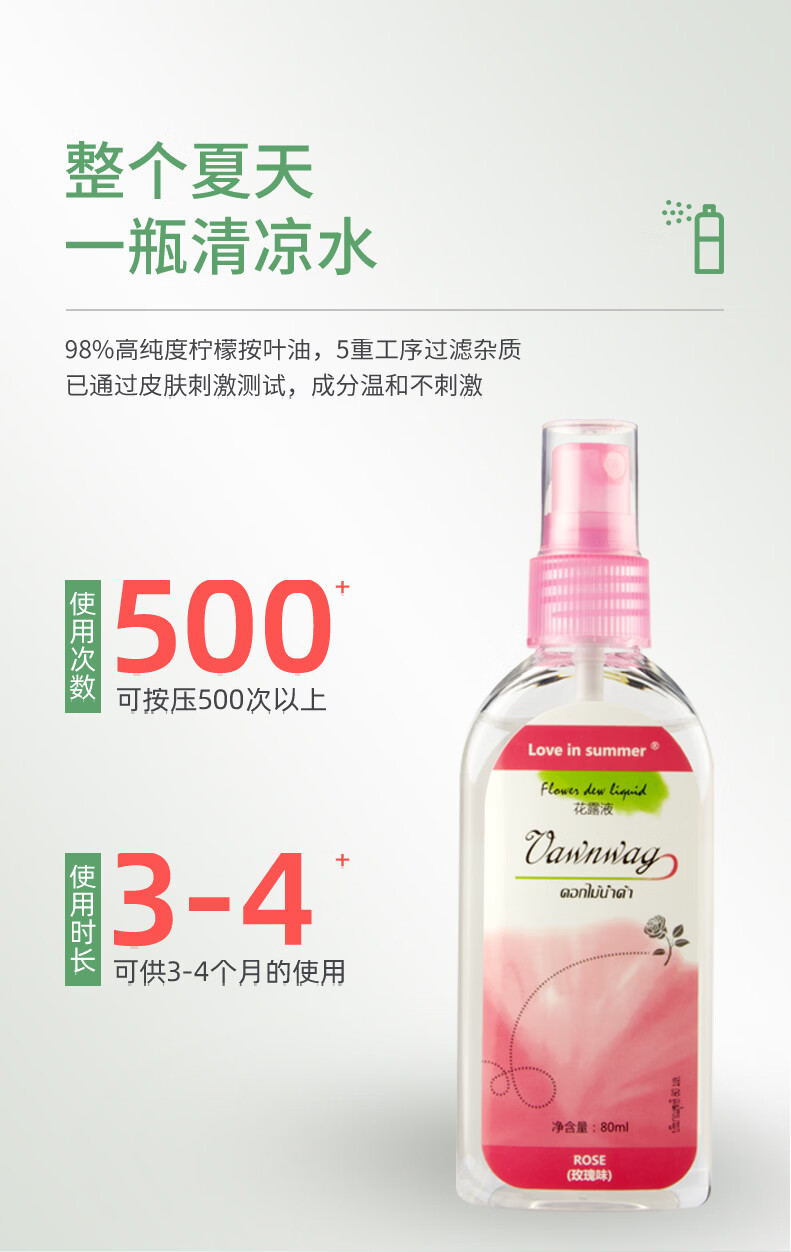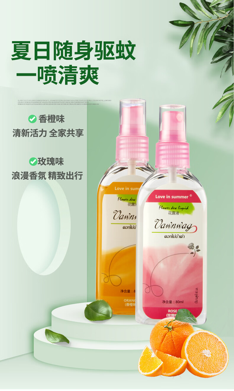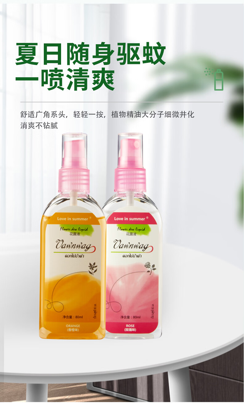 Love in summer泰国爆款花露水夏季蚊虫驱除喷雾神器灭驱蚊止痒玫瑰香橙平价好用 2瓶花露水组合套装(玫瑰味+香橙味)