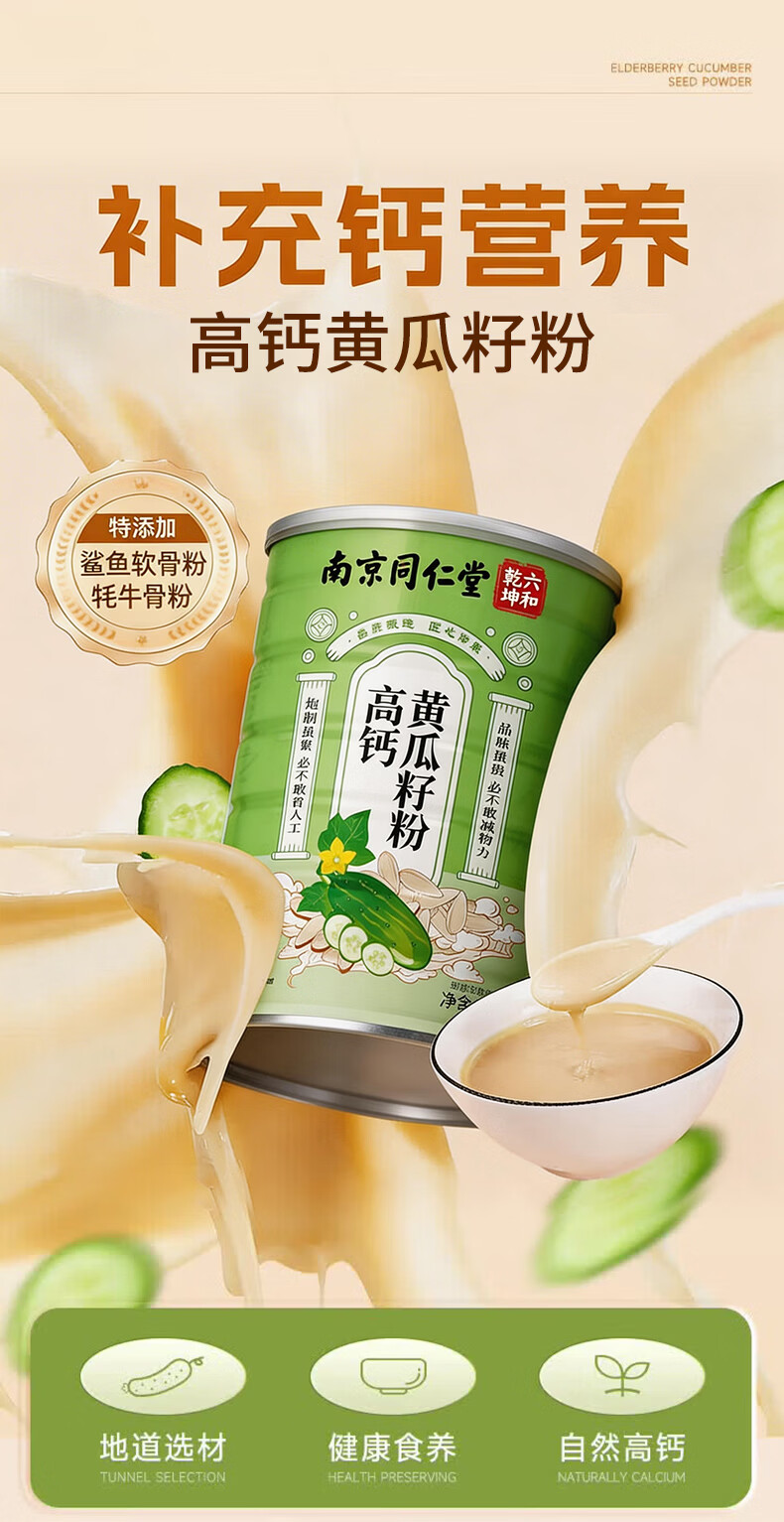 同仁堂(TRT)黄瓜籽粉高钙富硒补钙黄瓜籽粉骨折专用熟粉纯黄瓜籽正品0添加 500g*1罐 【促钙吸收 父母常备】 黄瓜子熟粉无加糖中老年代餐自即食营