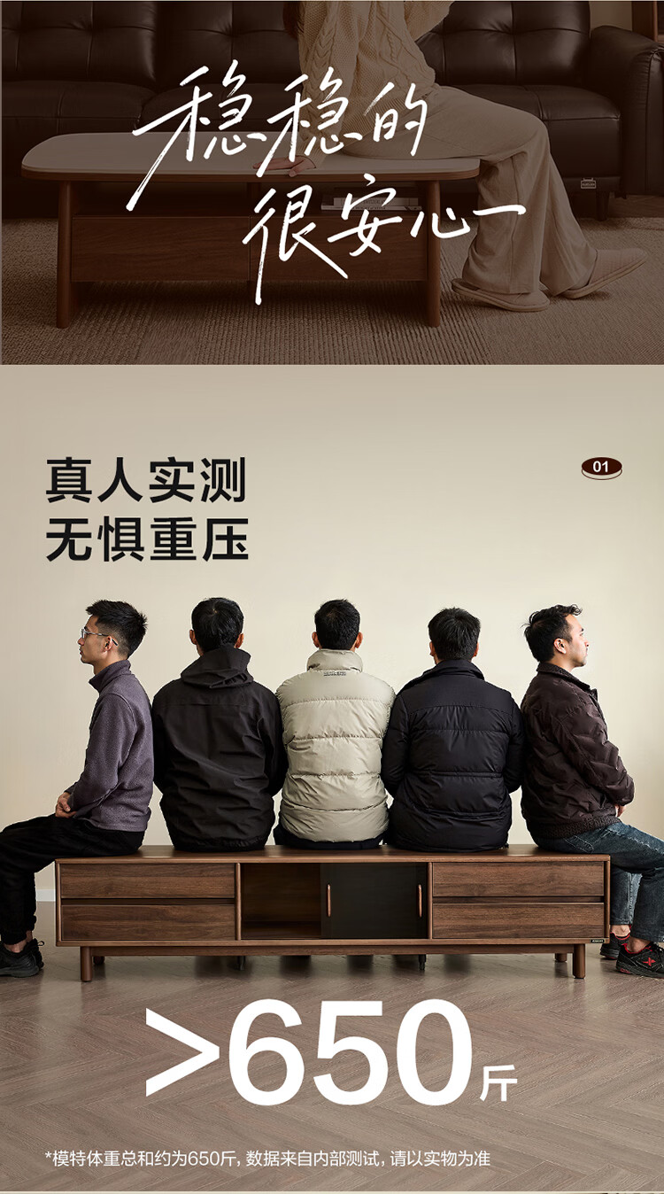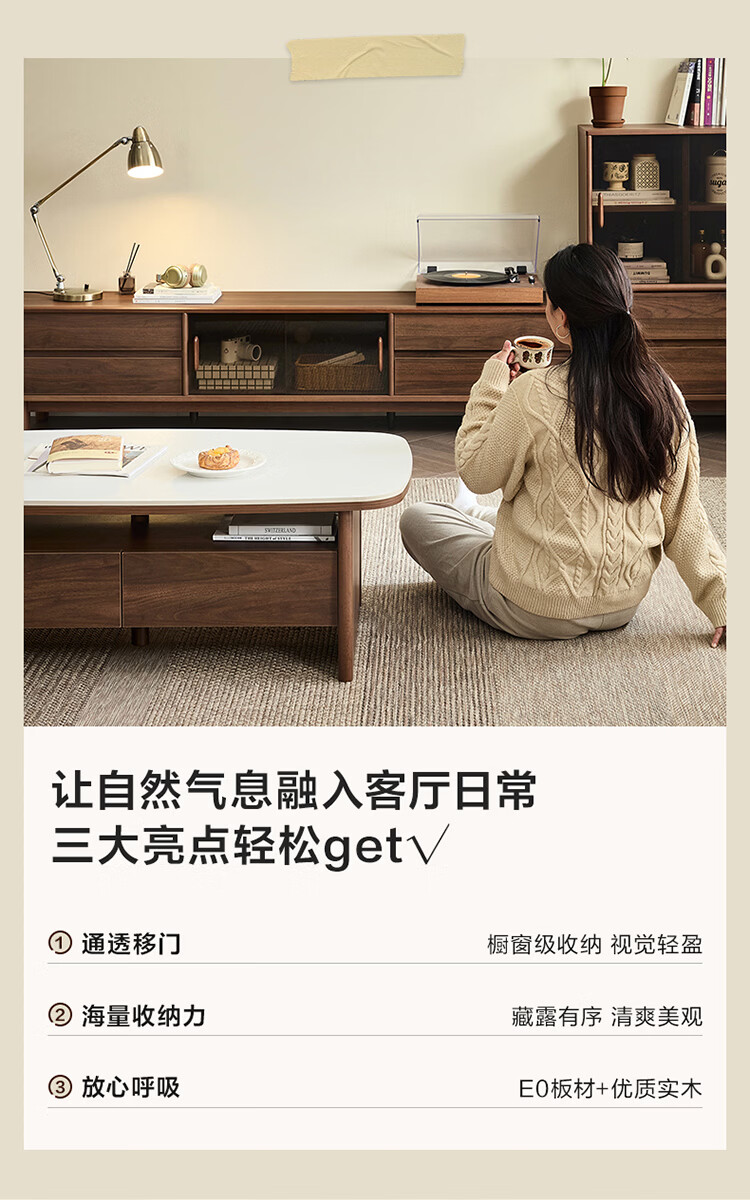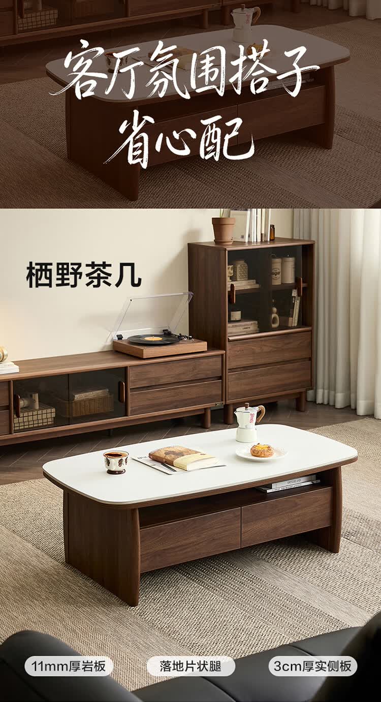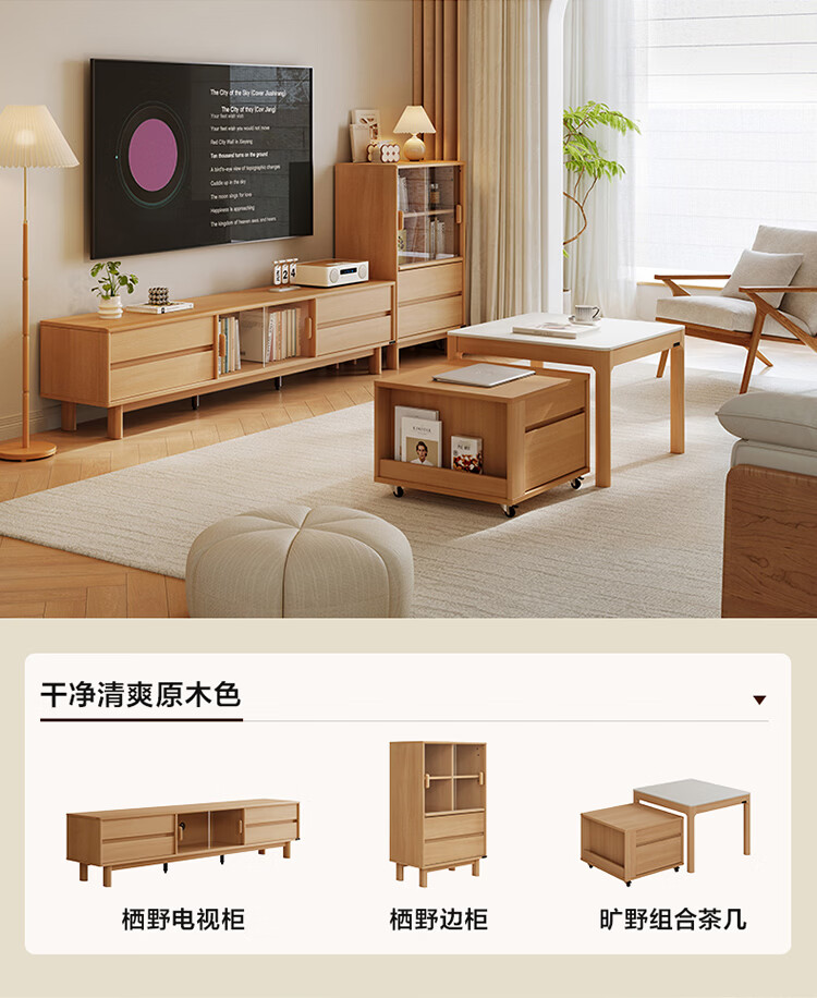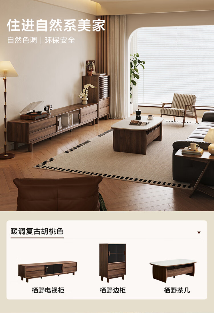 全友家居原木风茶几电视柜组合加粗实木脚茶几客厅轻奢高级感2026新款 【胡桃色】电视柜主柜+栖野茶几