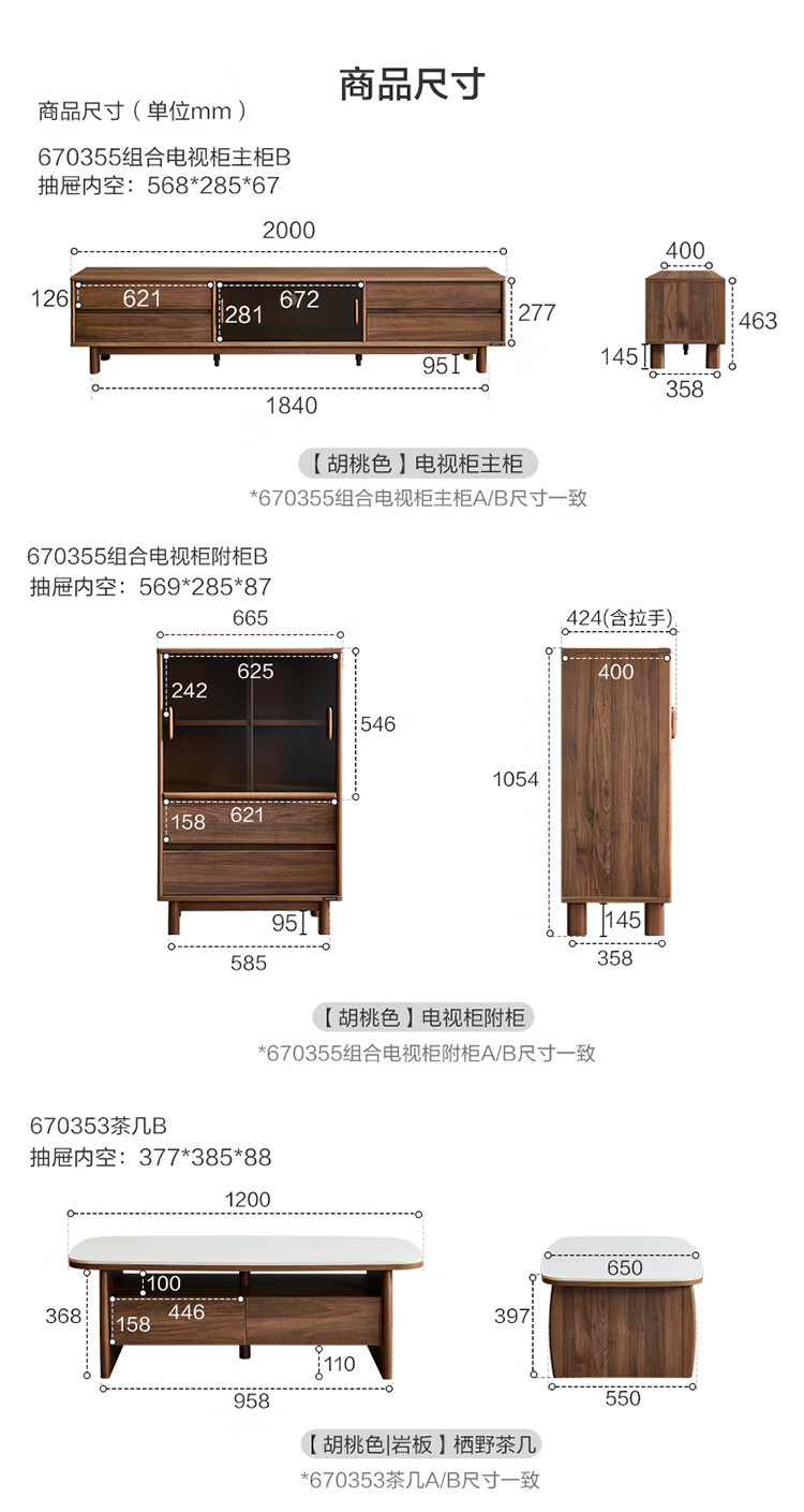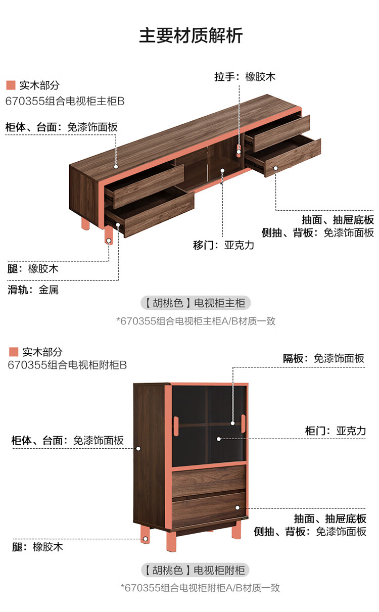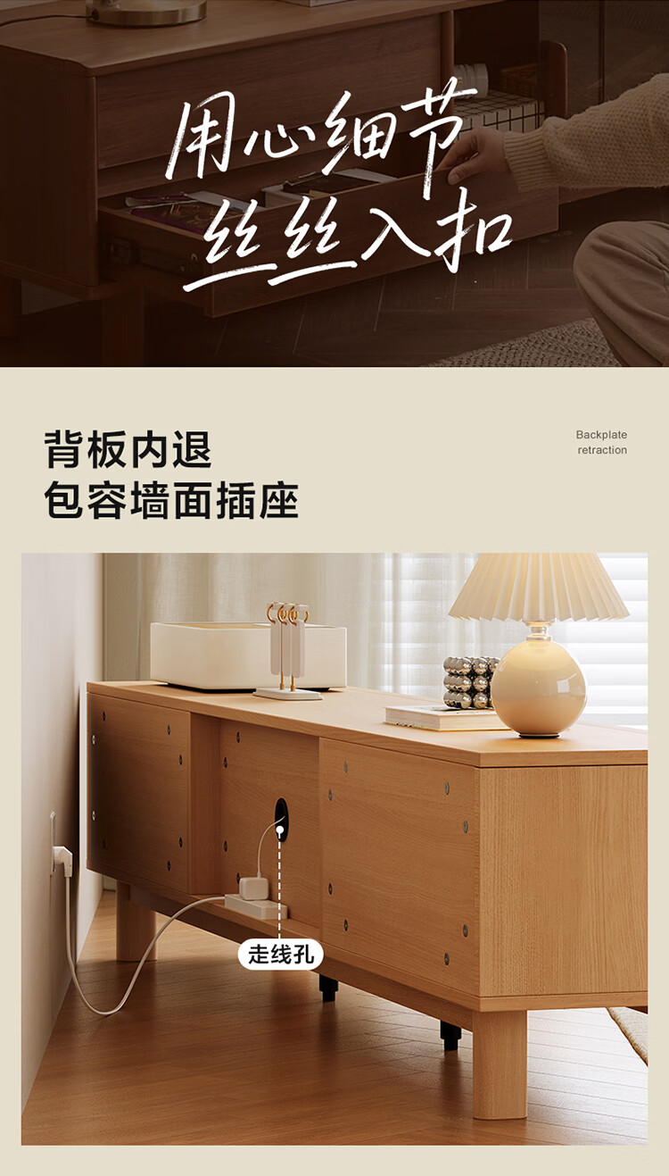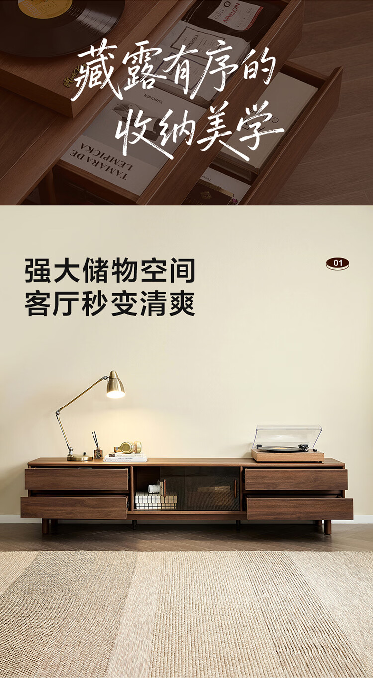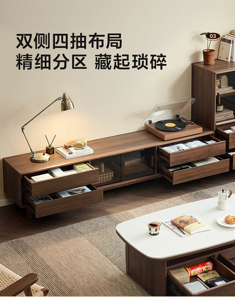 全友家居原木风茶几电视柜客厅轻奢高级感2026新款组合柜沙发边柜家具 【胡桃色 | 红橡木】2.0 米电视柜
