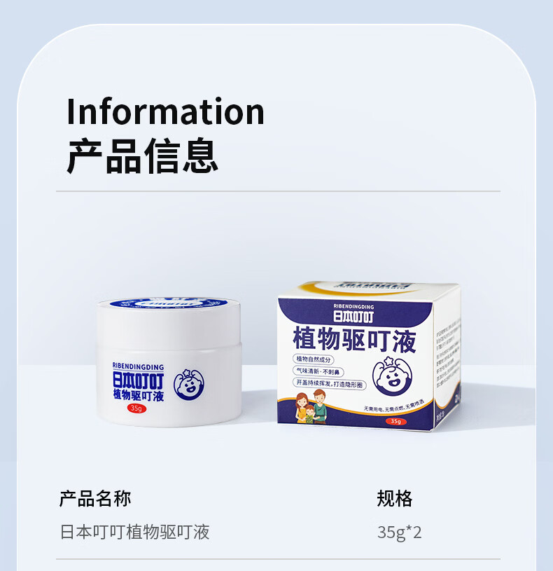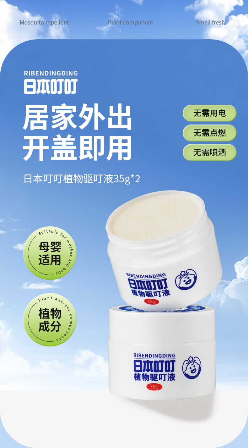 日本叮叮植物驱叮液神器 家用户外便携不插电全家宠物家庭适用香茅盒35g*2