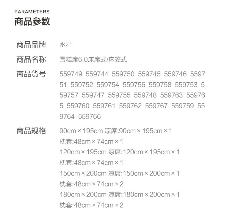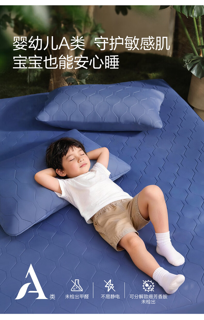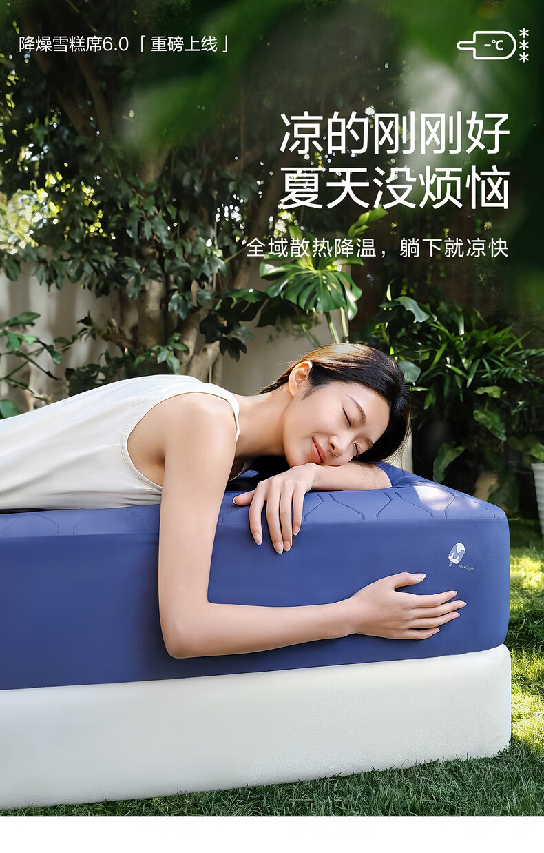 水星家纺凉感雪糕席6.0冰丝凉席子双人凉席1.8x2米可水洗母婴A类三件套