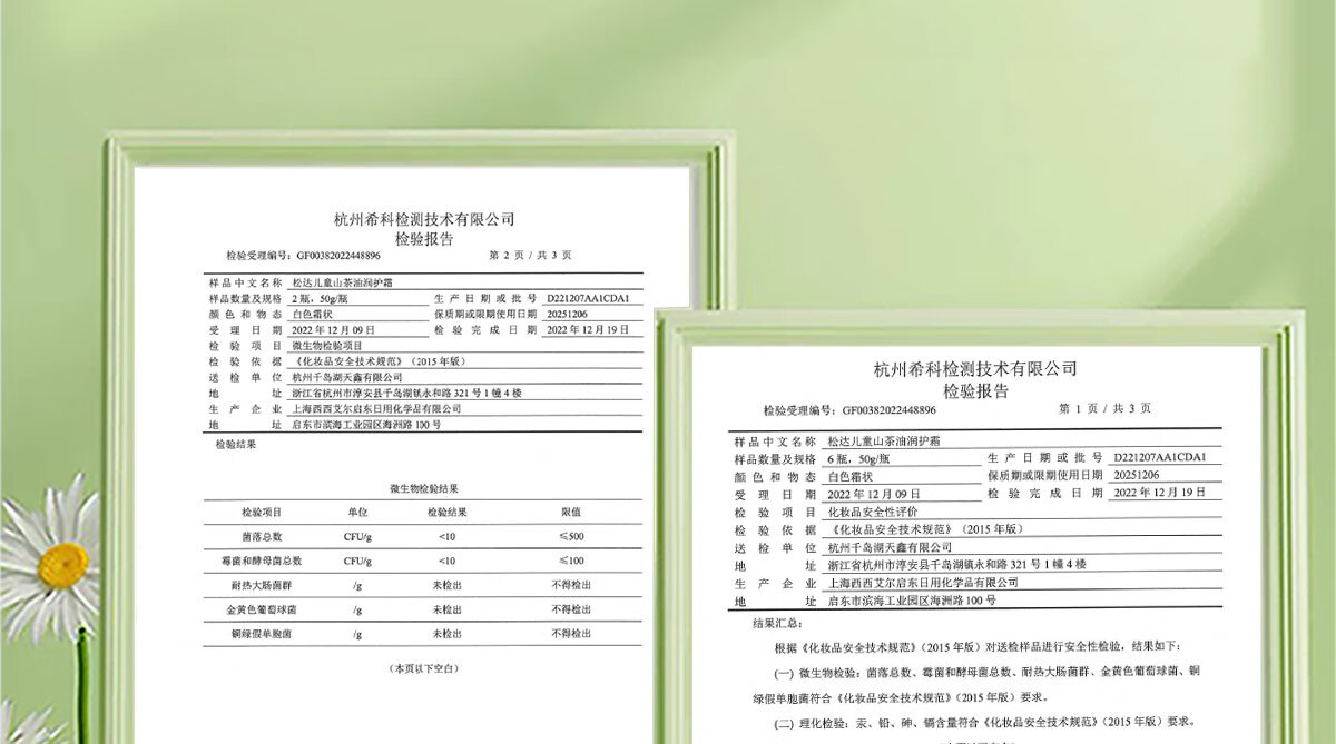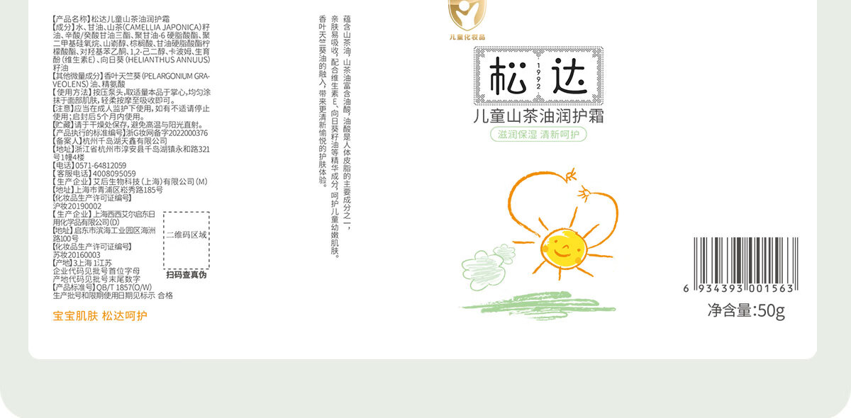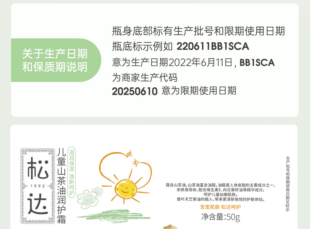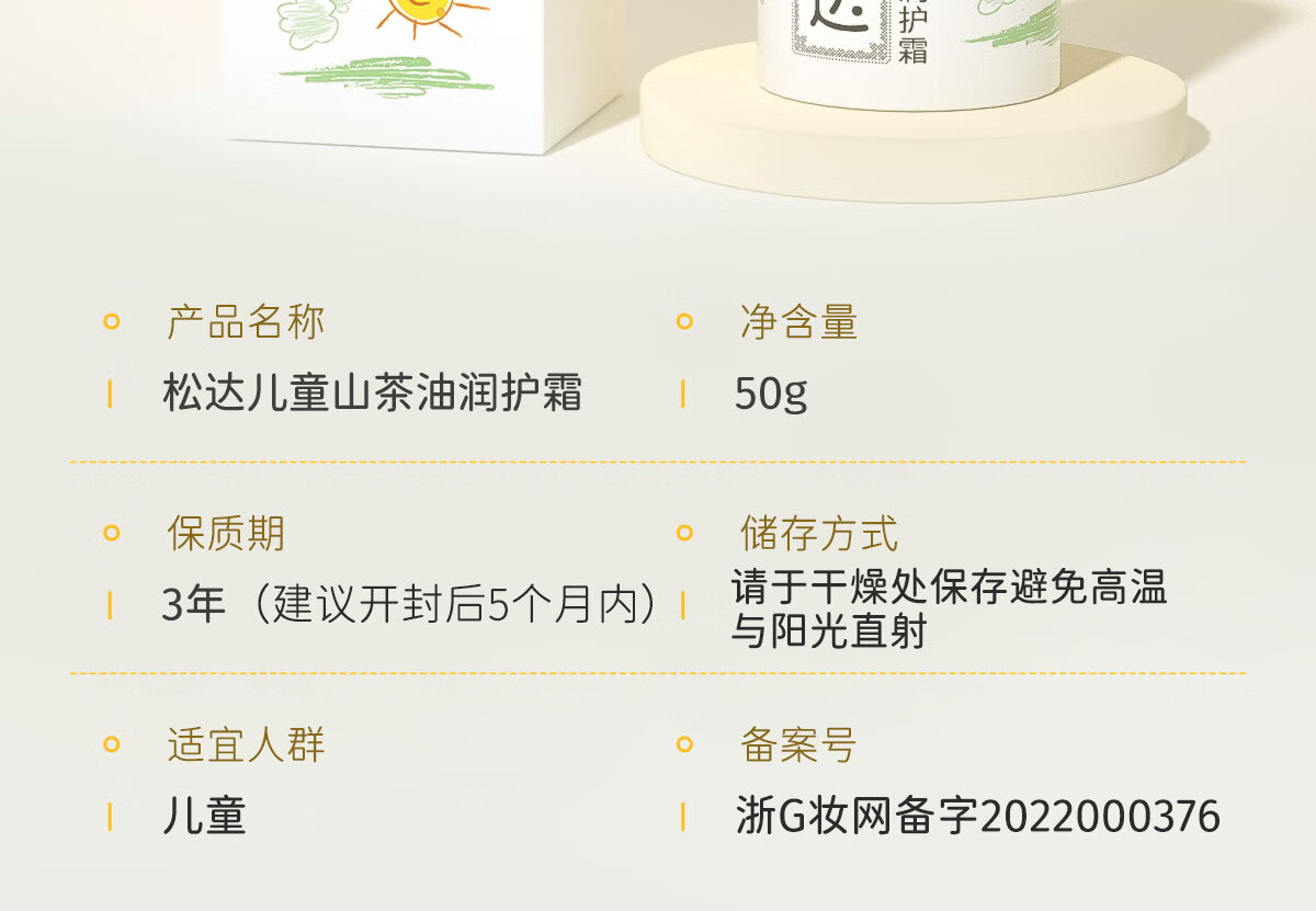 松达 儿童面霜 润护霜 宝宝保湿霜 男女童补水修护霜山茶油 50g