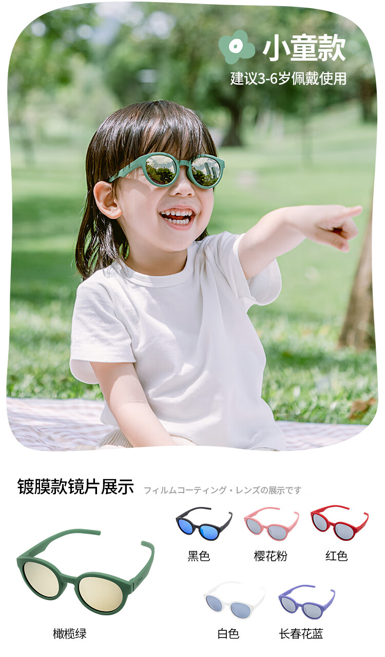 SHUKIKU儿童墨镜男女童太阳镜户外防晒防紫外线护目镜宝宝炫酷眼镜 白色(镀膜镜片) 小童款(3-6岁)