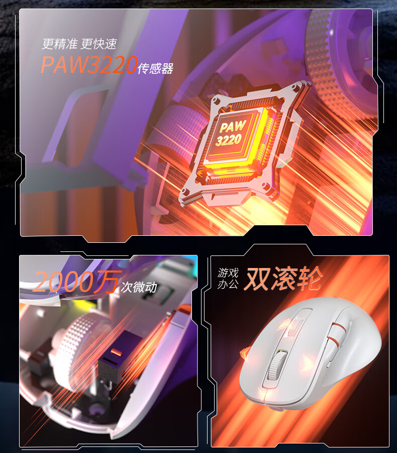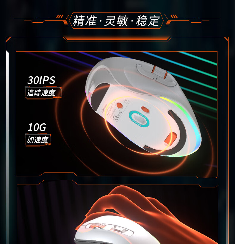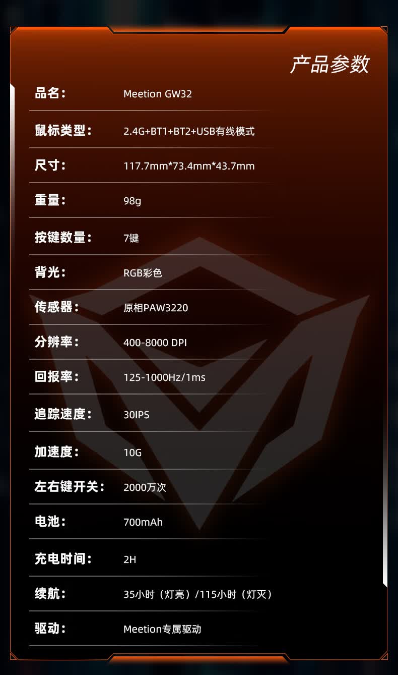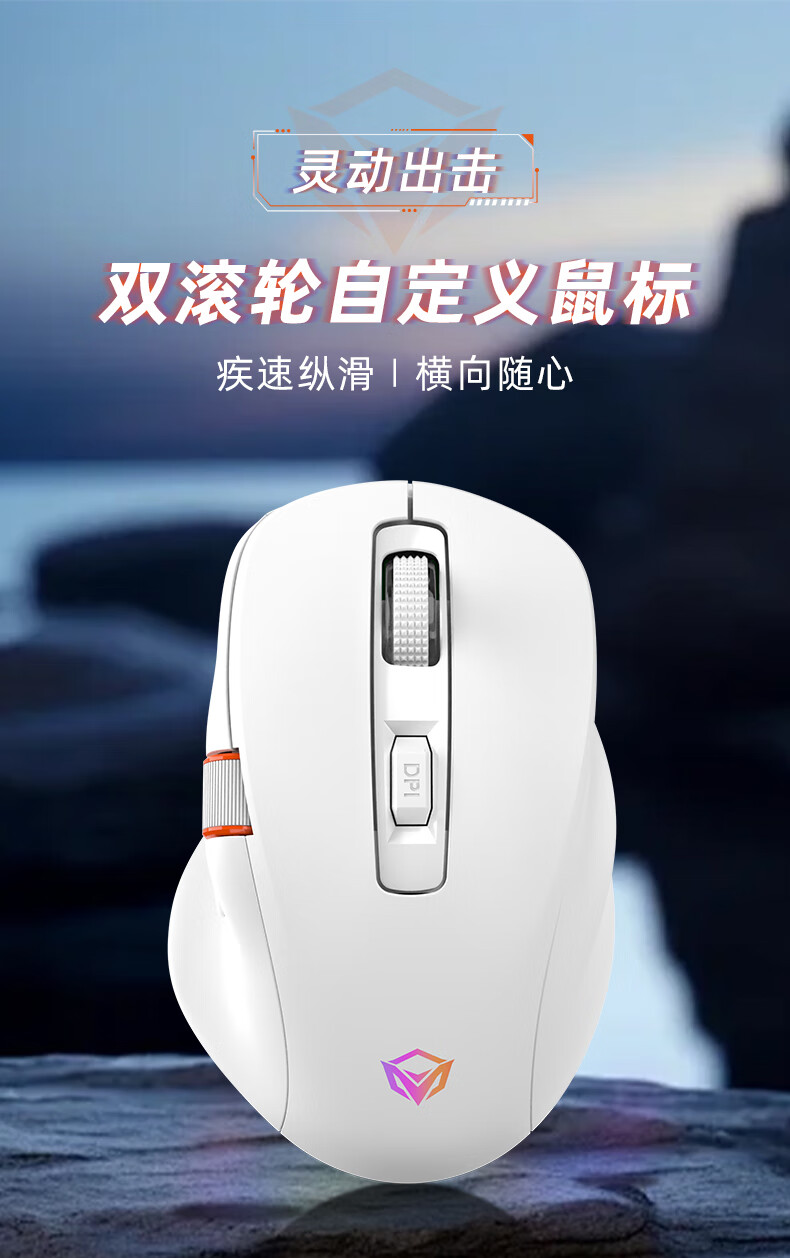 MEETION三模无线鼠标宏编程双滚轮办公蓝牙电竞游戏连点器侧滚轮一键复制粘贴快捷键电脑台式笔记本通用 GW32(黑色)RGB