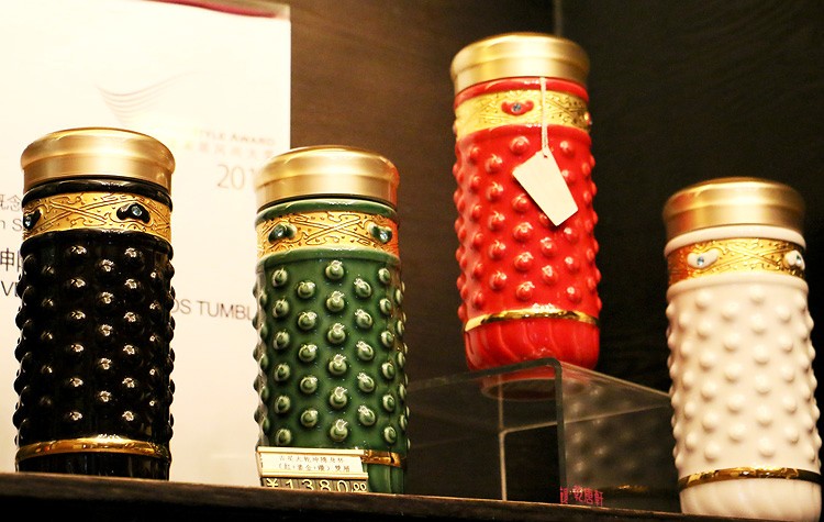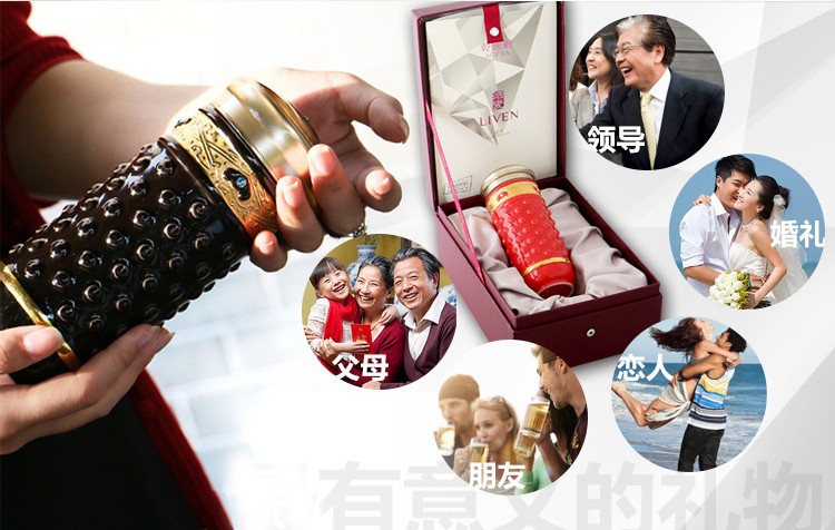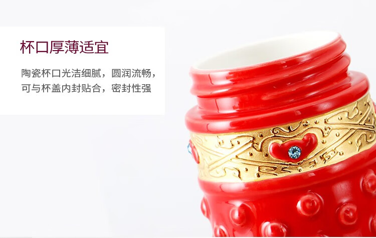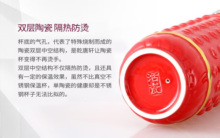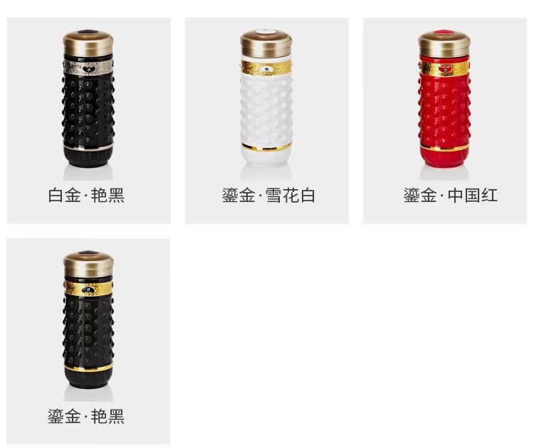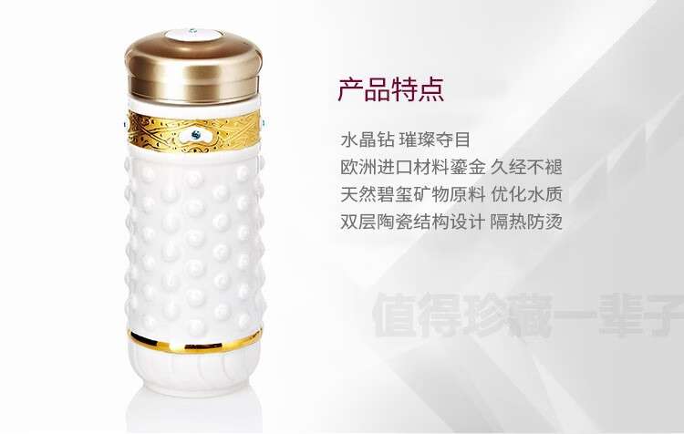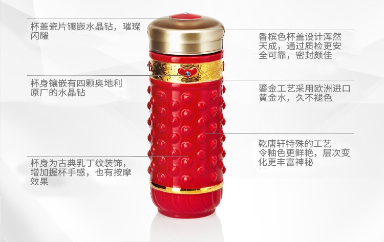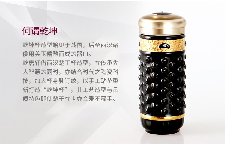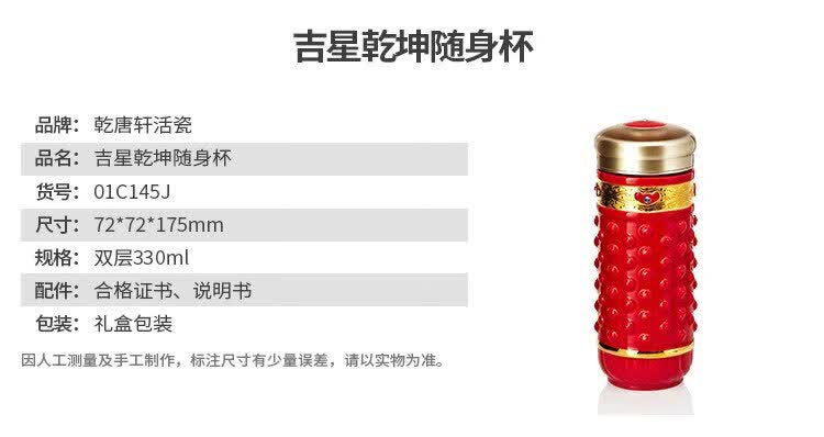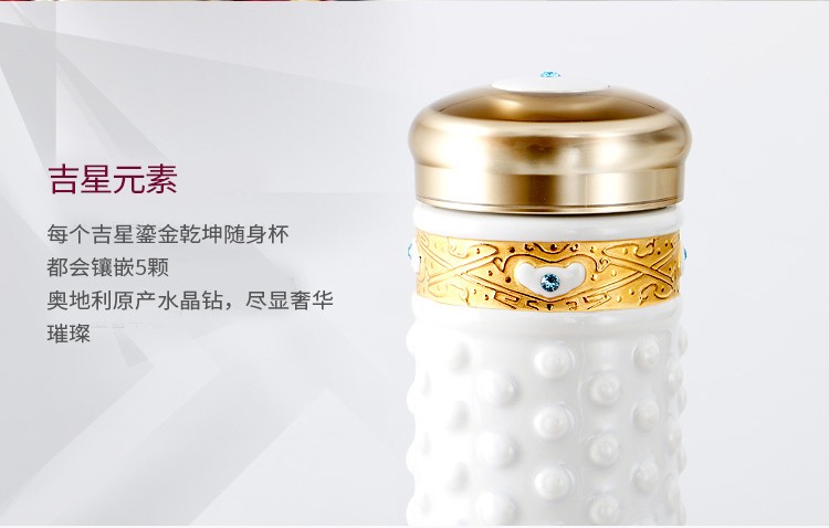 乾唐轩【活瓷杯官方授权】吉星大乾坤鎏金随身杯双层陶瓷水茶杯商务礼品 翡翠绿+金+钻(礼盒包装)