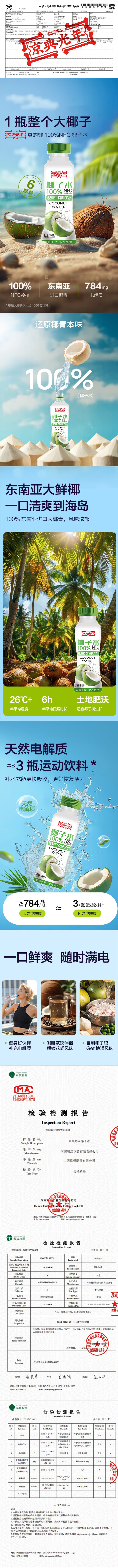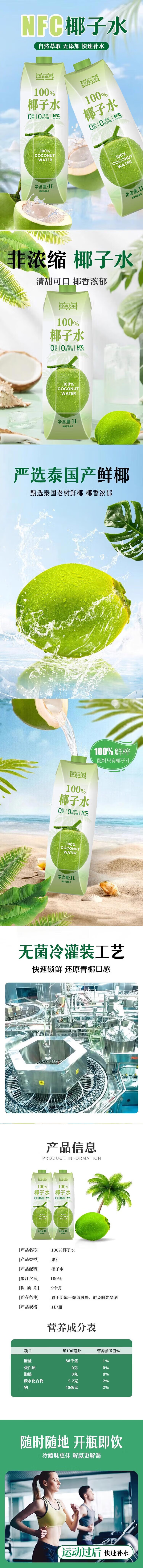 京典光年100%椰子水 泰国进口椰青 纯椰汁NFC椰子水饮料 100%NFC椰子水 1L*2瓶
