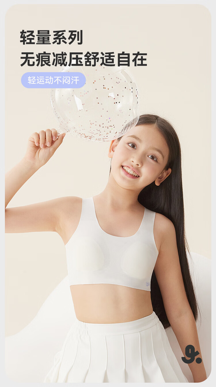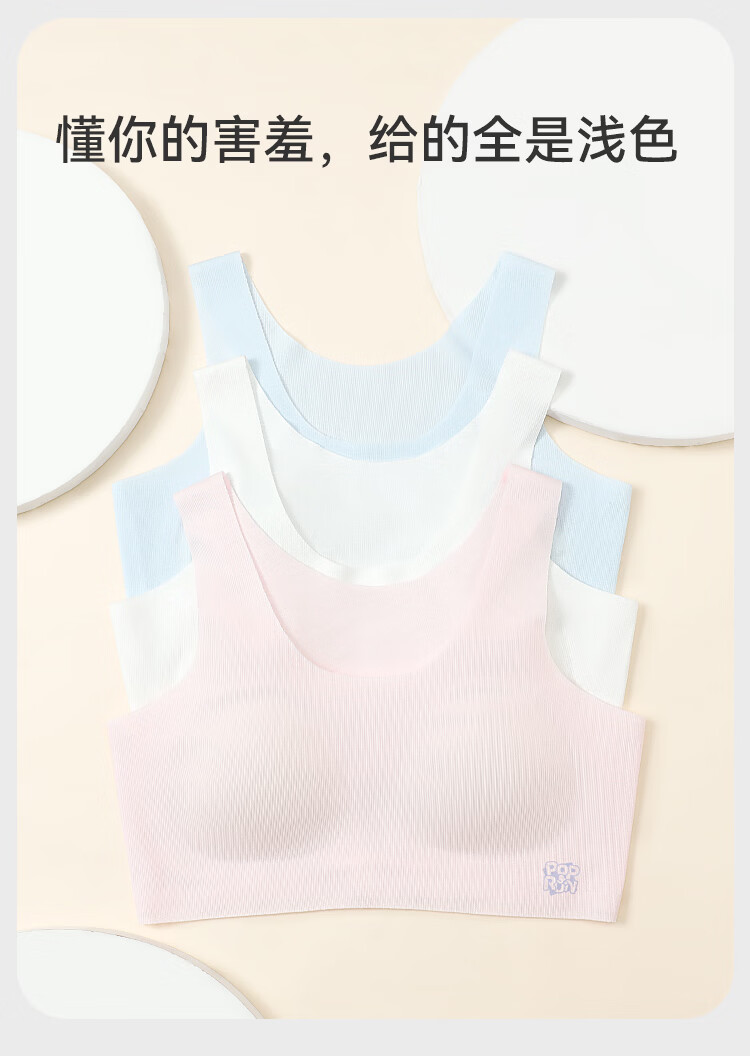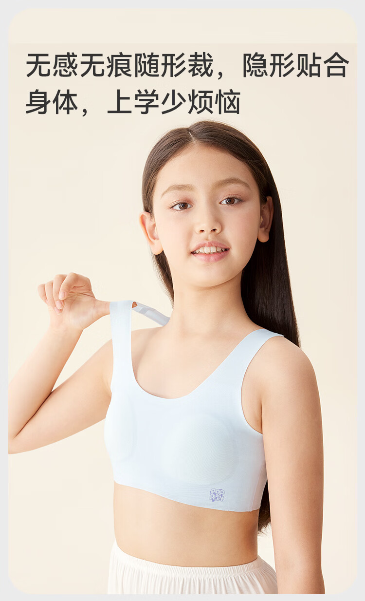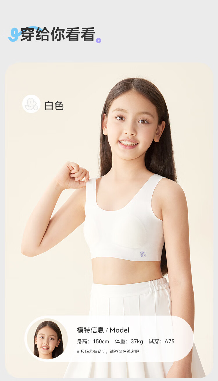 久岁伴二阶段初中少女【无痕莫代尔】发育期文胸柔软防走光工字背心内衣 白色(2 阶段12-15岁初中杯) 75A 建议70-85斤