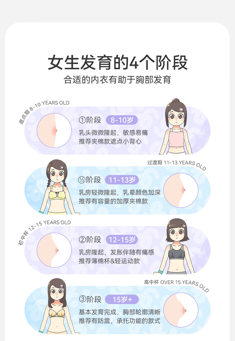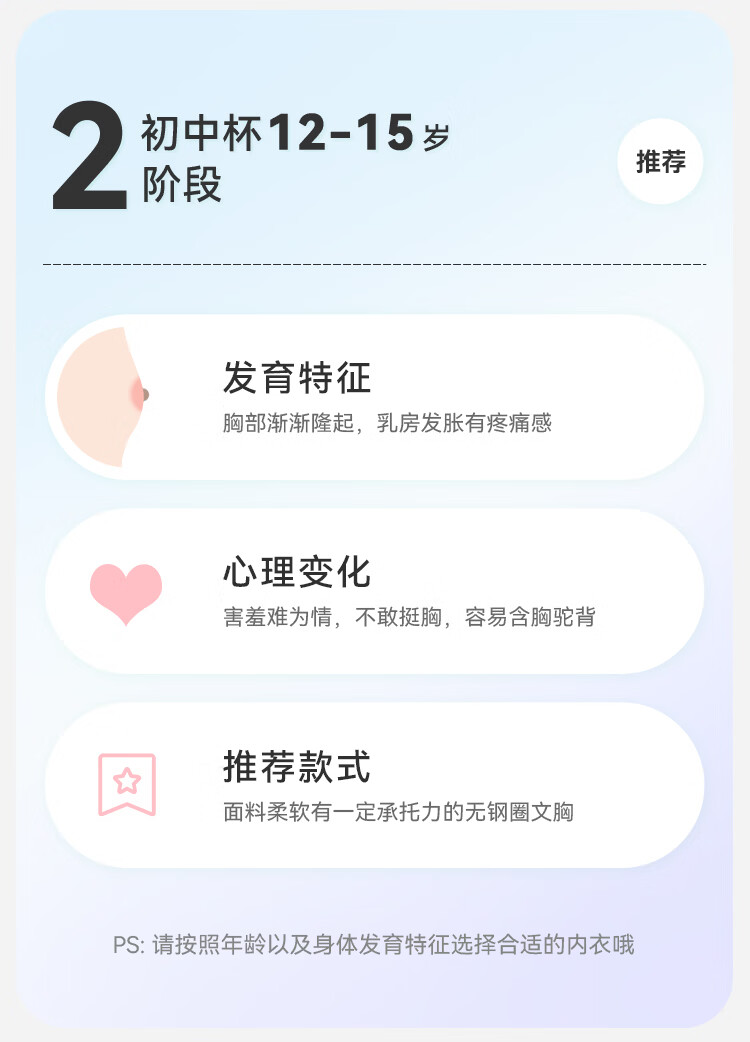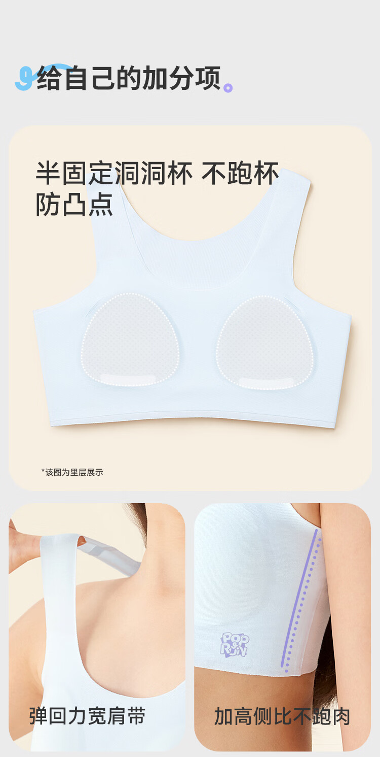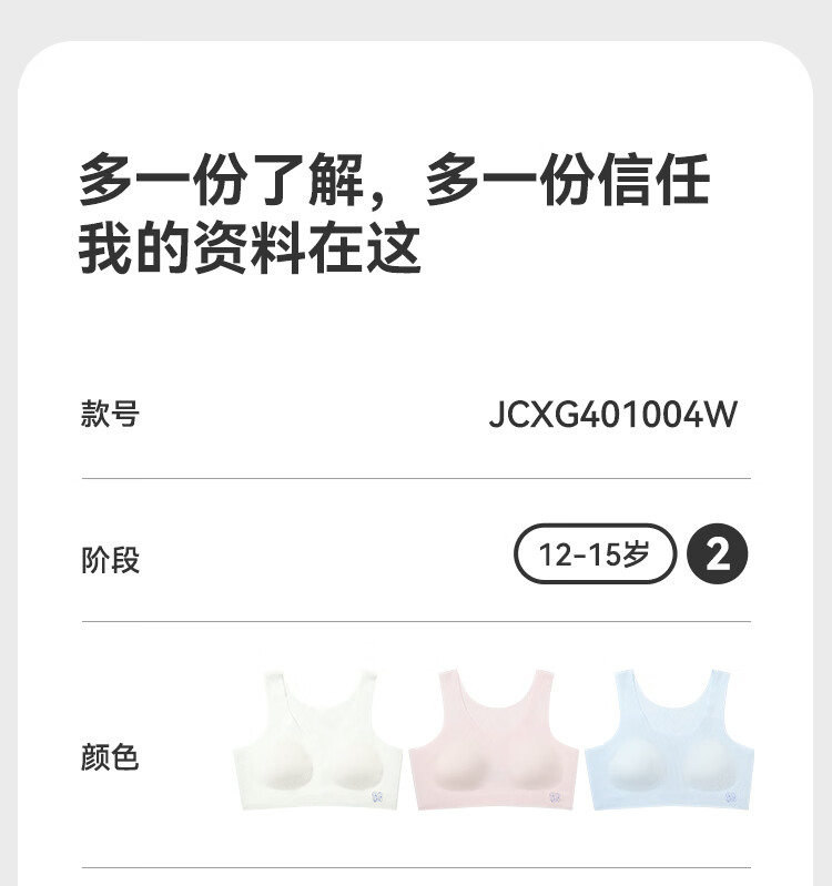 久岁伴二阶段初中少女【无痕莫代尔】发育期文胸柔软防走光工字背心内衣 白色(2 阶段12-15岁初中杯) 75A 建议70-85斤