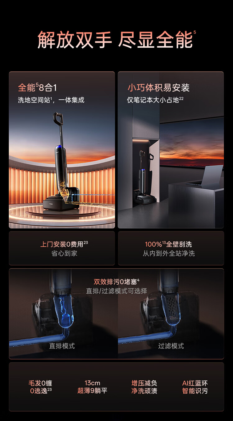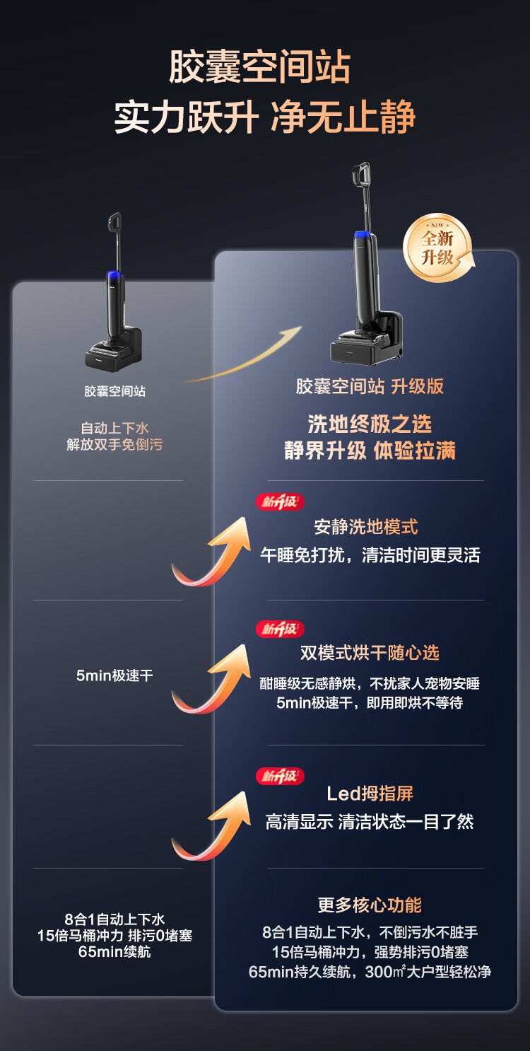 添可芙万Station Pod升级版【自动上下水 180°躺平 0缠毛】 胶囊空间站智能洗地机高温除菌全向贴边 芙万Station Pod升级版