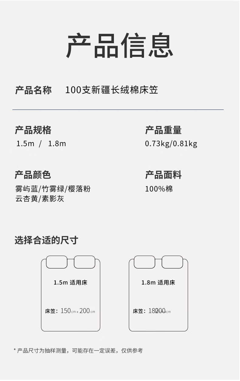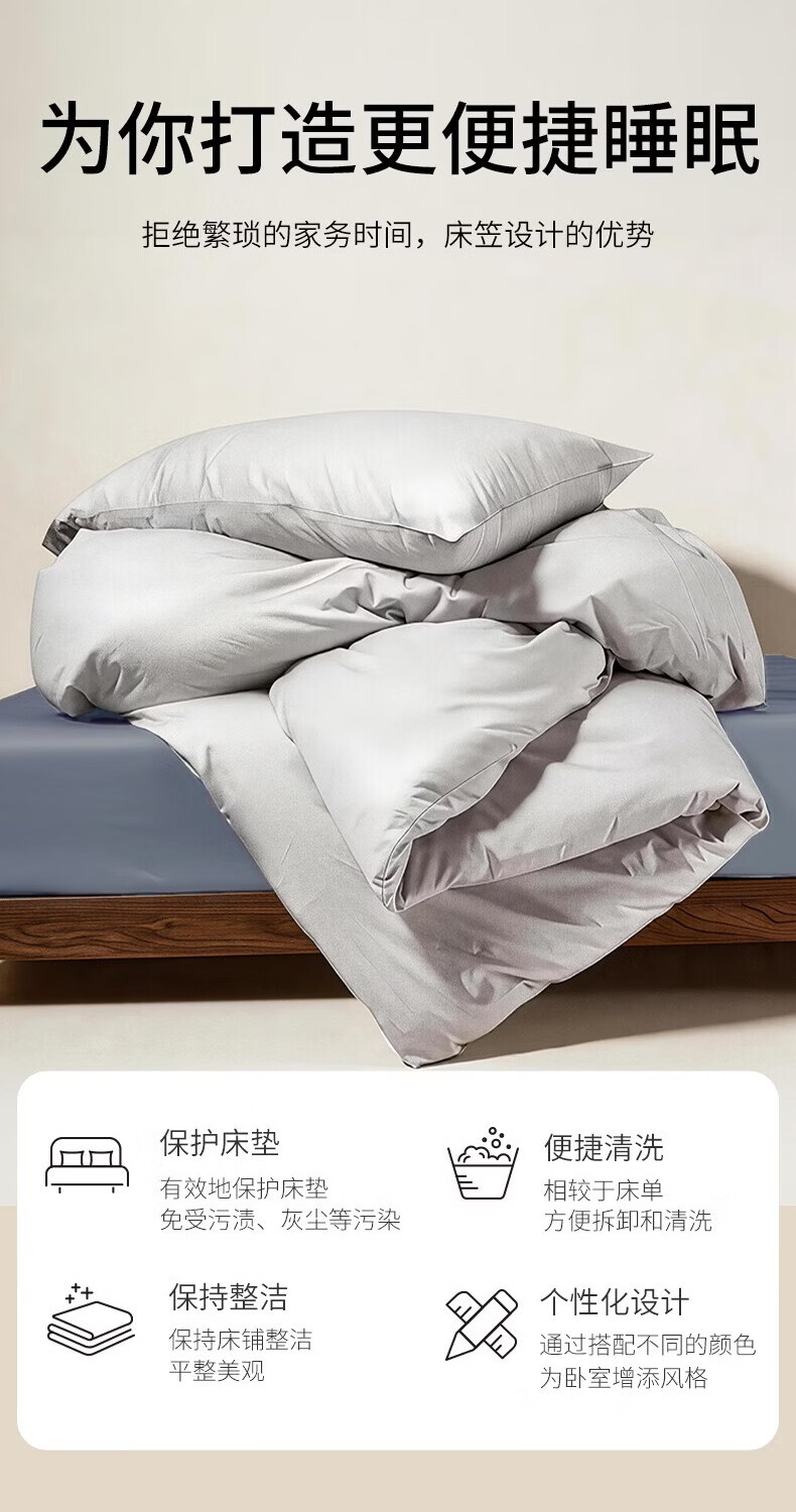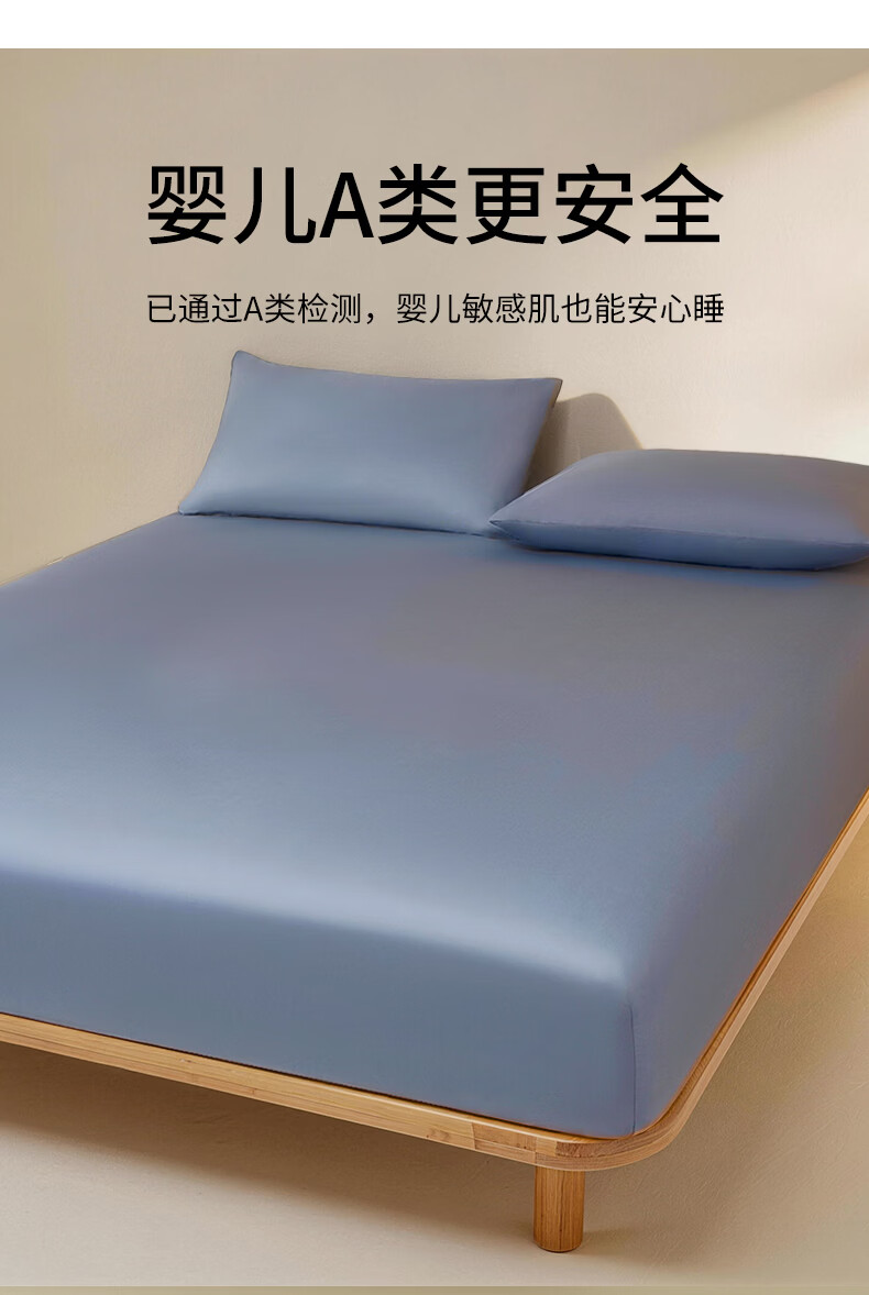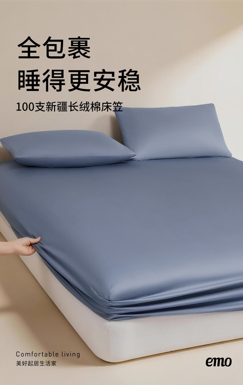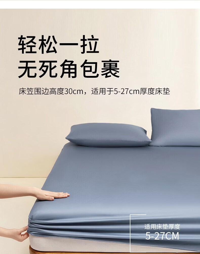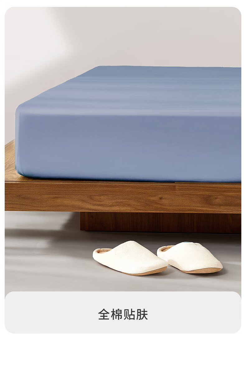 一默床笠纯棉新疆长绒棉床笠单件水洗全包防滑床垫套全棉床罩纯棉床笠 雾屿蓝丨高支长绒棉丨母婴A类 150cm*200cm +30cm【5-27cm床垫用】