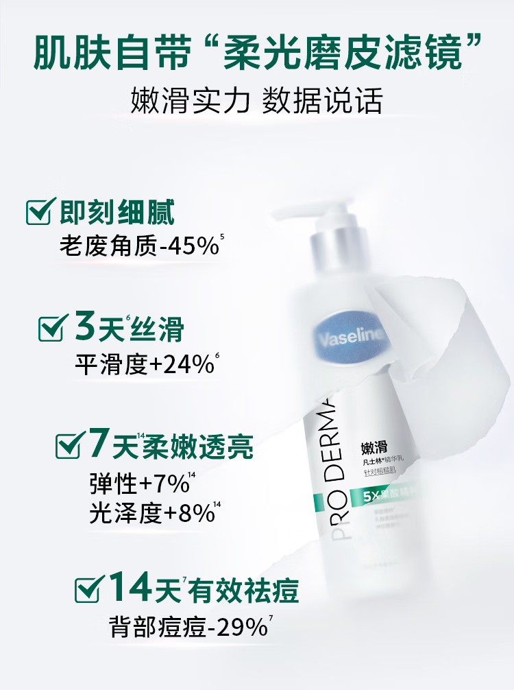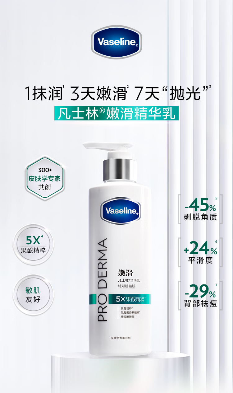 凡士林【龚俊推荐】果酸嫩滑身体乳250ml保湿滋润嫩肤提亮 新老包装随机