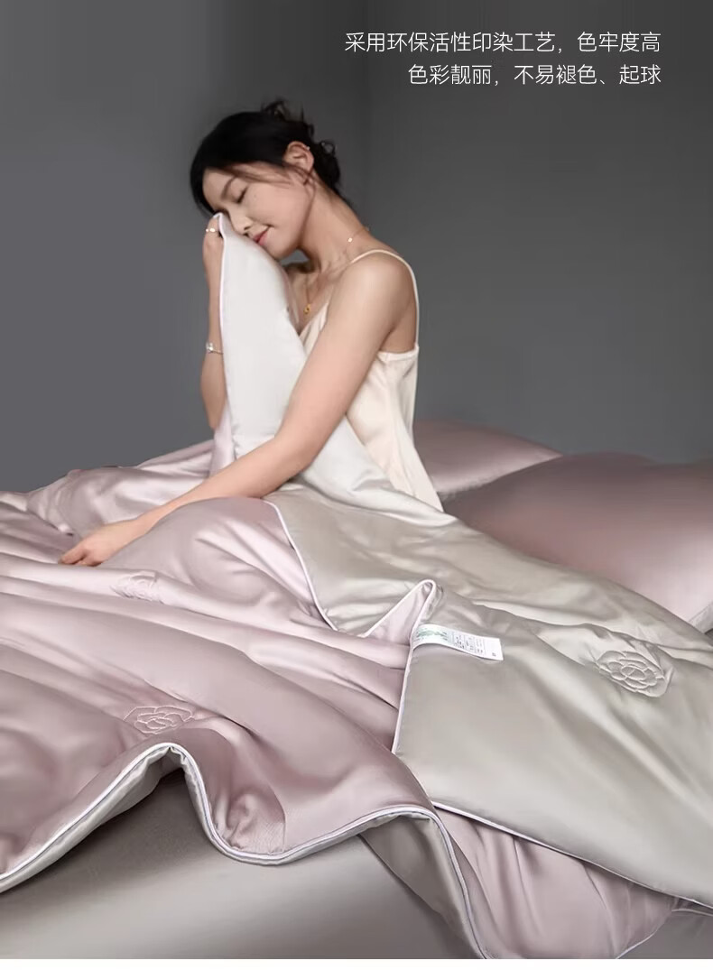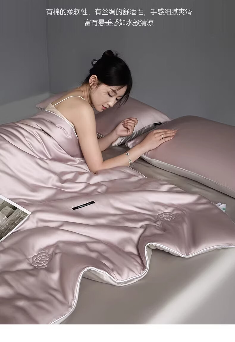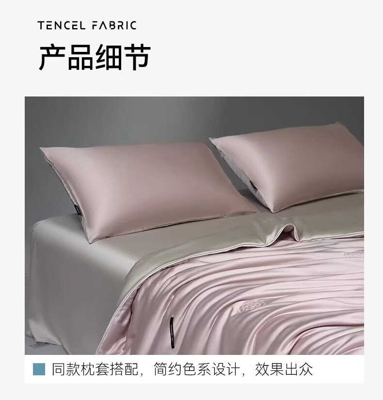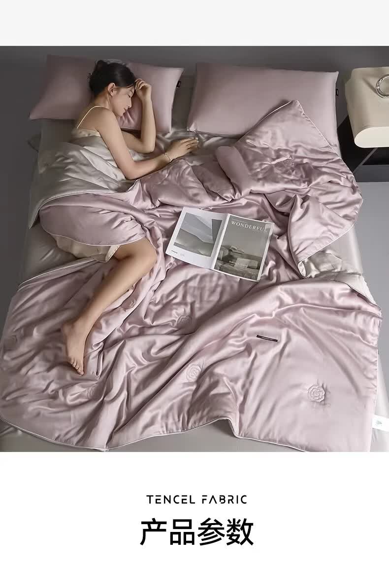 无印良品A类莱赛尔天丝夏凉被四件套夏季空调被凉感裸睡薄被子可机洗夏被 水雾紫-冰川灰【细腻顺滑 轻盈透气】 四件套-200×230夏被+床单+枕套2