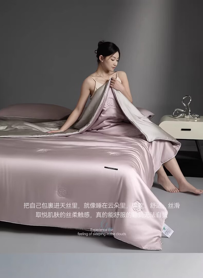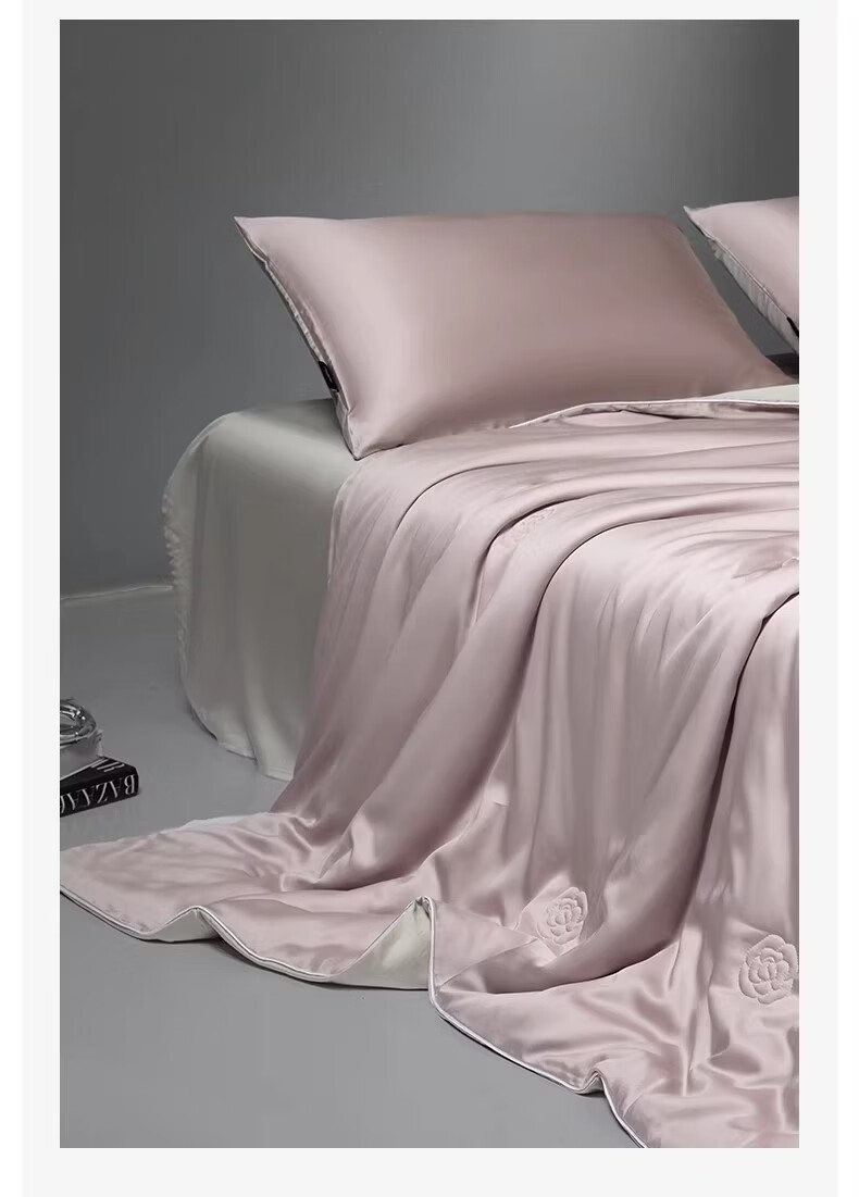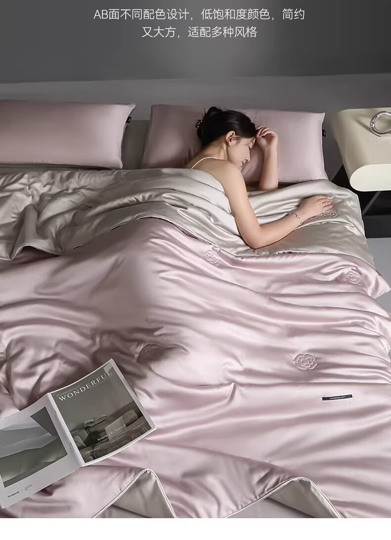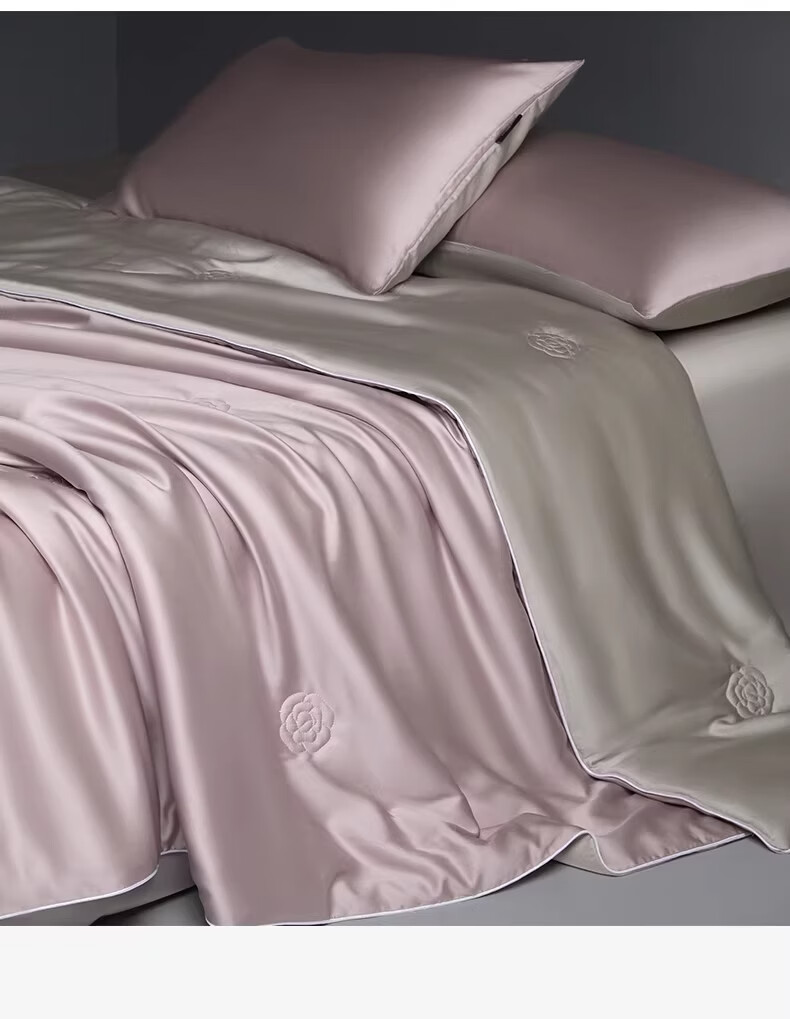 无印良品A类莱赛尔天丝夏凉被四件套夏季空调被凉感裸睡薄被子可机洗夏被 水雾紫-冰川灰【细腻顺滑 轻盈透气】 四件套-200×230夏被+床单+枕套2