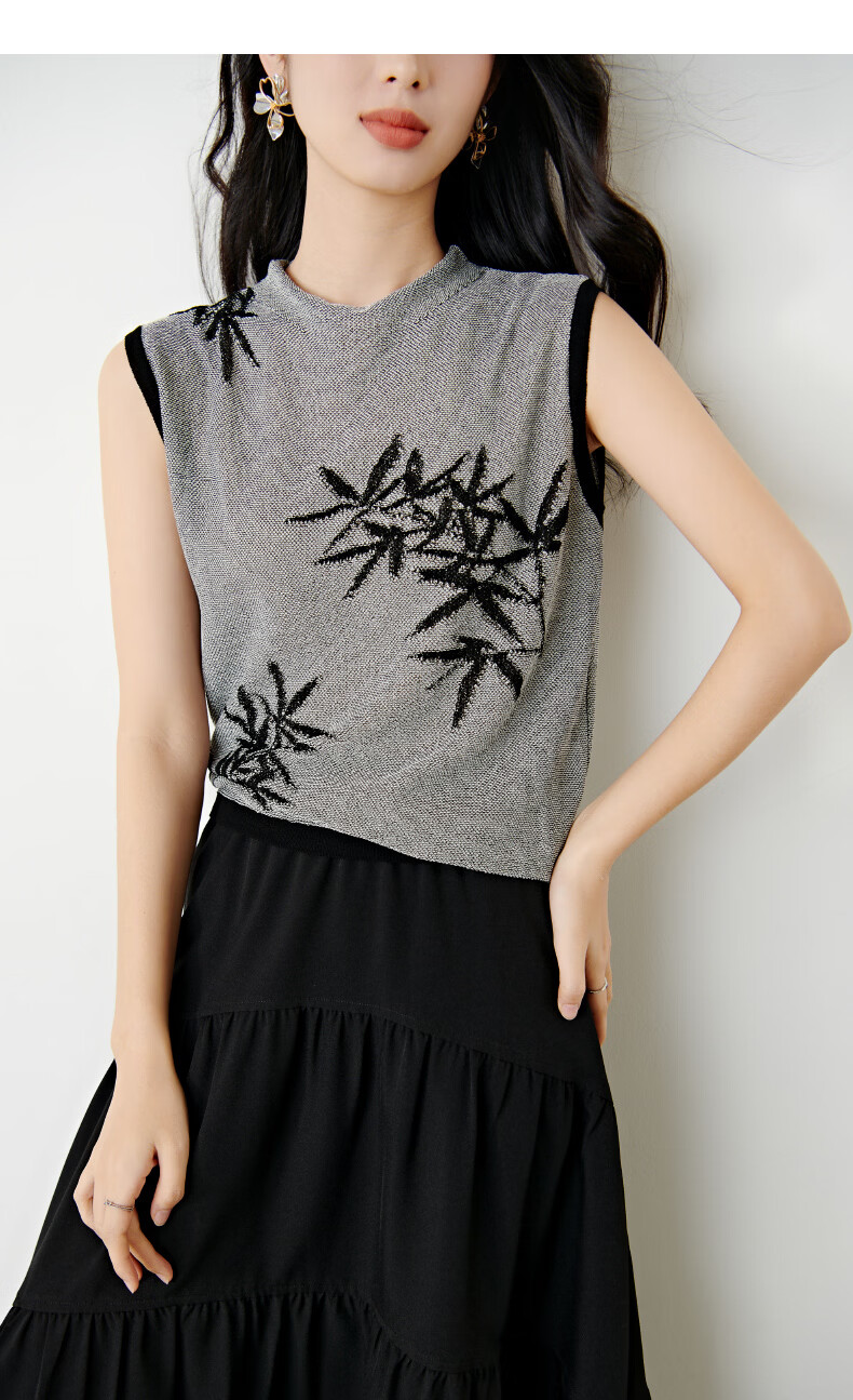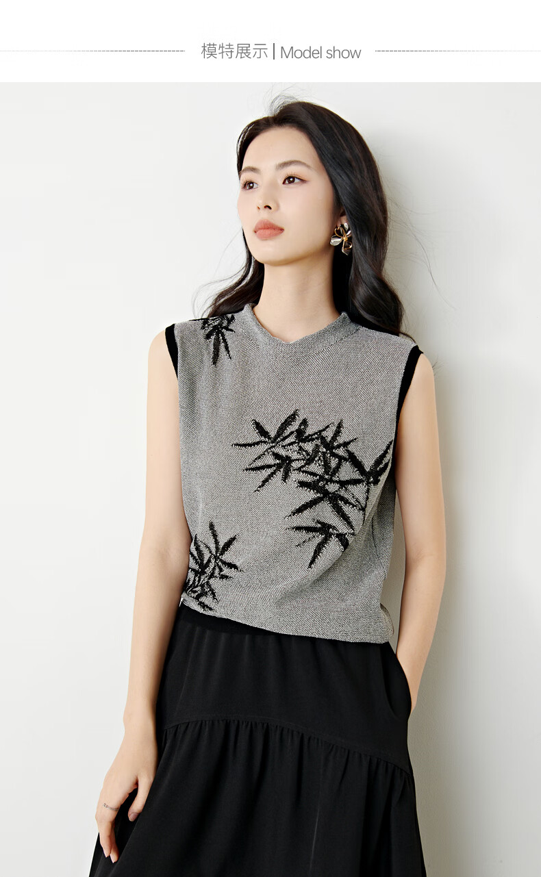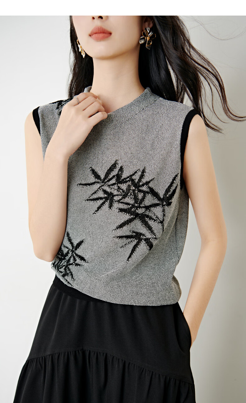 晚白【苹果型身材救星高弹显瘦】2026春撞色半高领内搭外穿无袖针织衫 花灰色 S