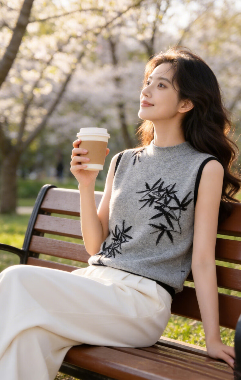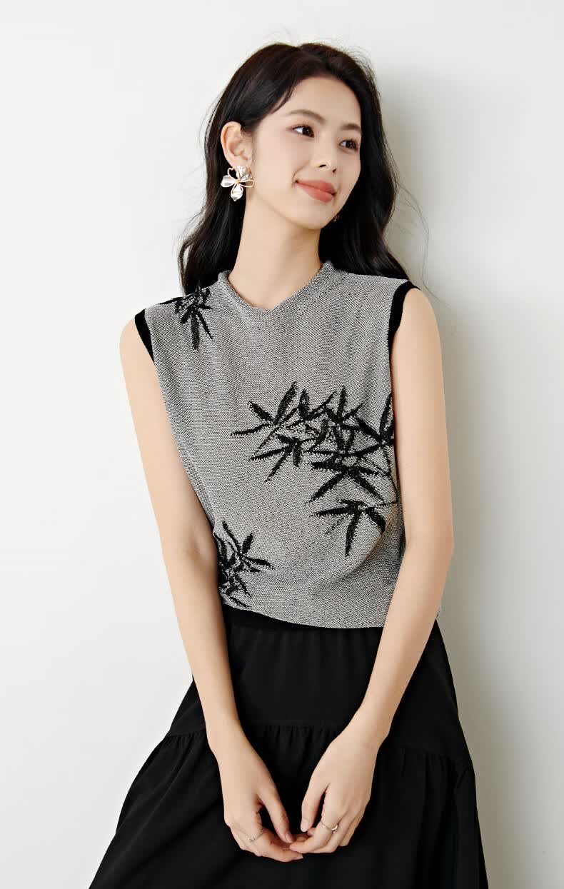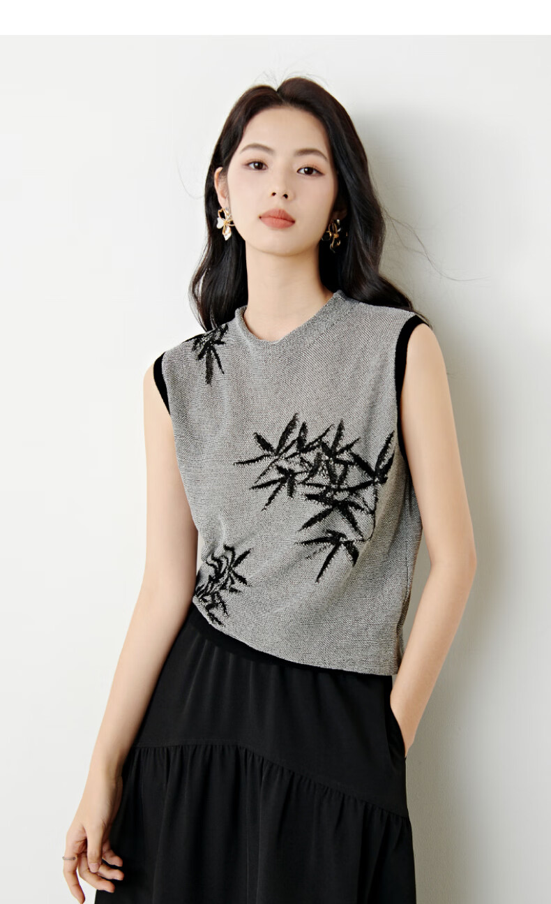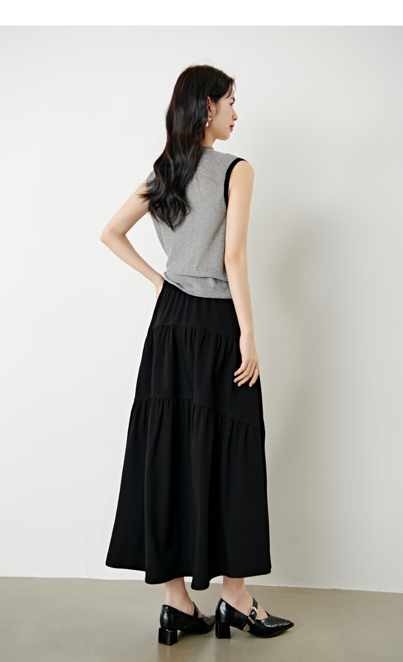 晚白【苹果型身材救星高弹显瘦】2026春撞色半高领内搭外穿无袖针织衫 花灰色 S