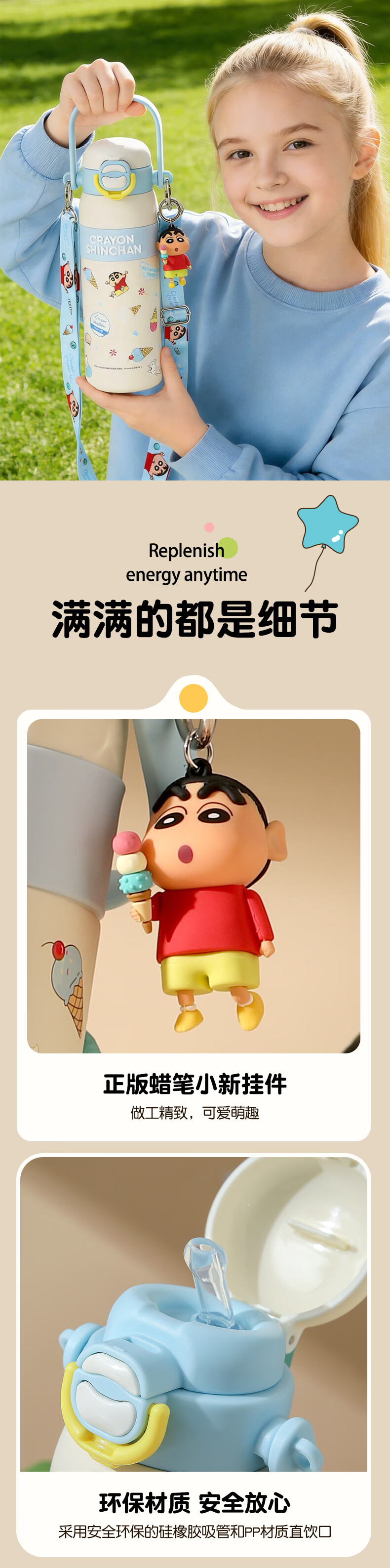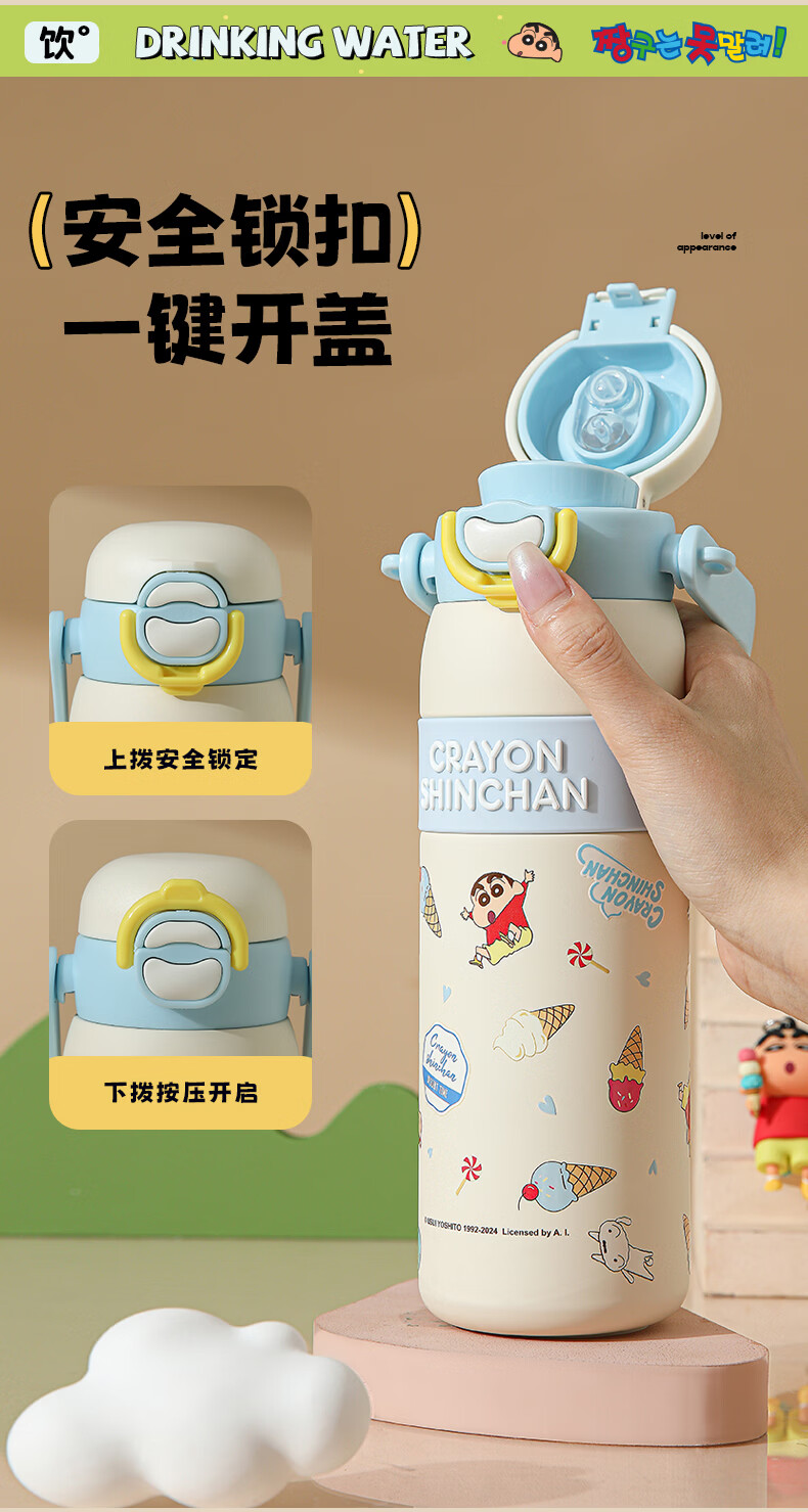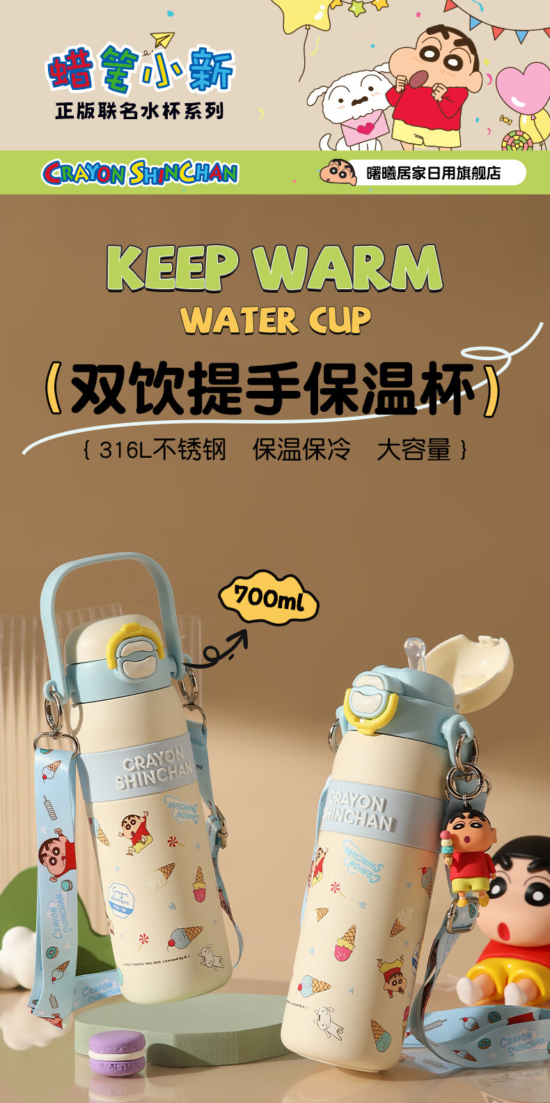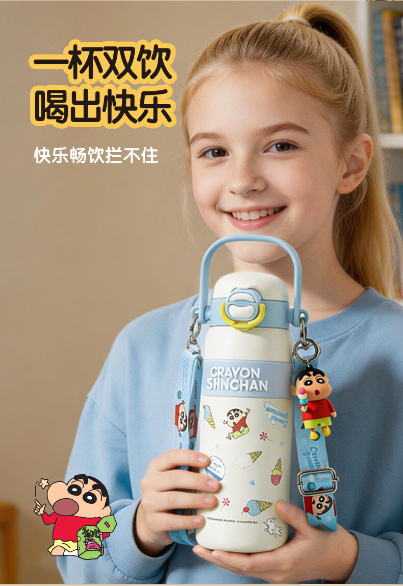 曙曦爆款断货王蜡笔小新双饮儿童保温杯 316L不锈钢学饮杯食品级水杯