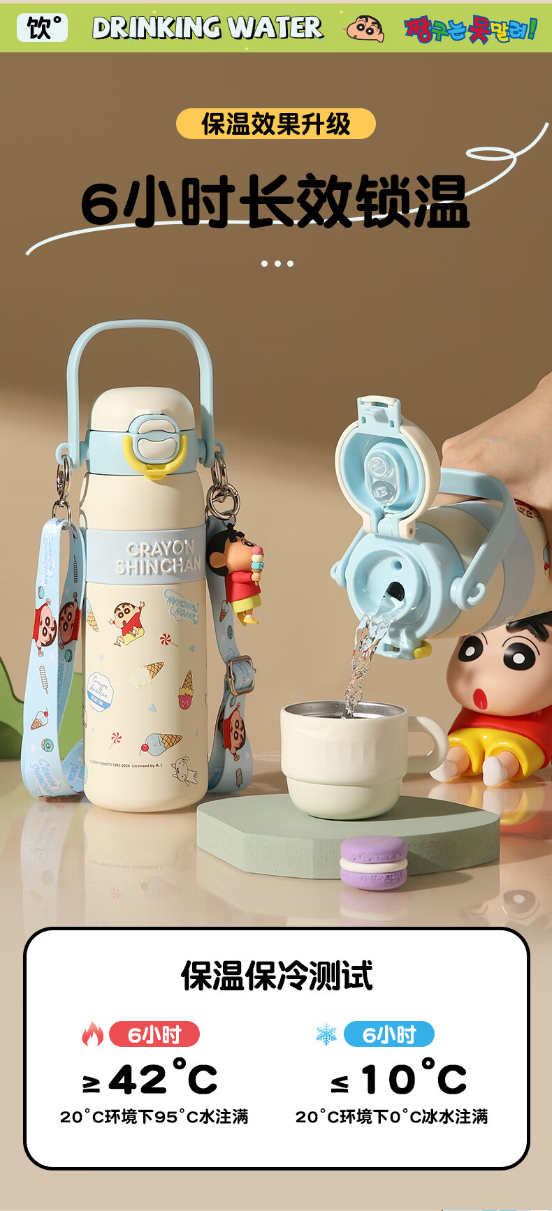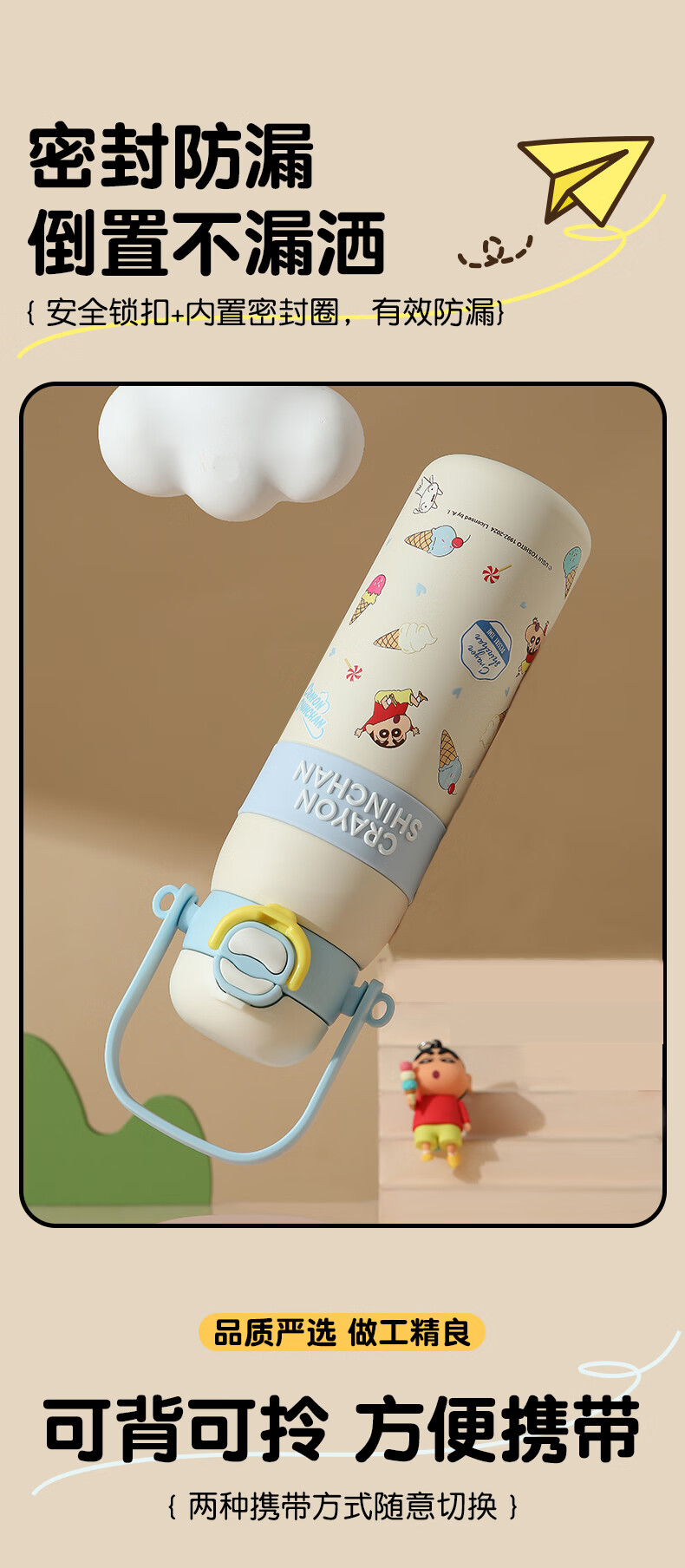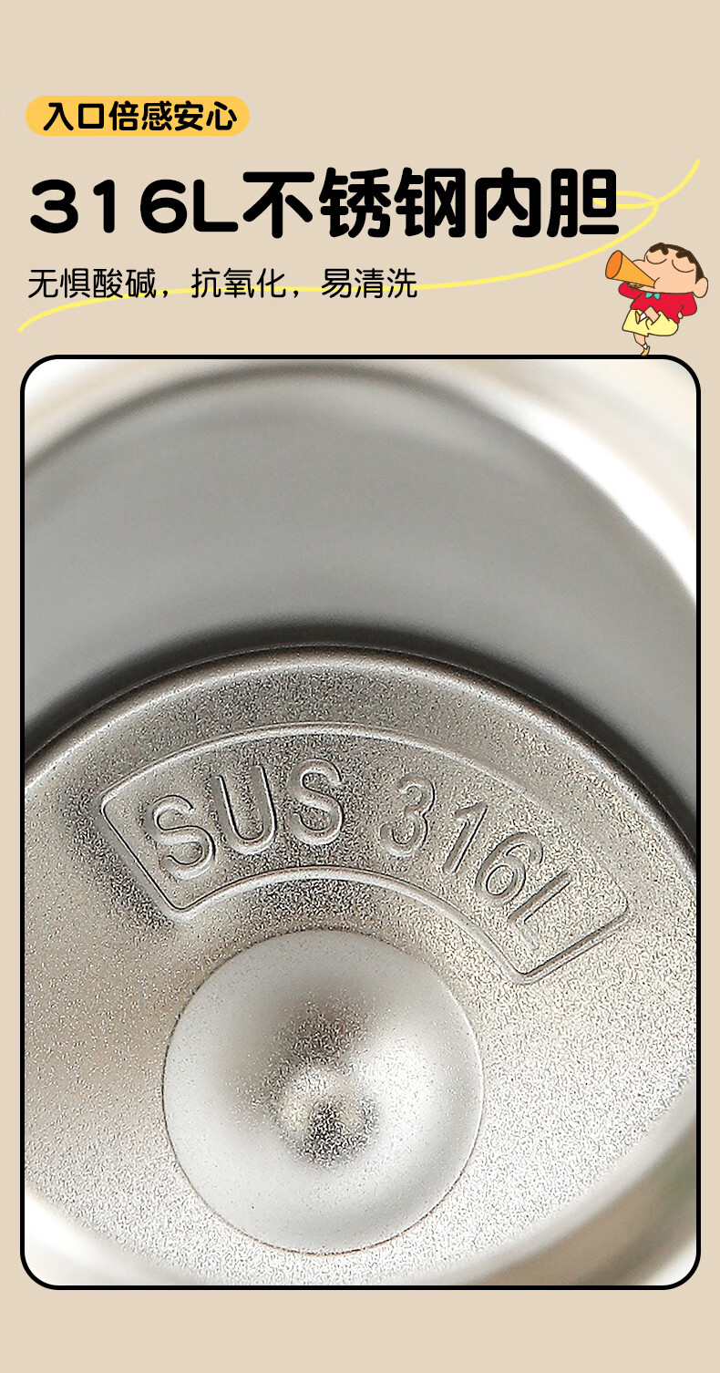 曙曦爆款断货王蜡笔小新双饮儿童保温杯 316L不锈钢学饮杯食品级水杯