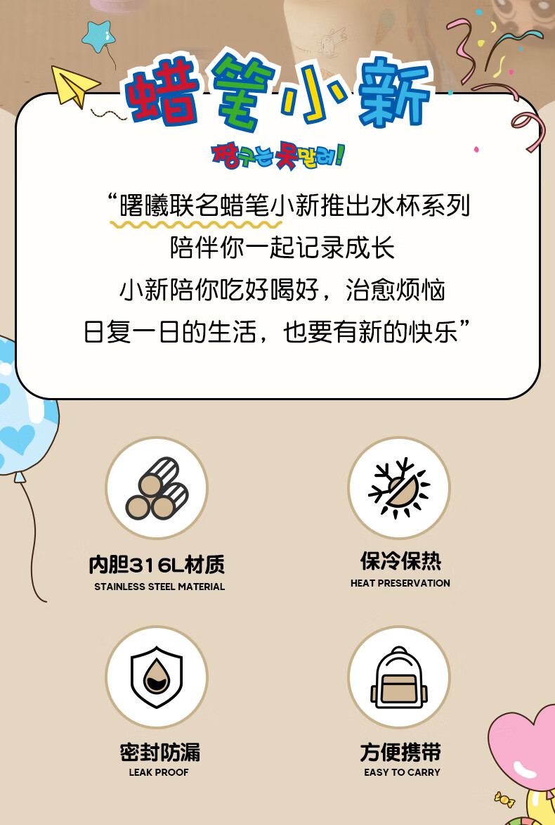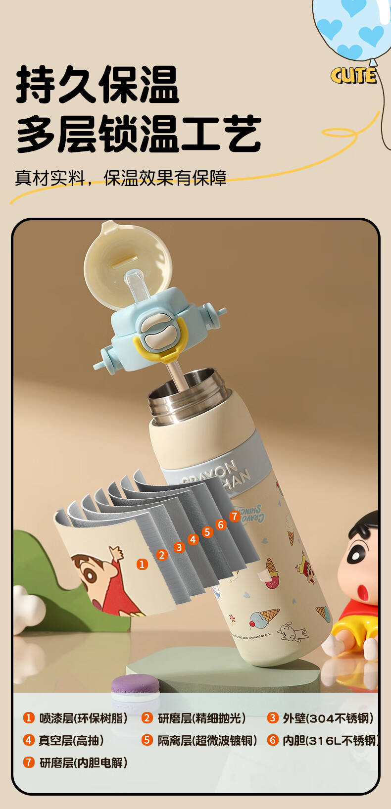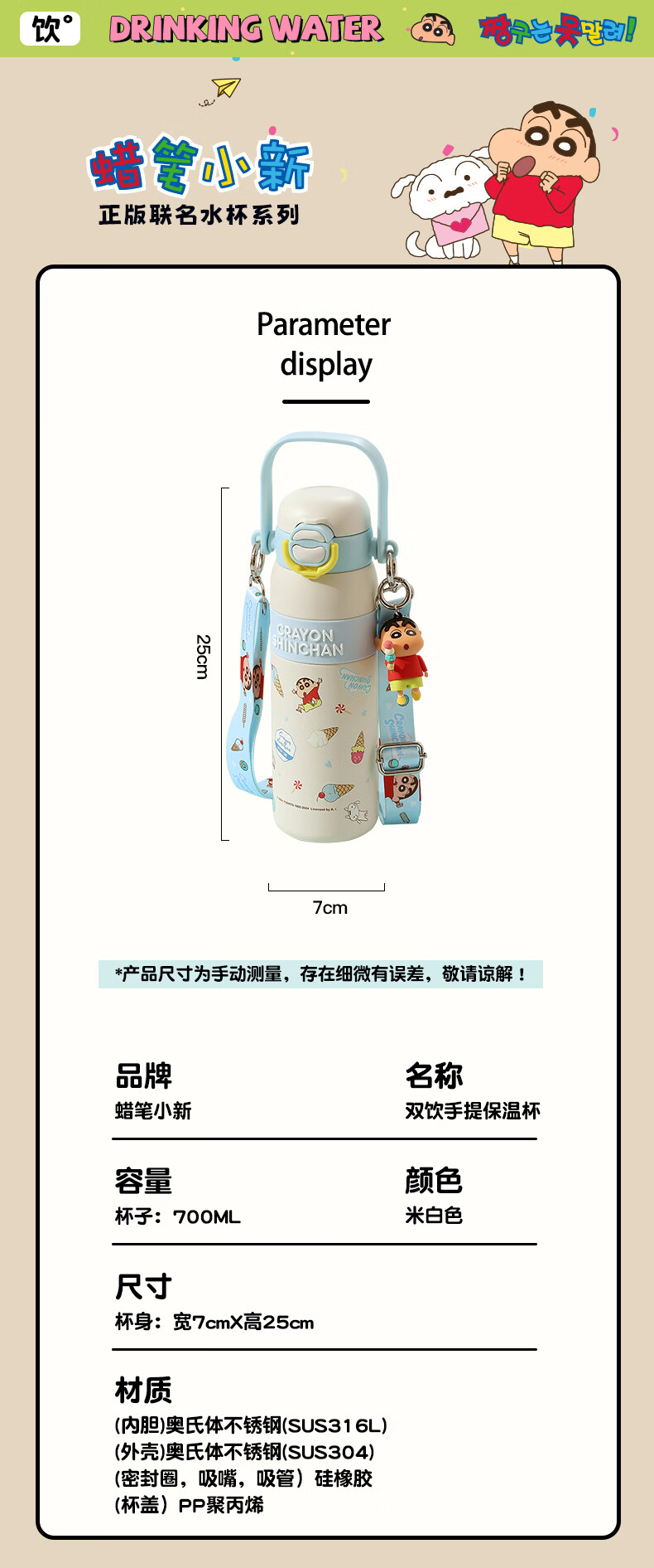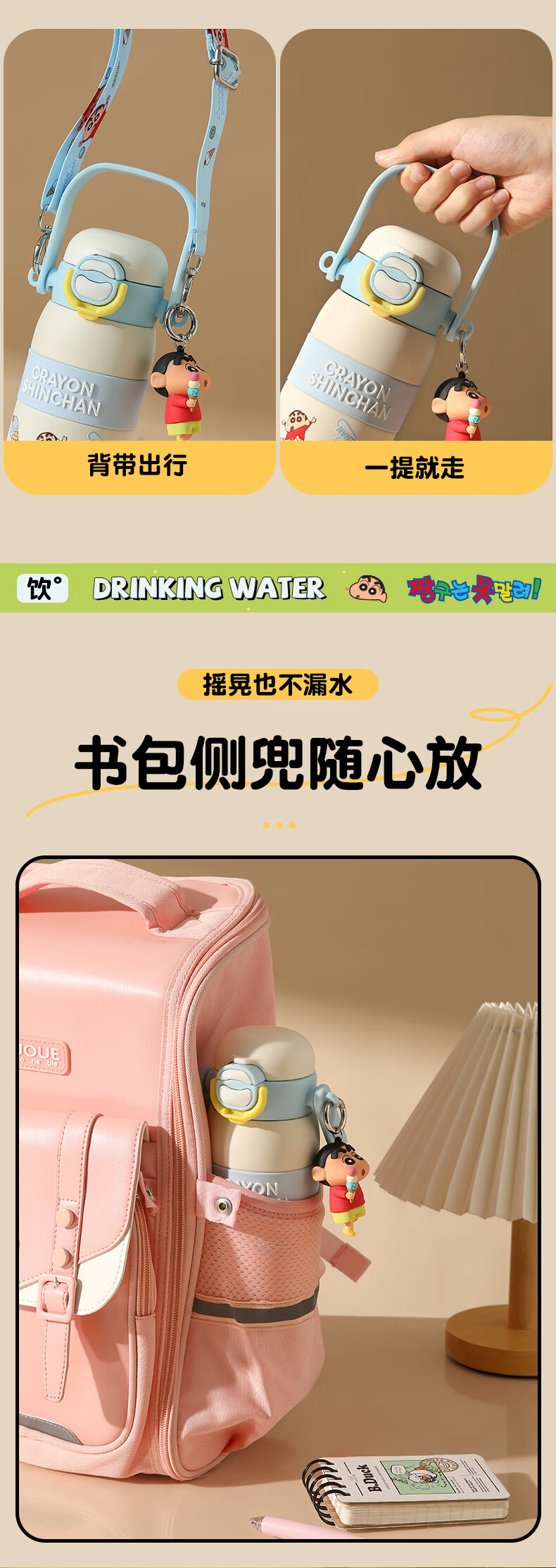 曙曦爆款断货王蜡笔小新双饮儿童保温杯 316L不锈钢学饮杯食品级水杯