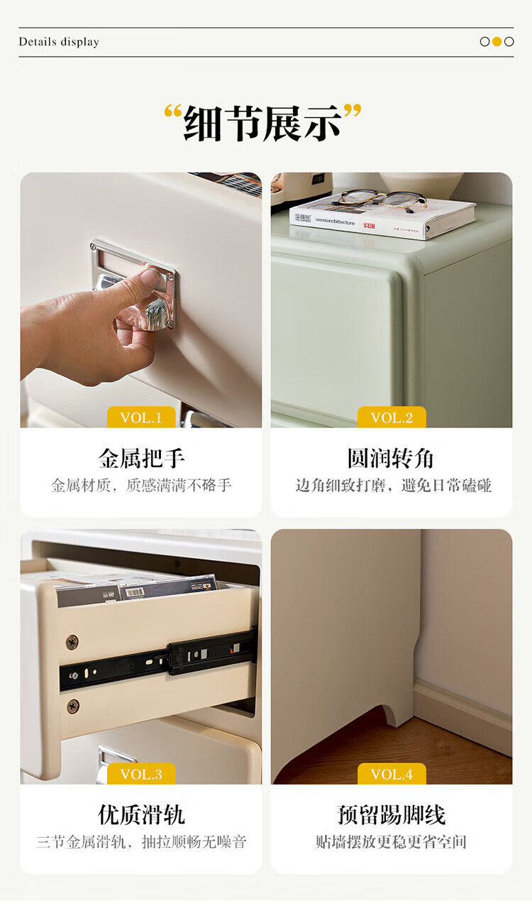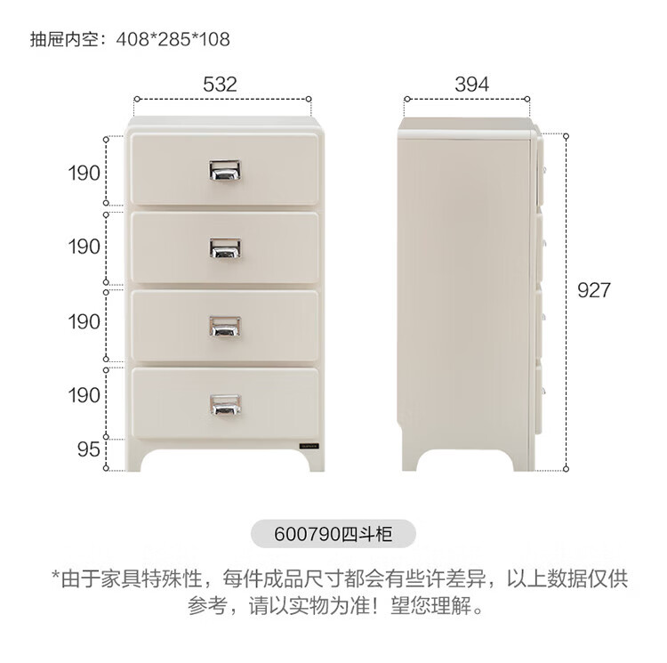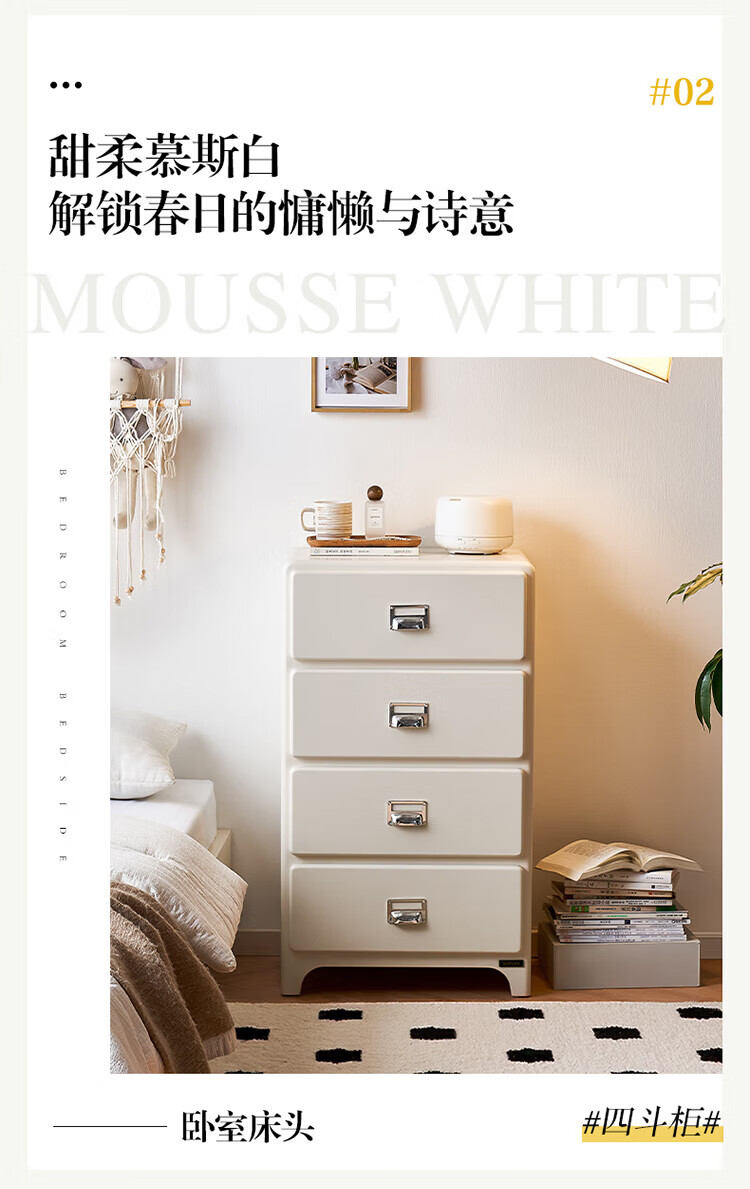 全友(QUANU)【迷瞪清仓货盘】斗柜收纳置物储物柜子客厅沙发边柜卧室床头柜 慕斯白|四斗柜