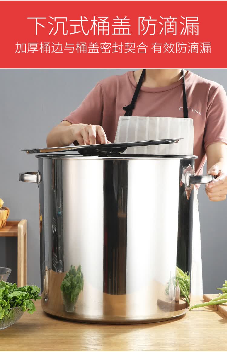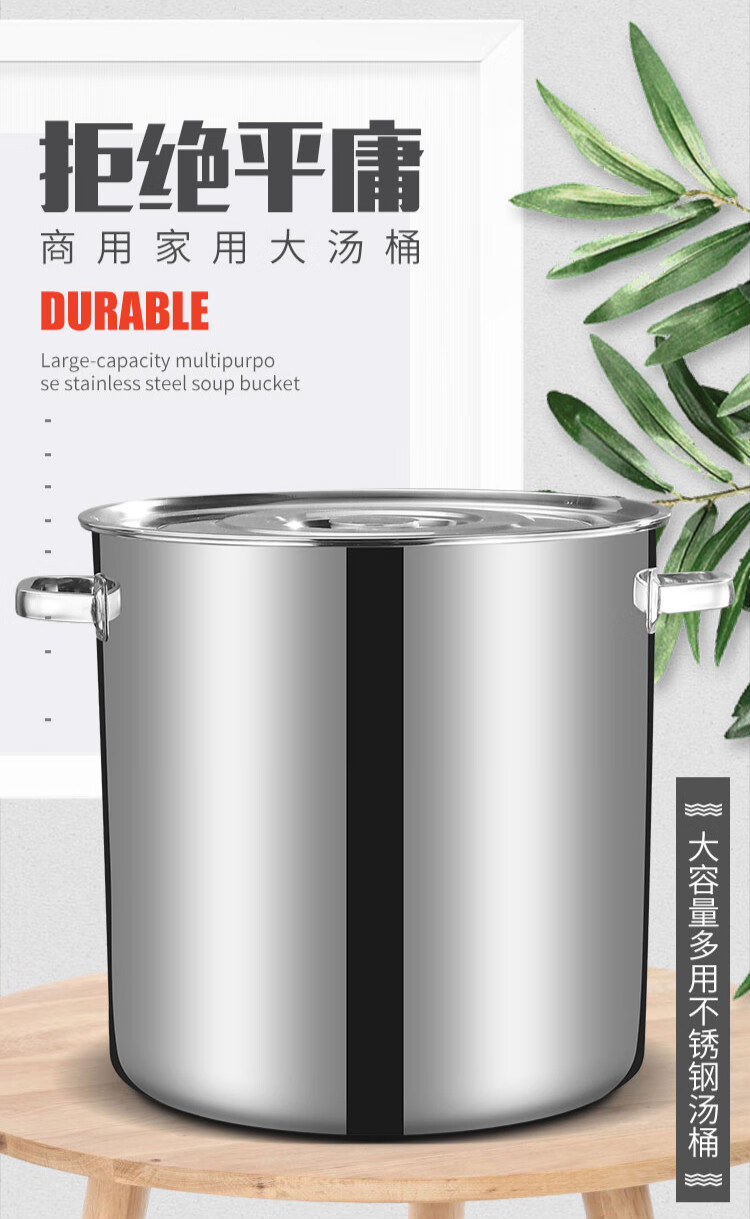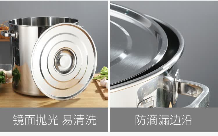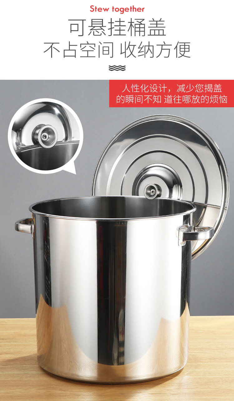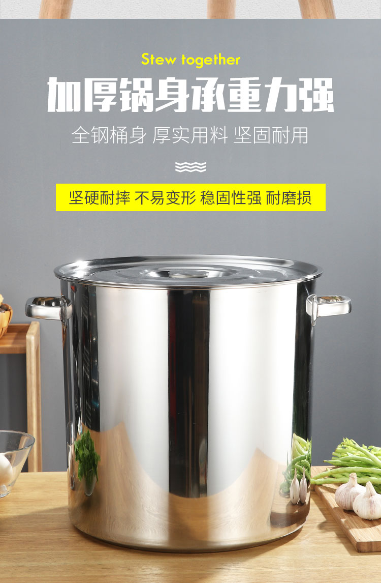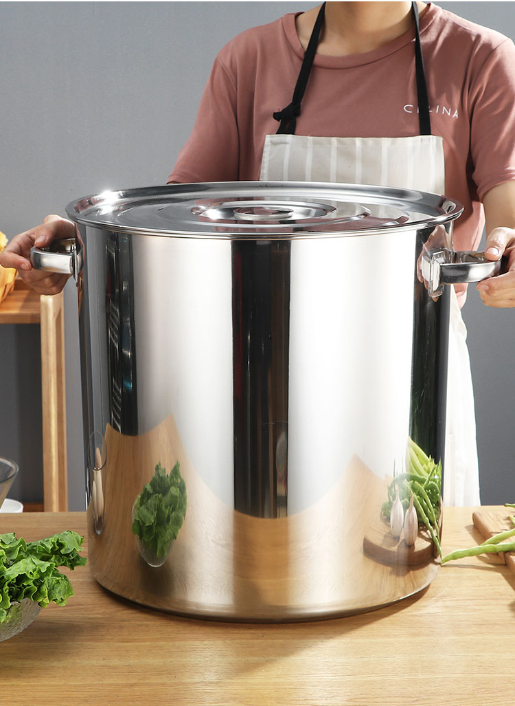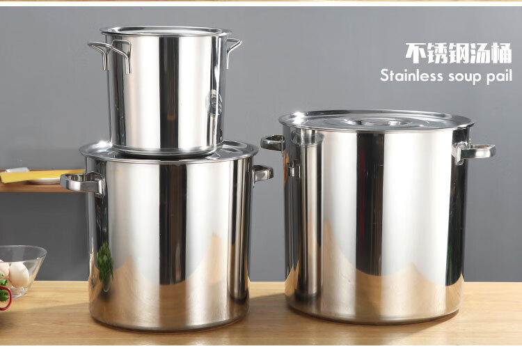 PJ商用不锈钢桶带盖不锈钢汤桶加厚加深汤锅储水桶圆桶油桶 1cm 直径20高度20
