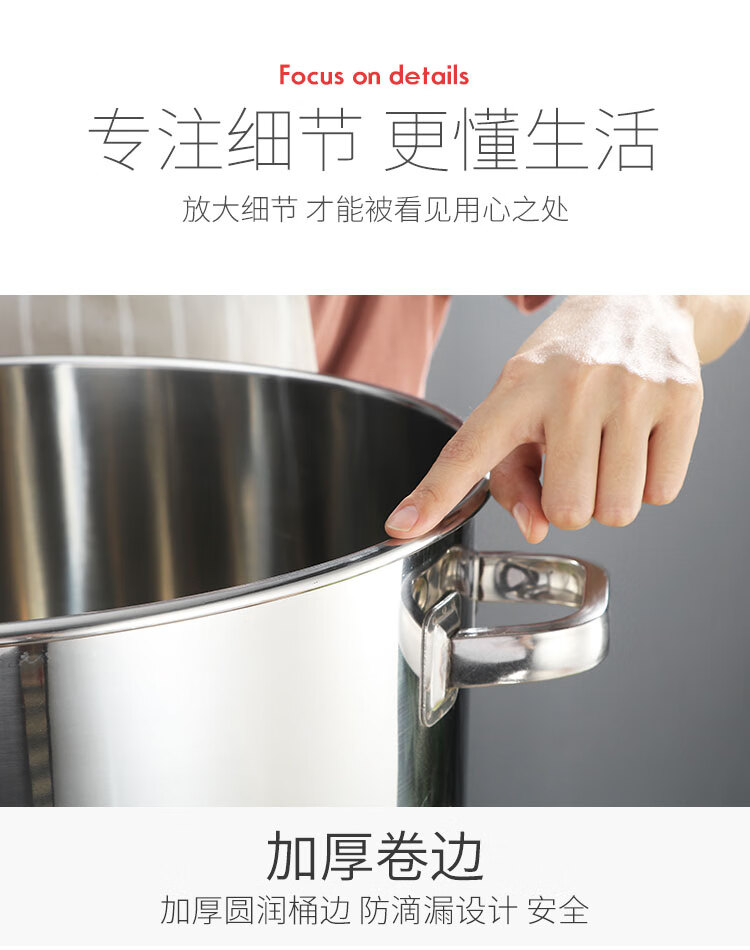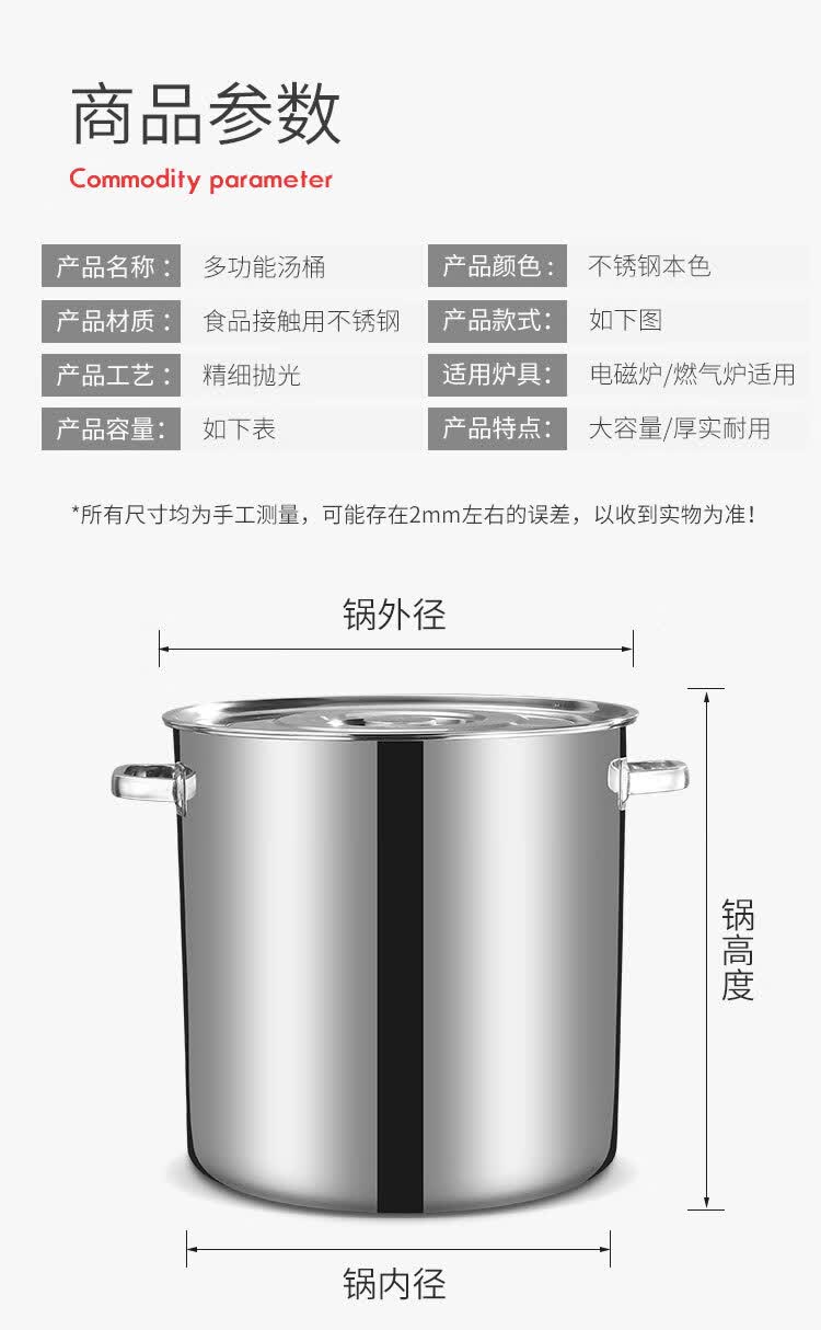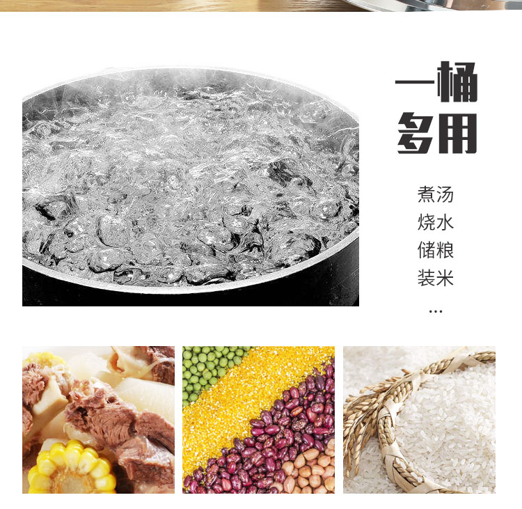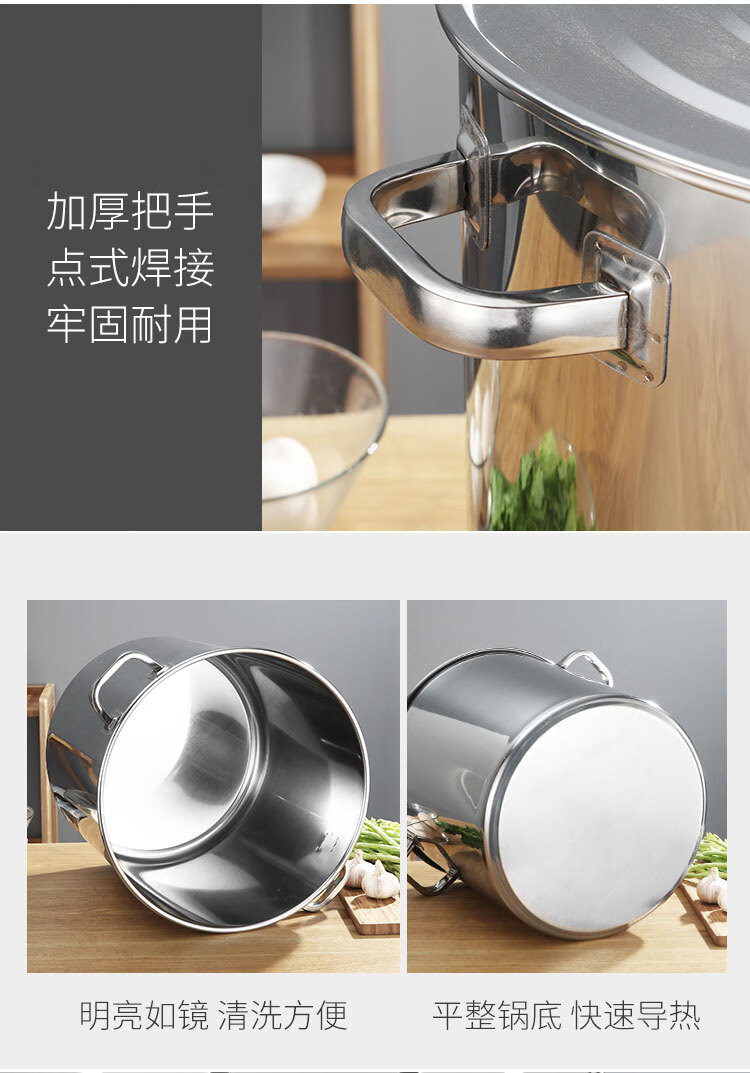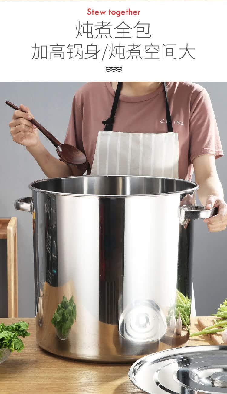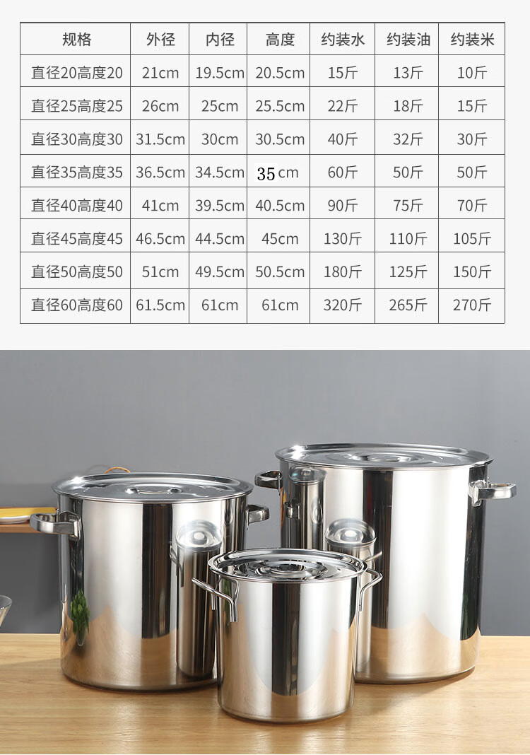 PJ商用不锈钢桶带盖不锈钢汤桶加厚加深汤锅储水桶圆桶油桶 1cm 直径20高度20