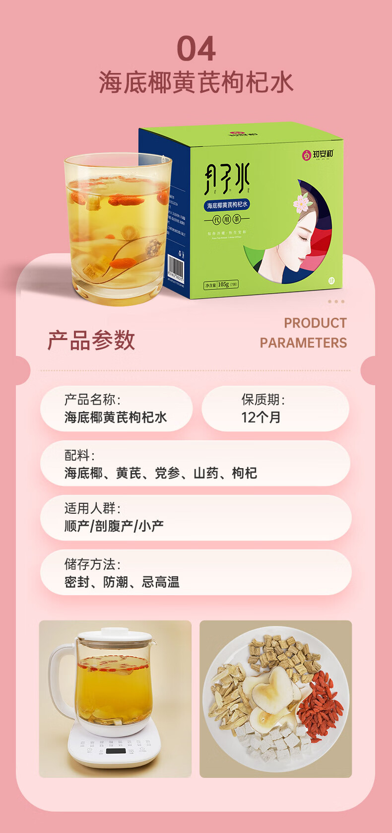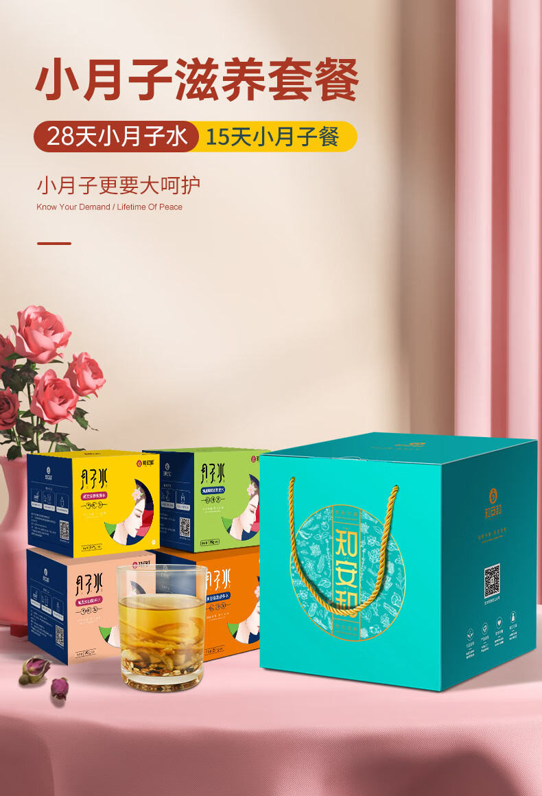 知安和小月子水月子茶材料包人流小产后调理补品15天月子汤恢复养生茶 小月子水(4阶段深度调养/4盒)