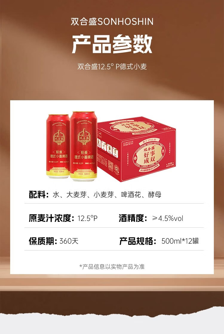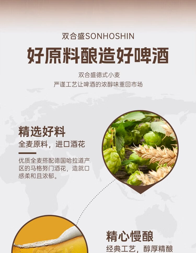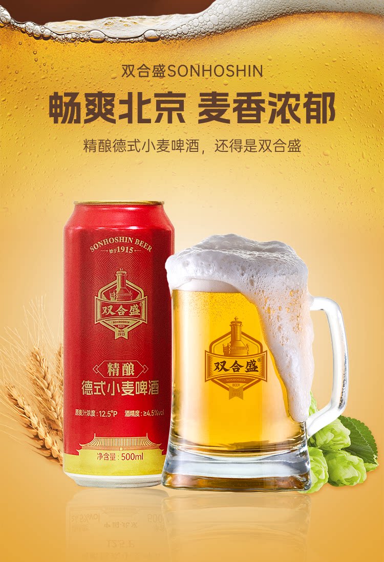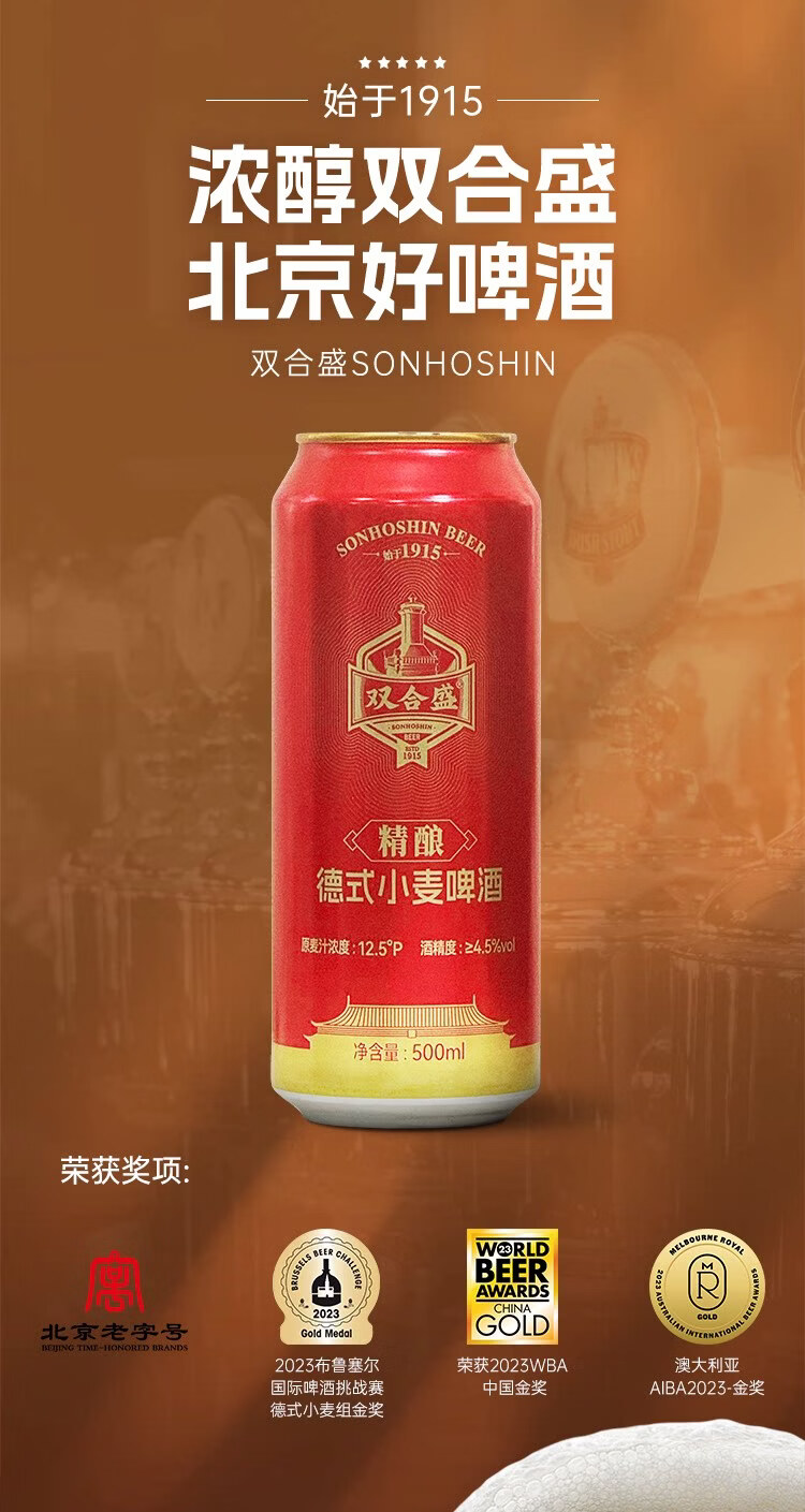 双合盛12.5° 浓醇精酿德式小麦啤酒 百年老字号礼盒 年货节走亲送礼 精心慢酿 500ml*12罐
