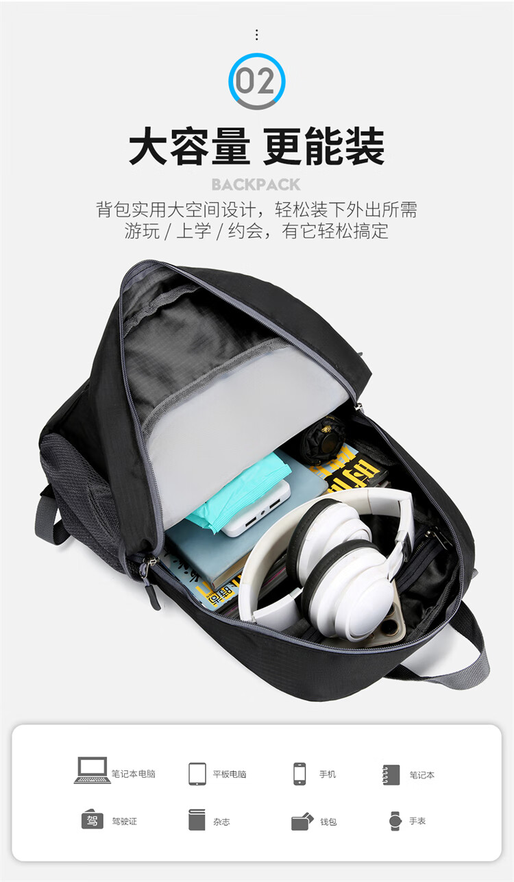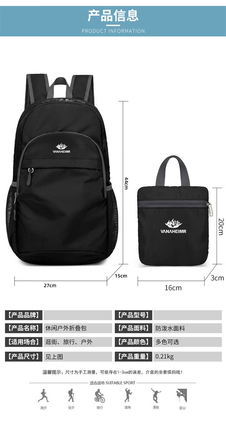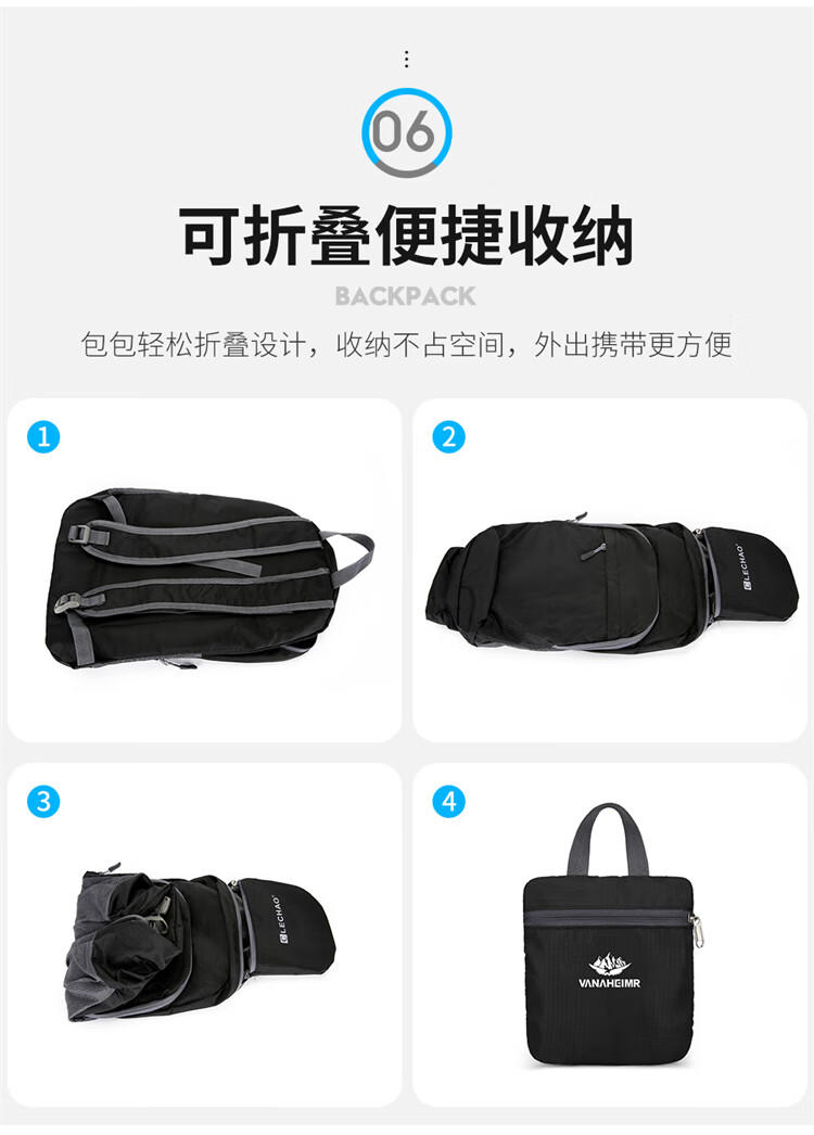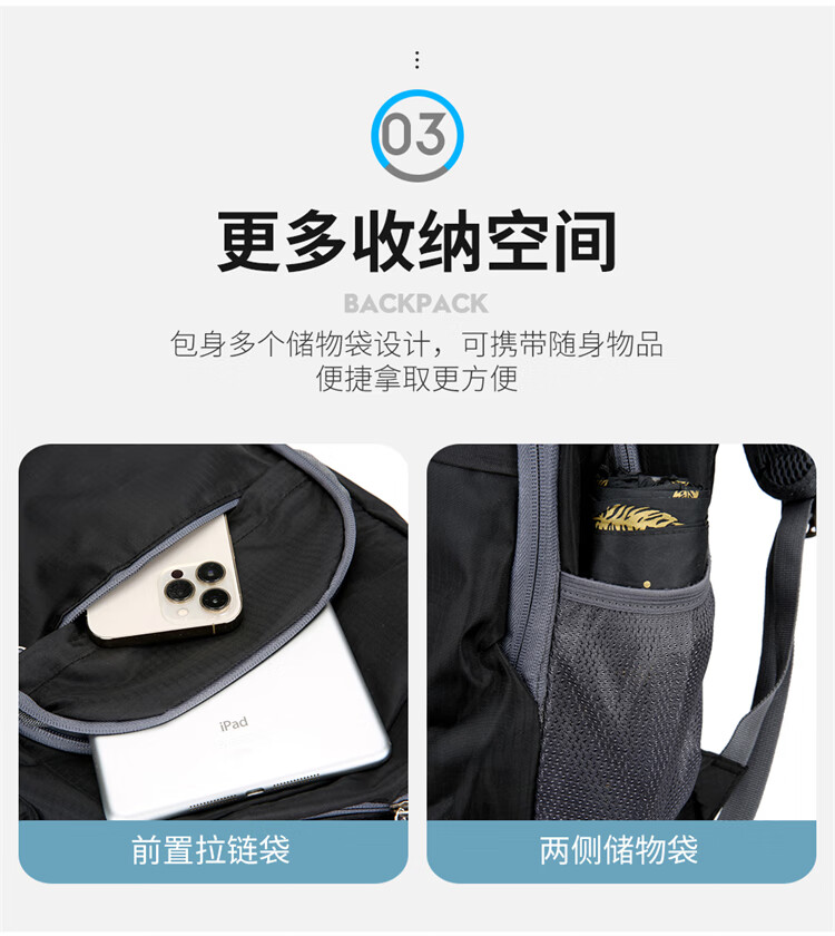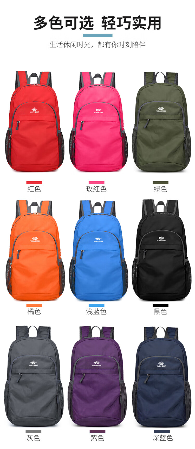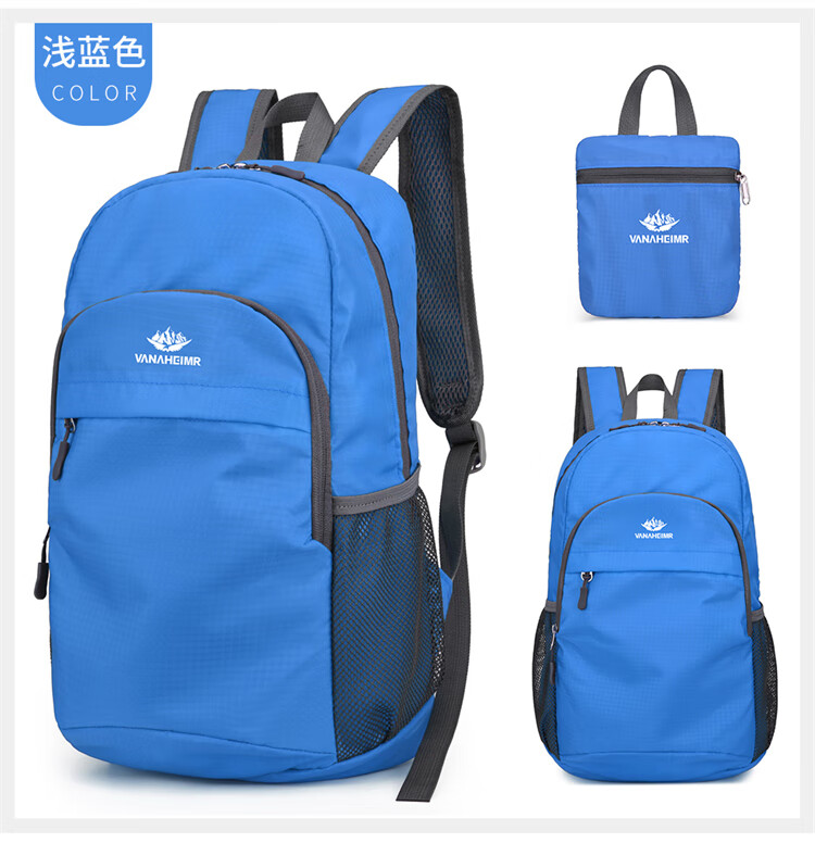 GUIG工厂品质保证户外大容量超轻双肩包可折叠收纳防刮擦旅行包防泼水 【大号】30L-浅蓝-可折叠