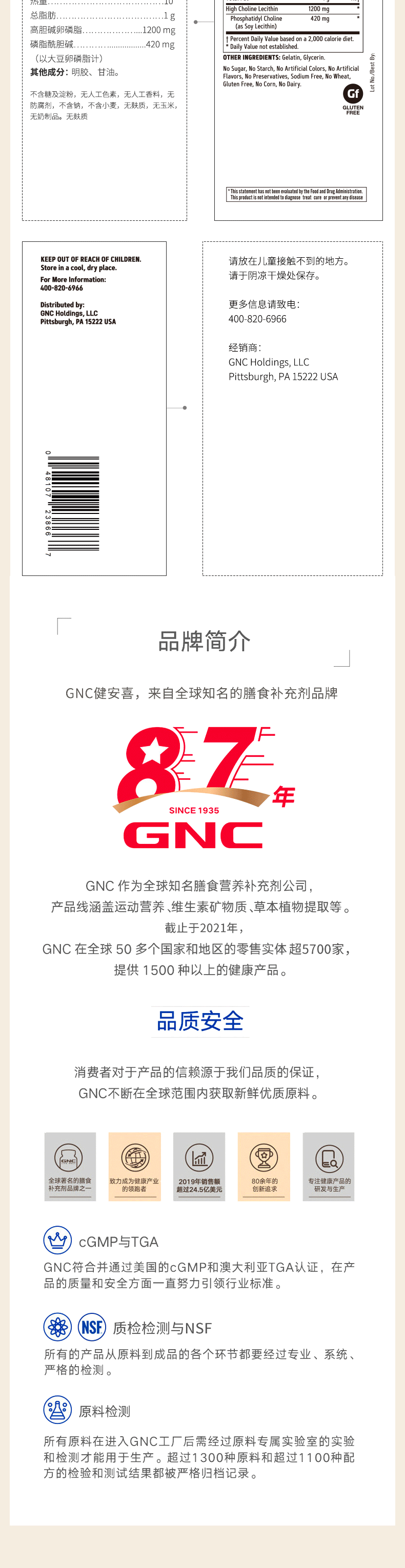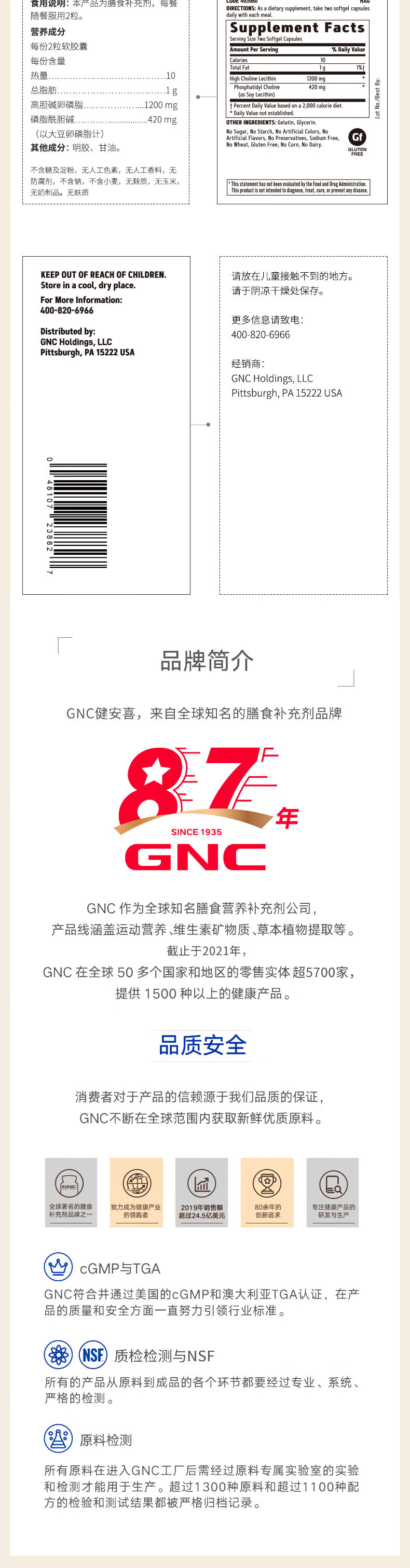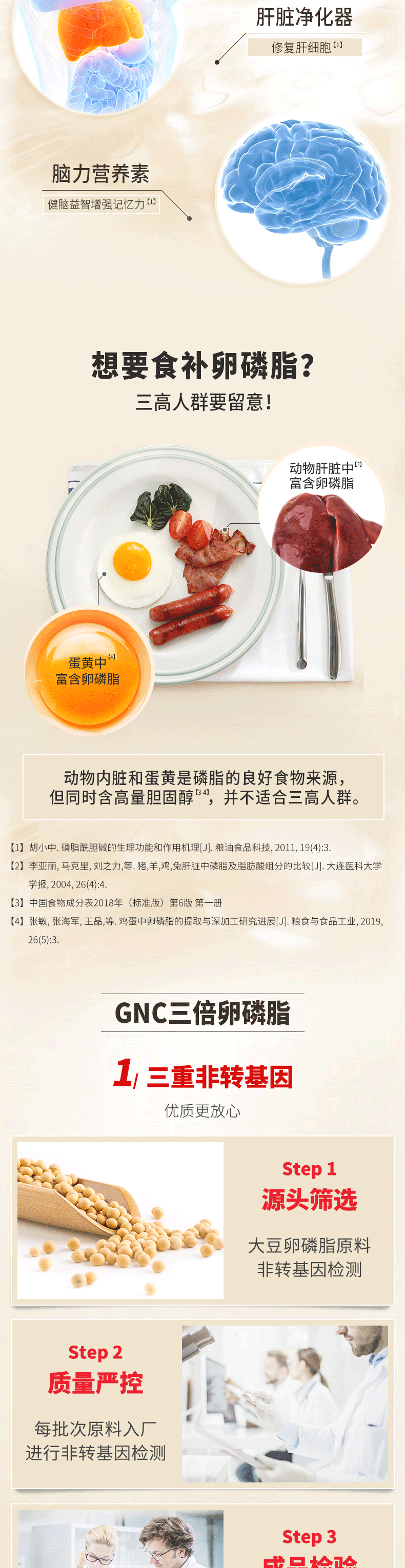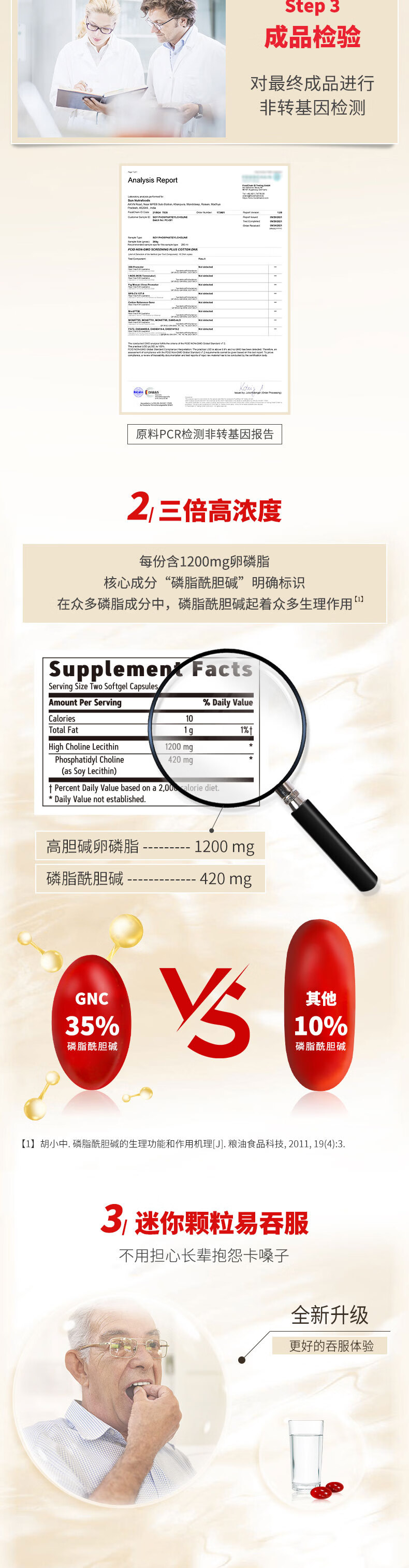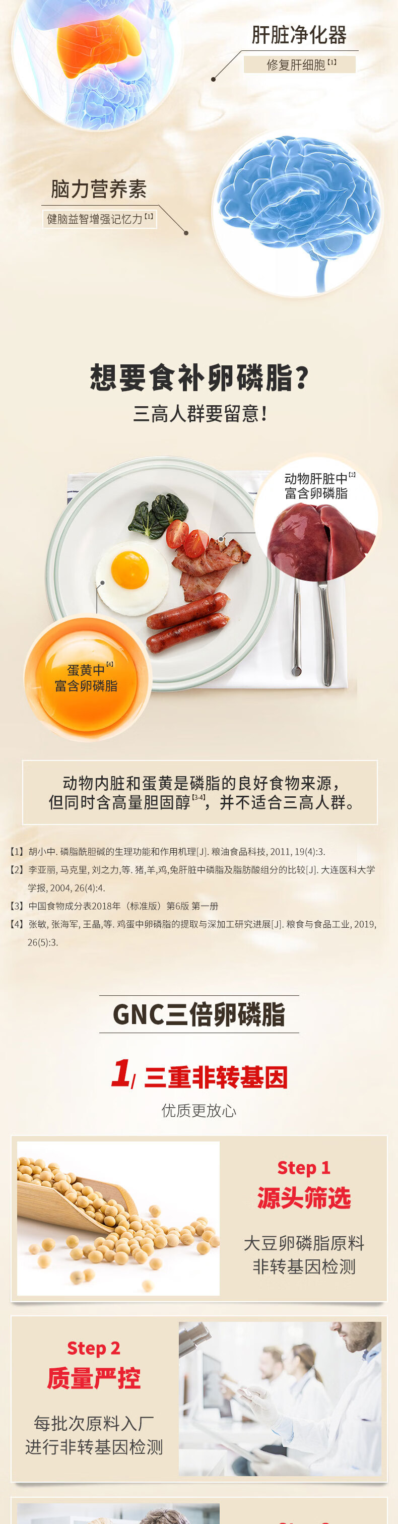 健安喜(GNC)大豆卵磷脂软胶囊1200mg三重浓缩养护心肝脑搭配鱼油180/360粒 三倍卵磷脂 180粒*1瓶