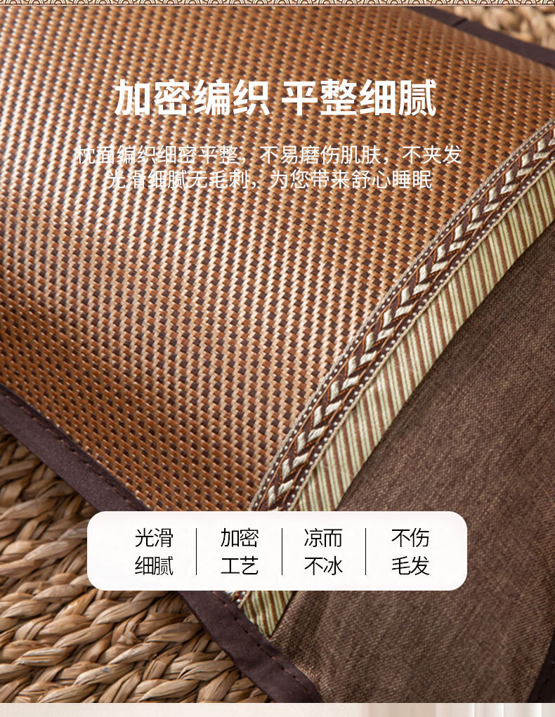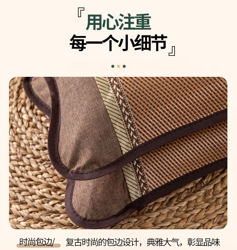 席师傅雅致凉席1.8x2米藤席双人三件套冰丝席子【可折叠 双面可用】