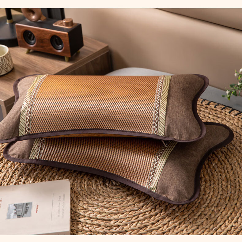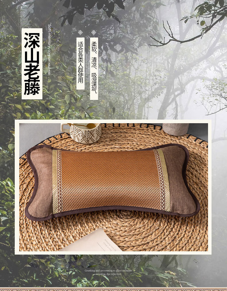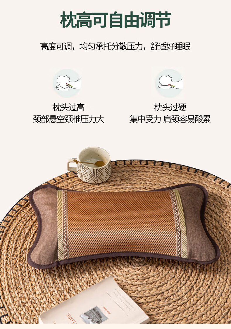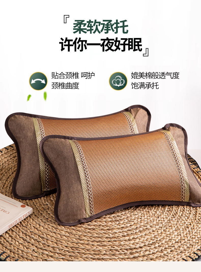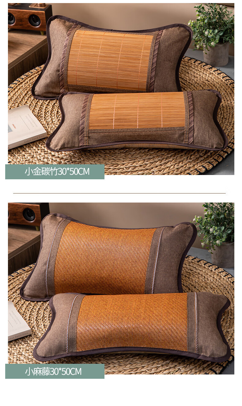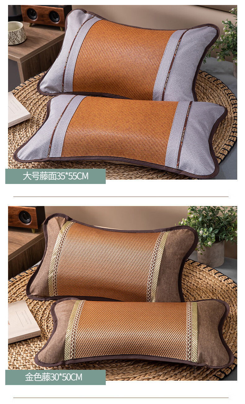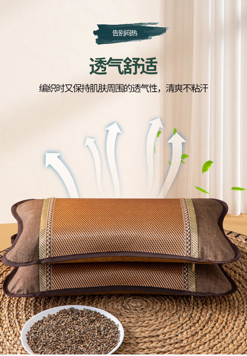 夏季荞麦枕头冰藤枕芯成人护颈椎助睡眠竹枕硬整头花草 冰丝-金藤面-苦荞填充 单只 50cm*30cm 清凉好眠