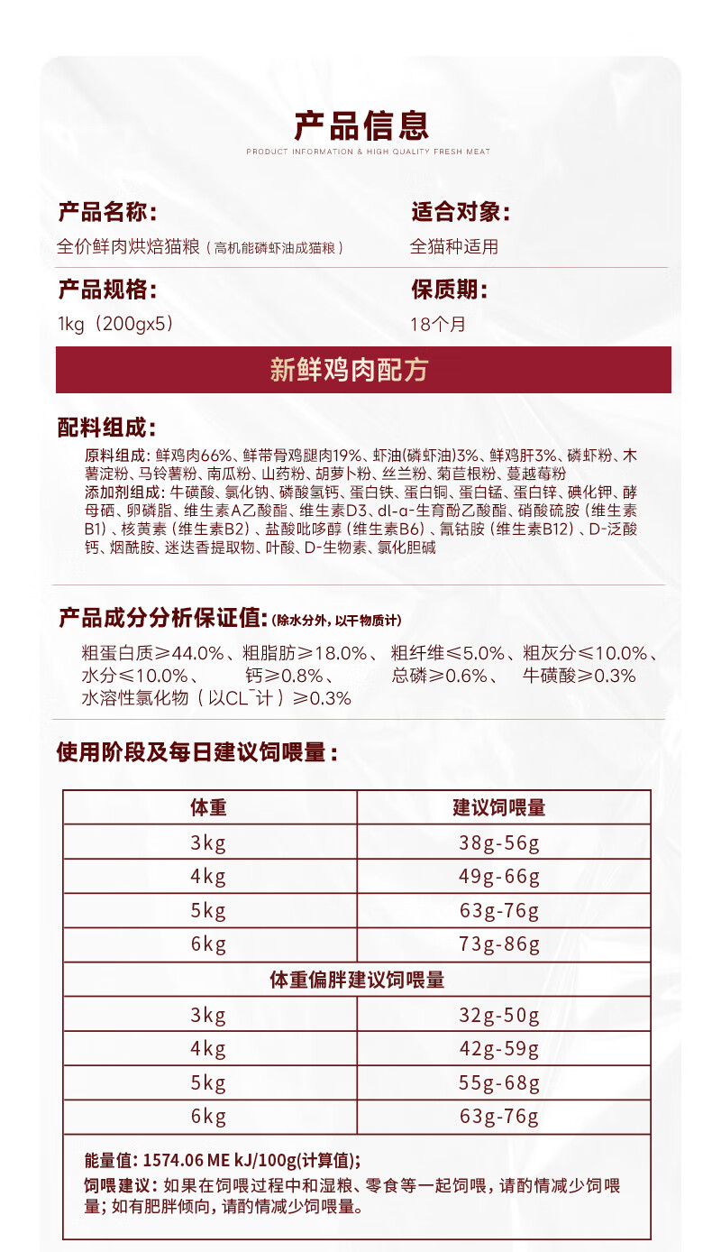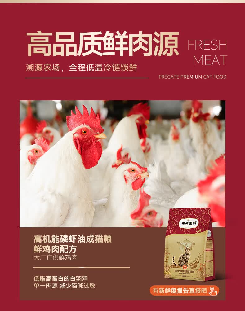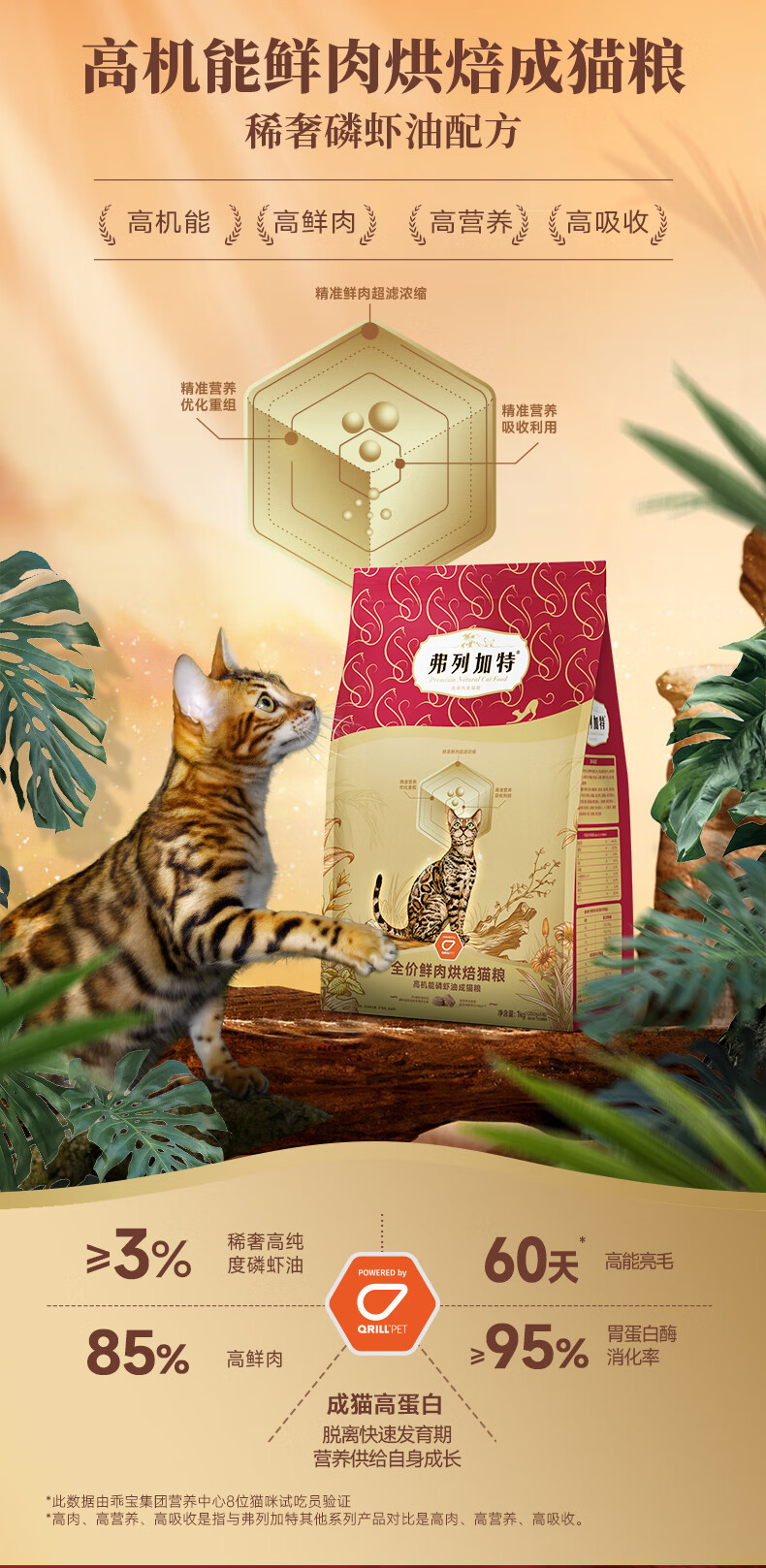 弗列加特 全价鲜肉烘焙成猫猫粮 磷虾油美毛 鲜鸡肉配方1kg
