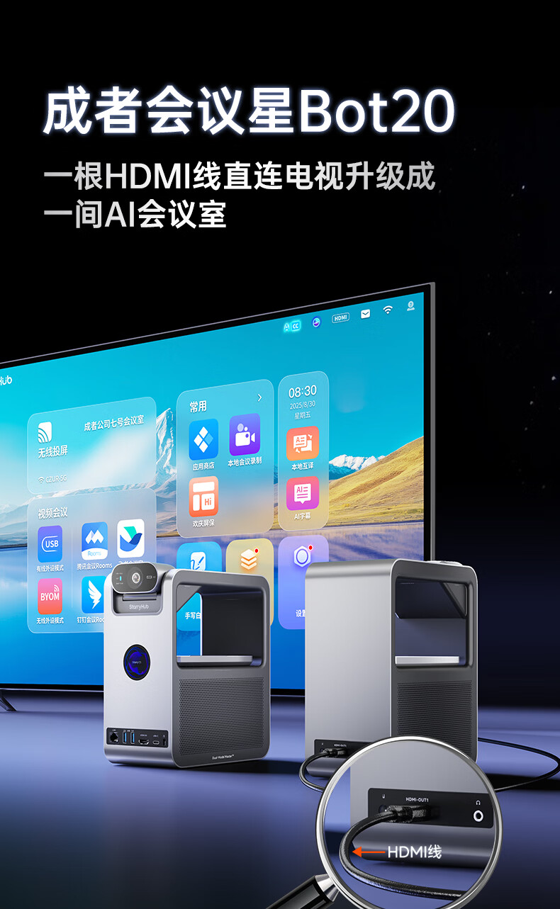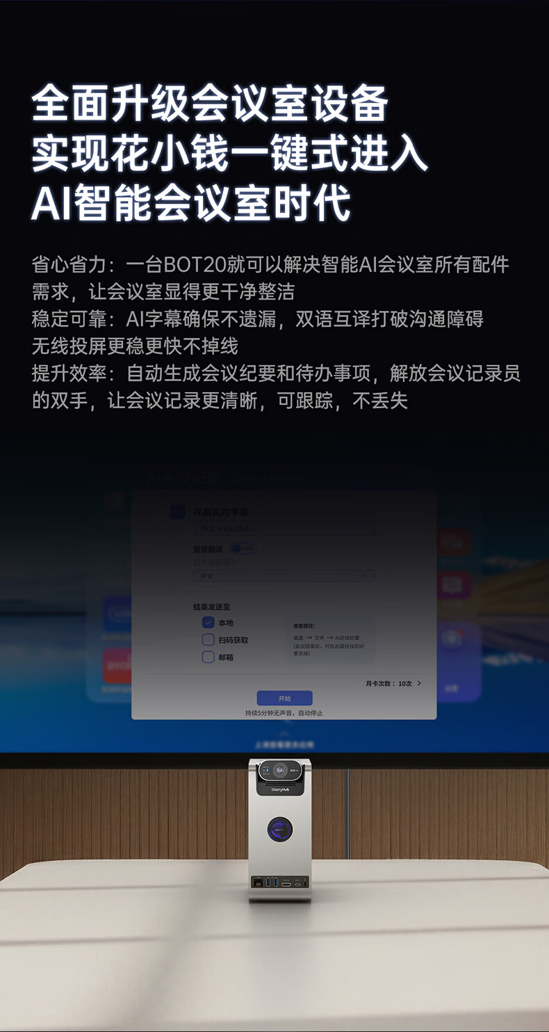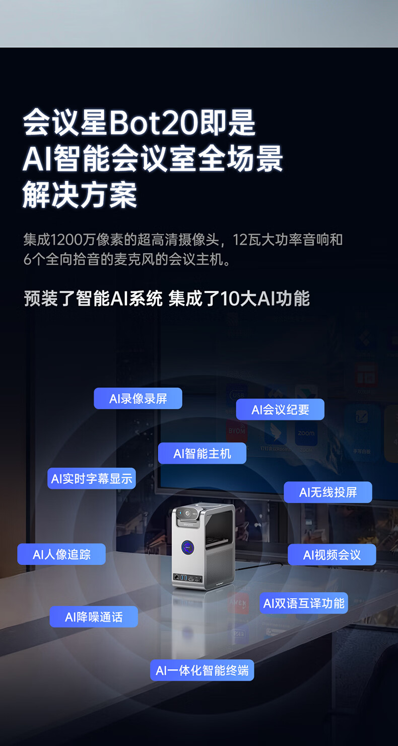 成者会议星bot20视频会议摄像头全向麦克风 无线投屏会议拾音器音响一体机 会议室专用AI会议主机 会议星Bot20【AI会议主机】