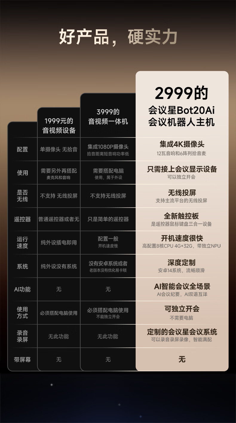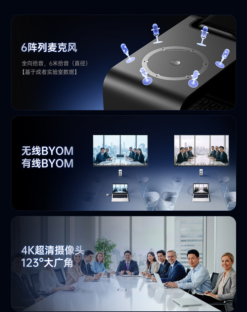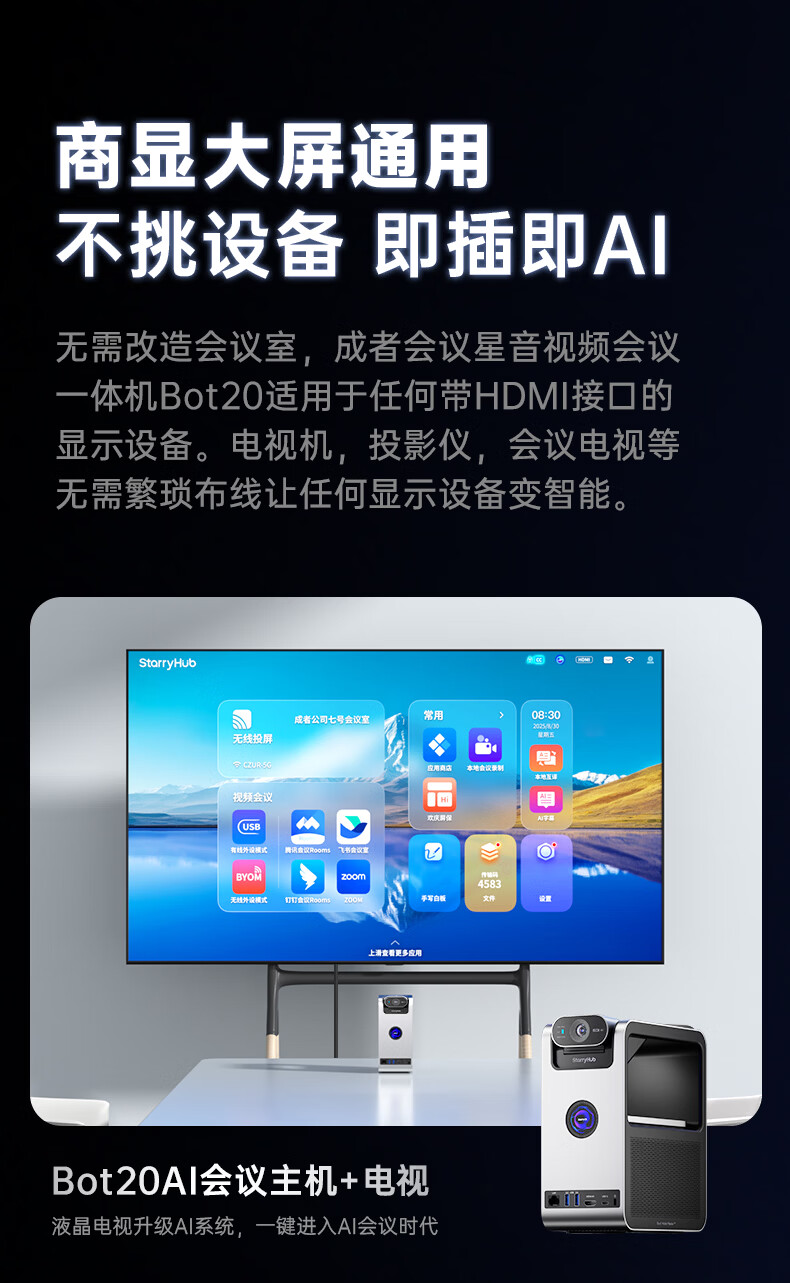 成者会议星bot20视频会议摄像头全向麦克风 无线投屏会议拾音器音响一体机 会议室专用AI会议主机 会议星Bot20【AI会议主机】