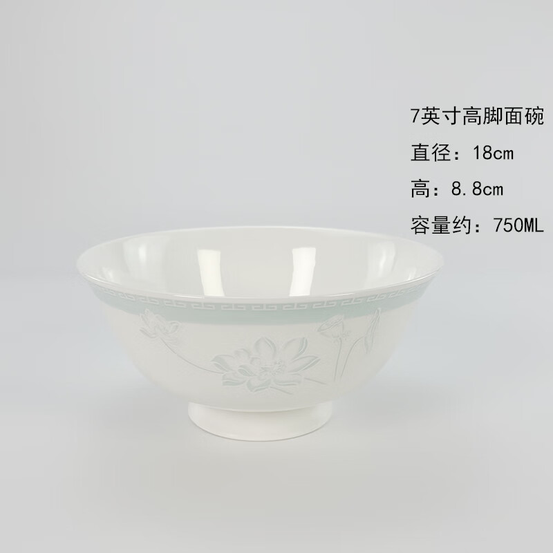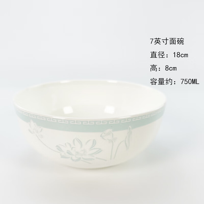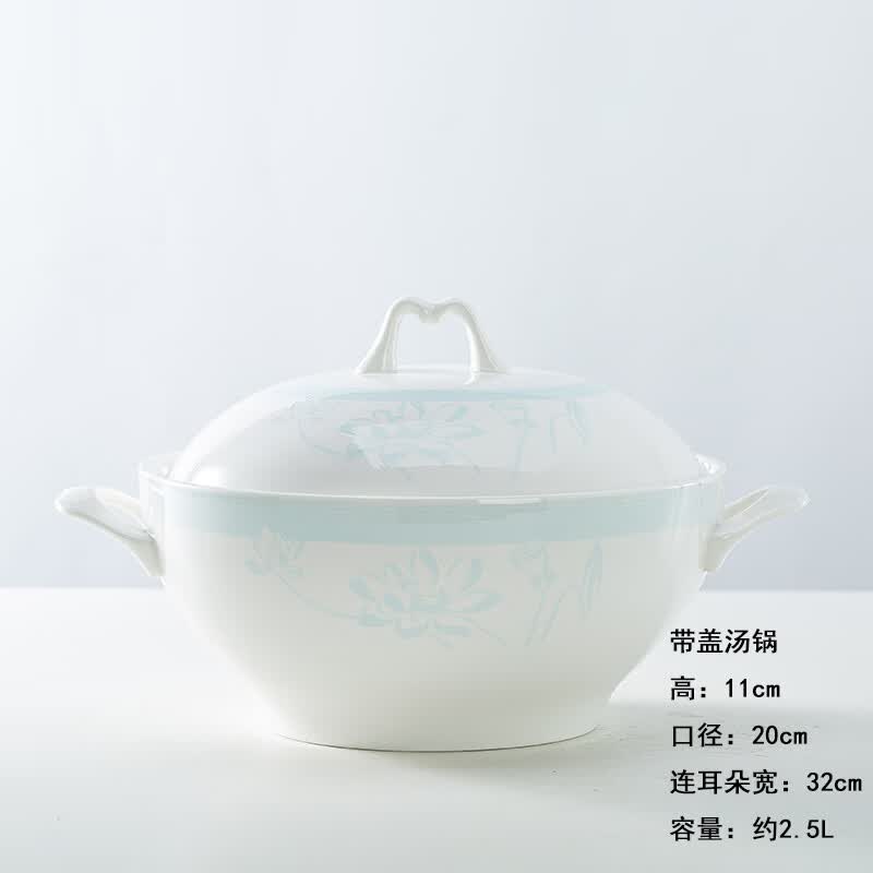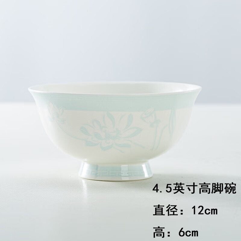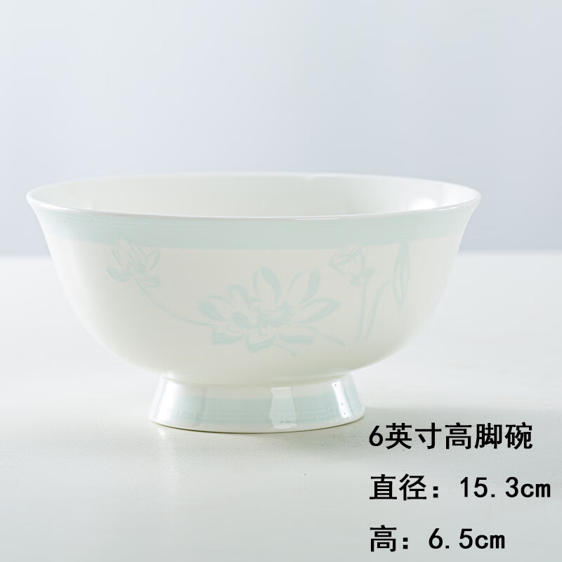 锦秋堂景德镇骨瓷餐具 家用陶瓷器 釉下彩高脚米饭碗 单碗 荷塘月色 diy 8英寸汤碗(无盖)