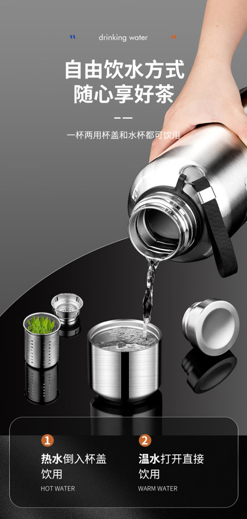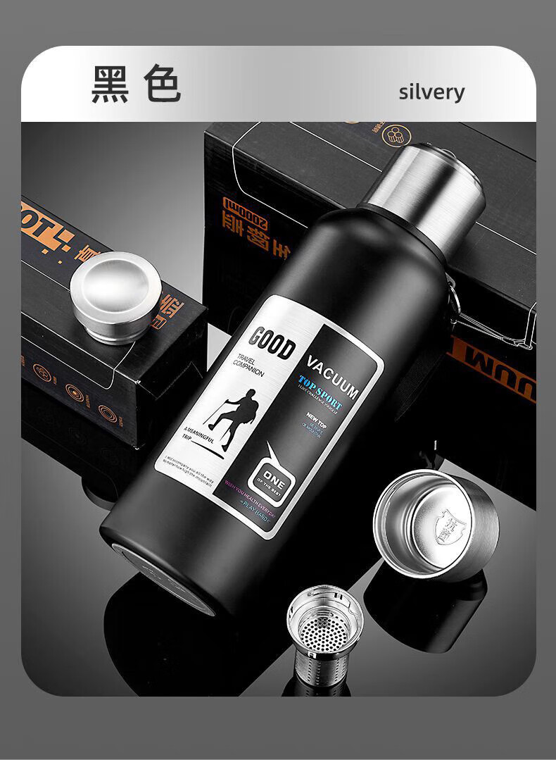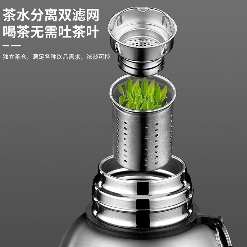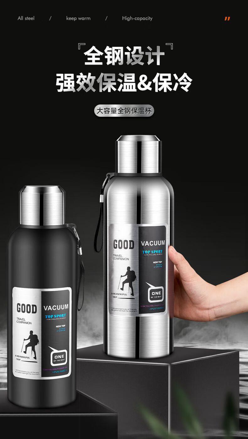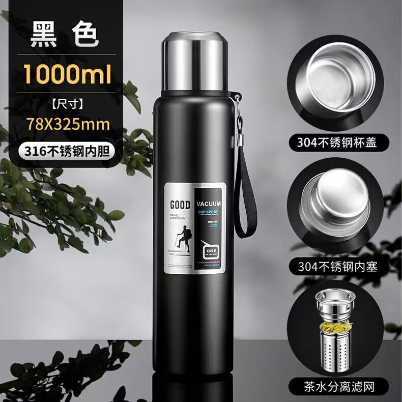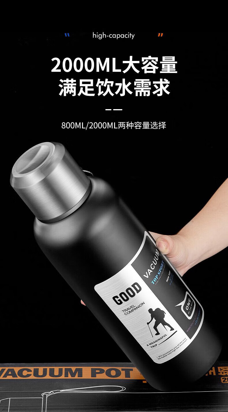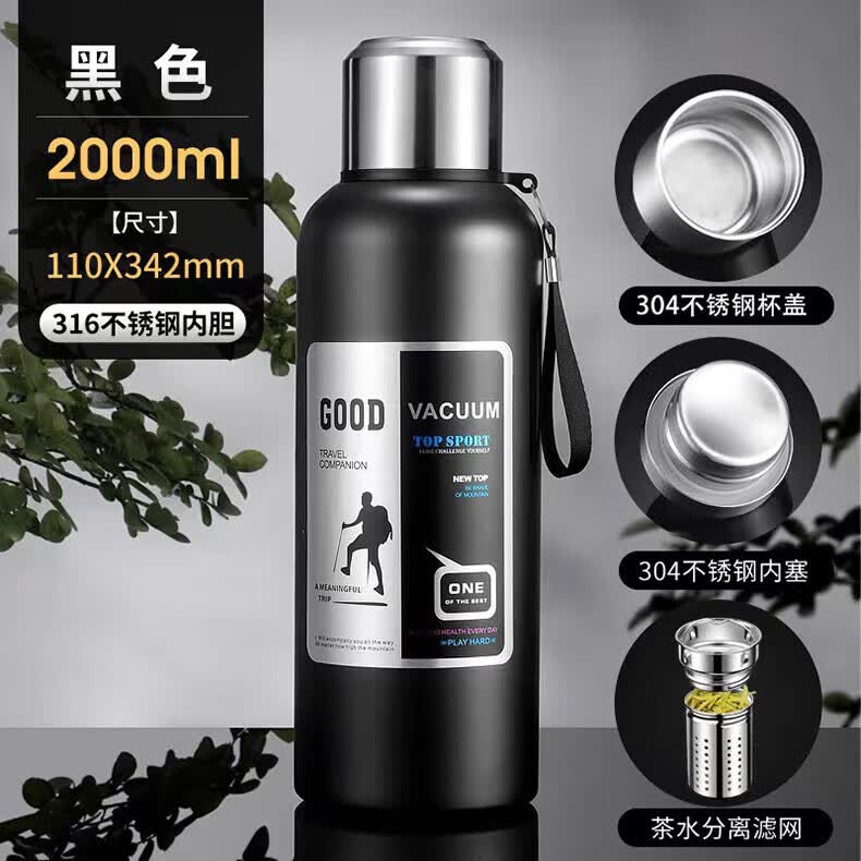PJ全钢保温杯网网红水杯水壶大容量316不锈钢男士便携茶杯户外车 加厚黑色2000ml