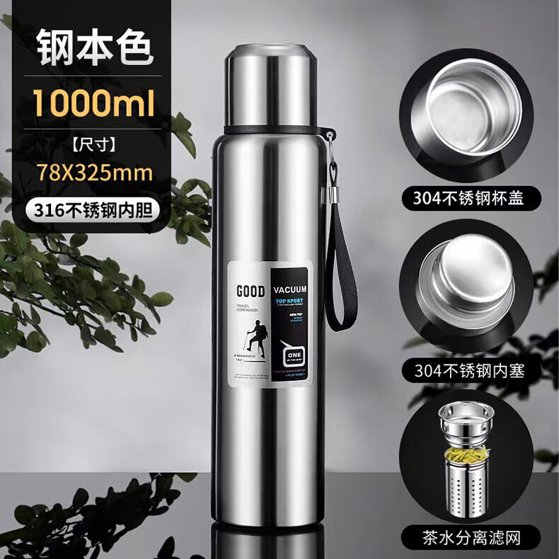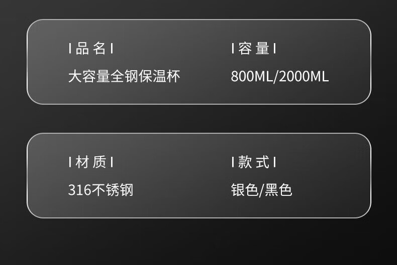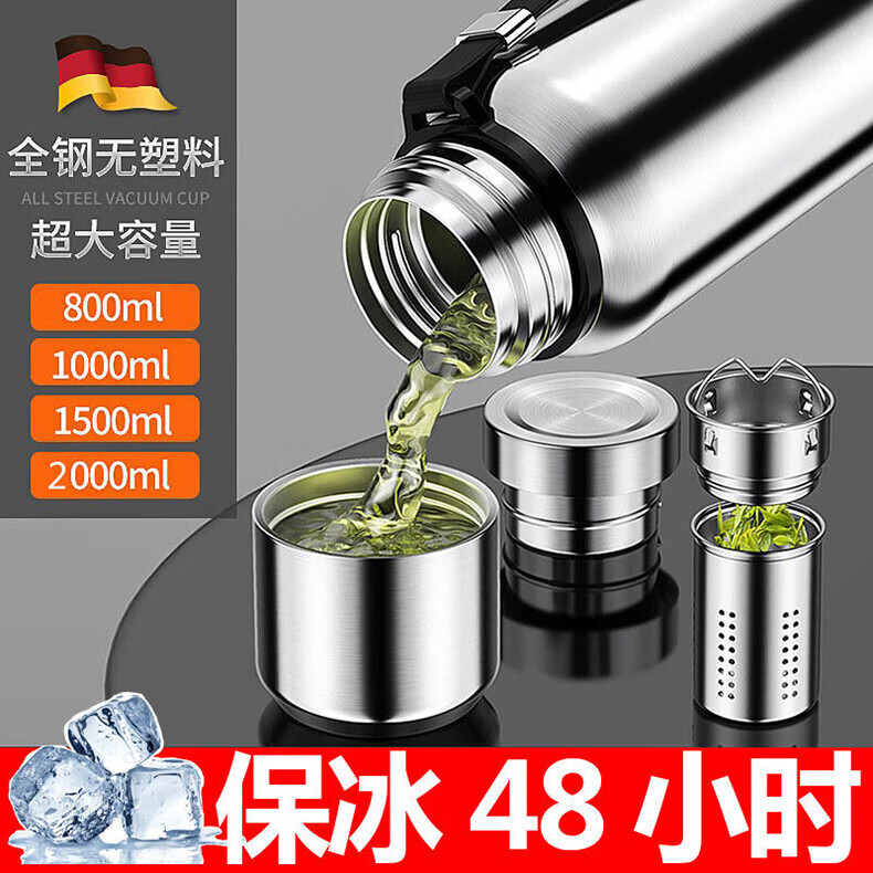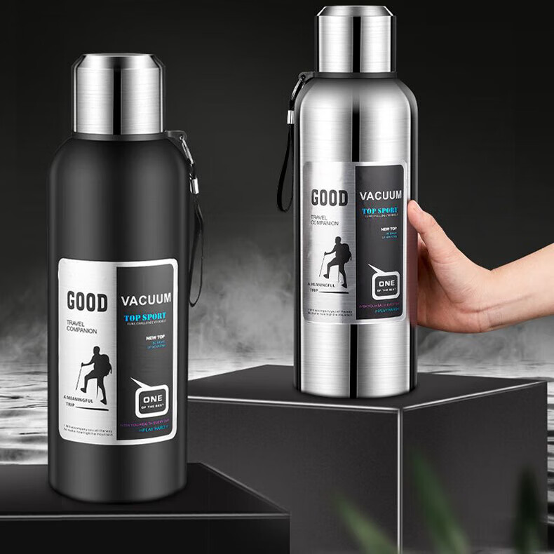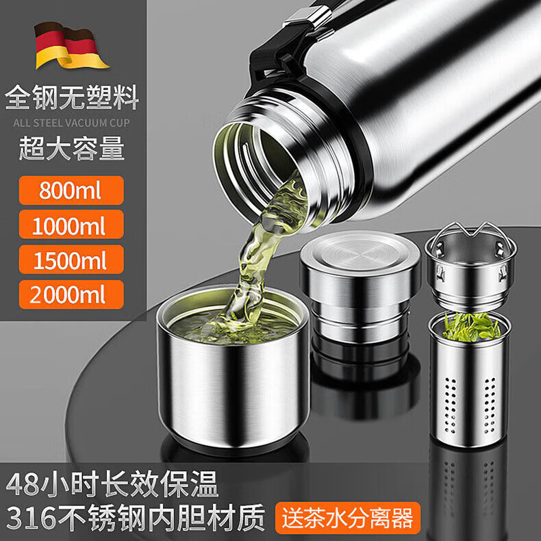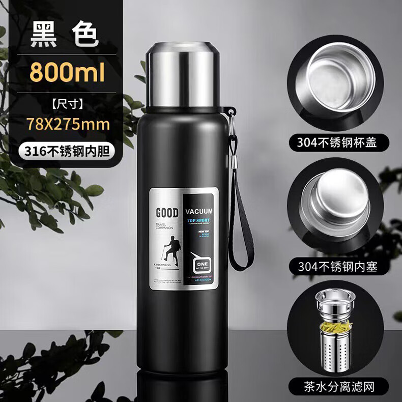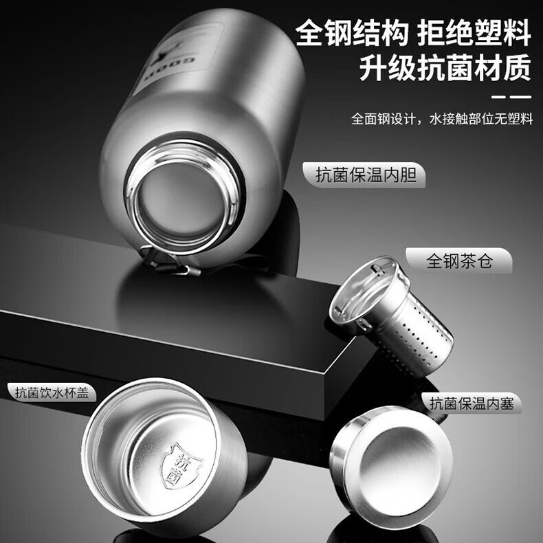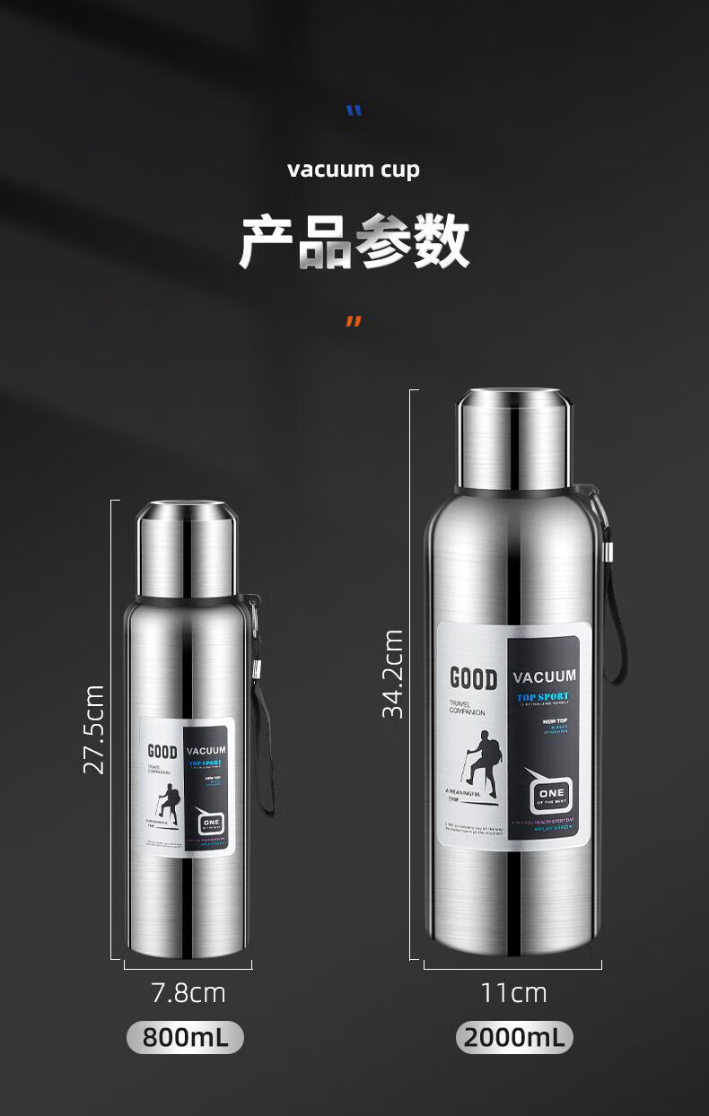 PJ全钢保温杯网网红水杯水壶大容量316不锈钢男士便携茶杯户外车 加厚黑色2000ml