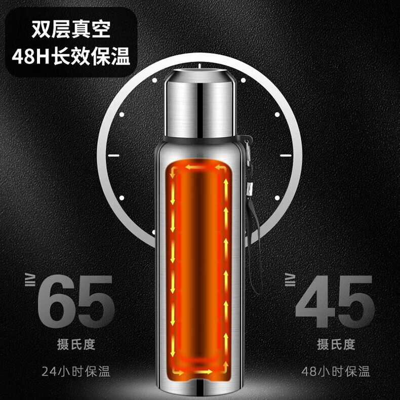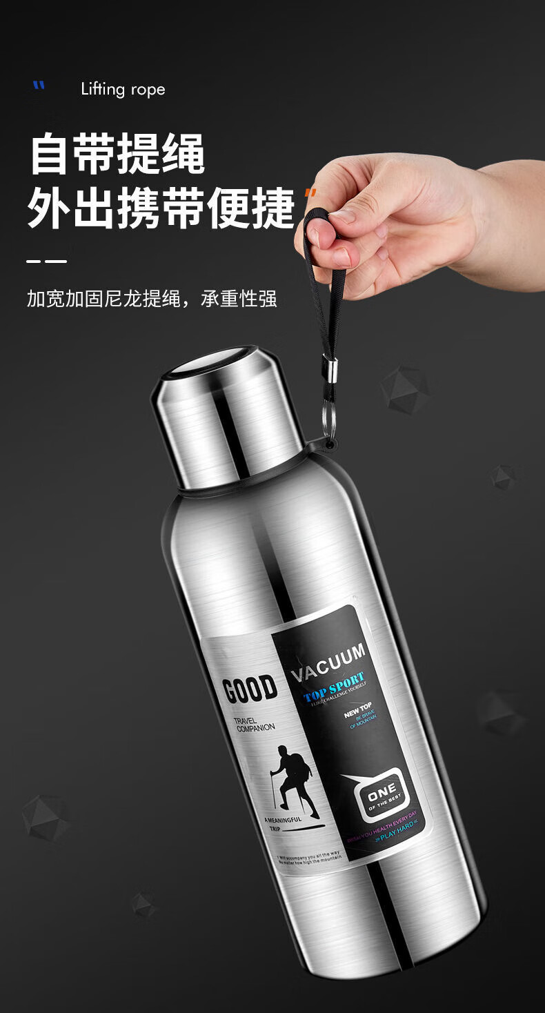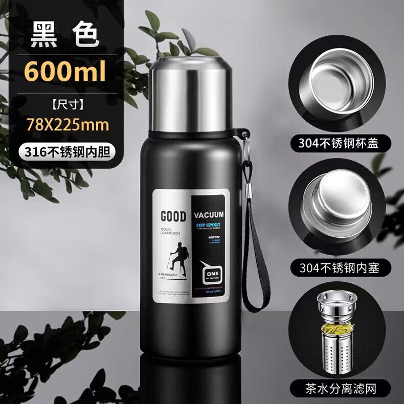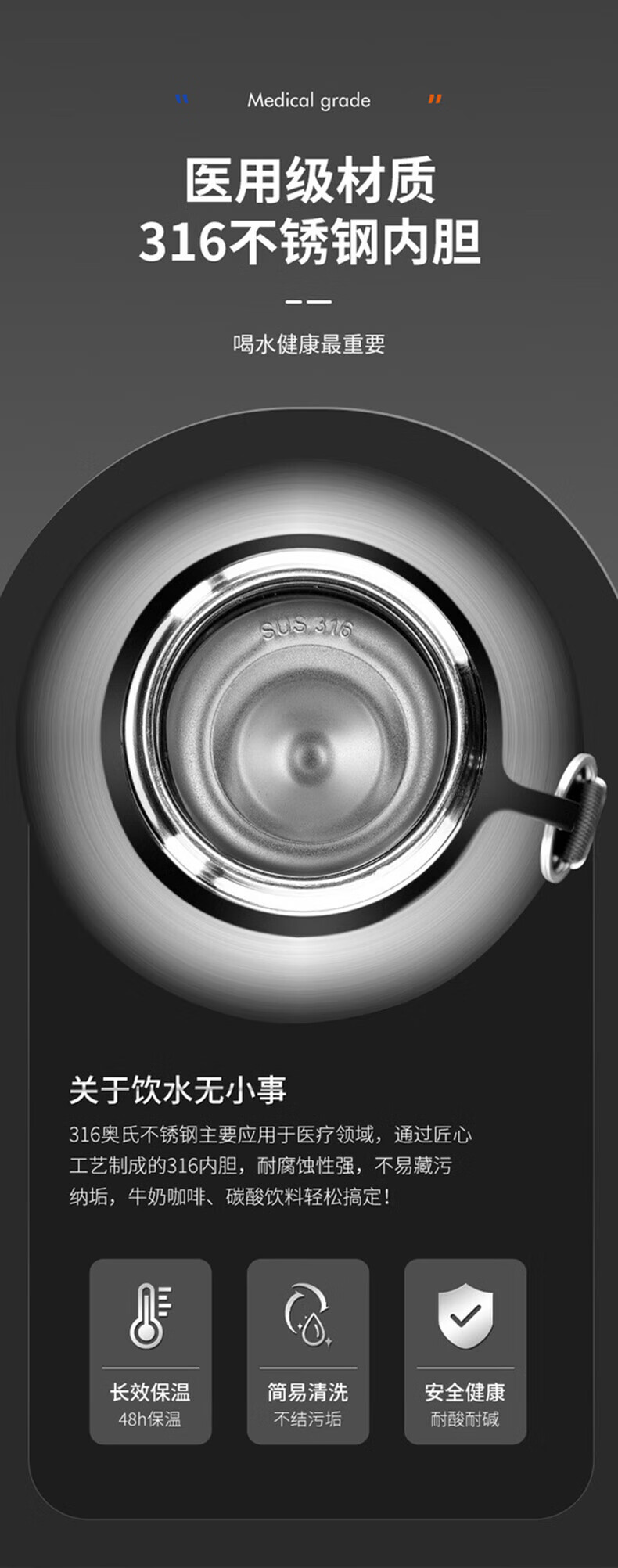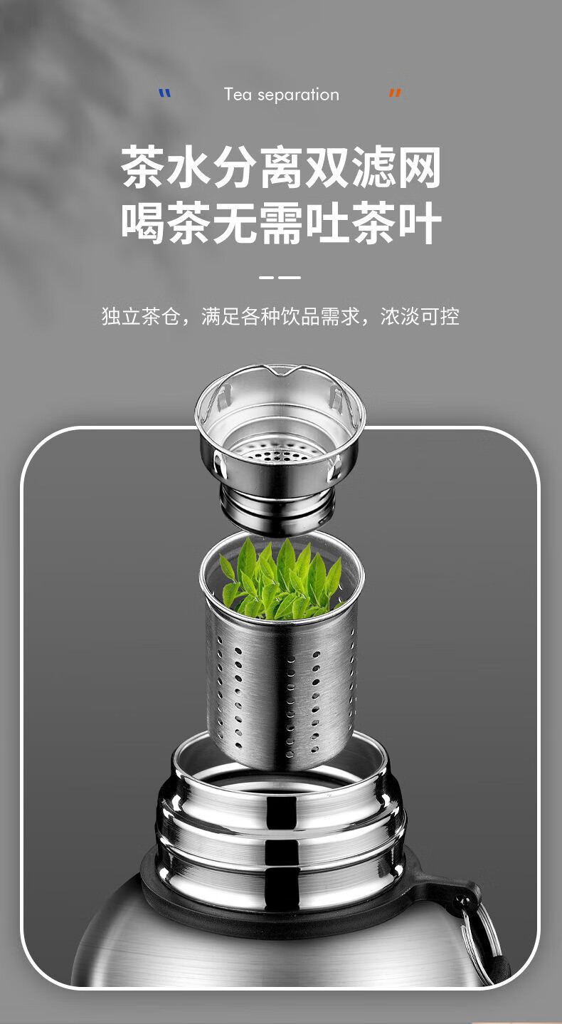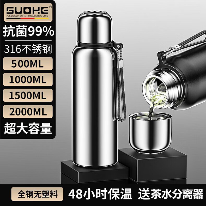 PJ全钢保温杯网网红水杯水壶大容量316不锈钢男士便携茶杯户外车 加厚黑色2000ml