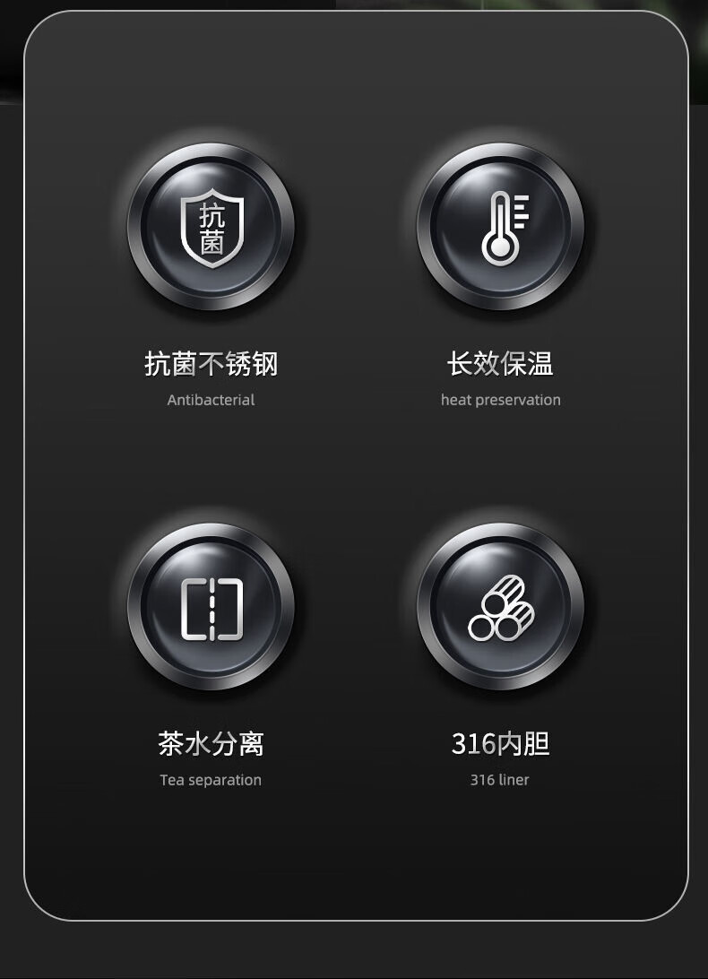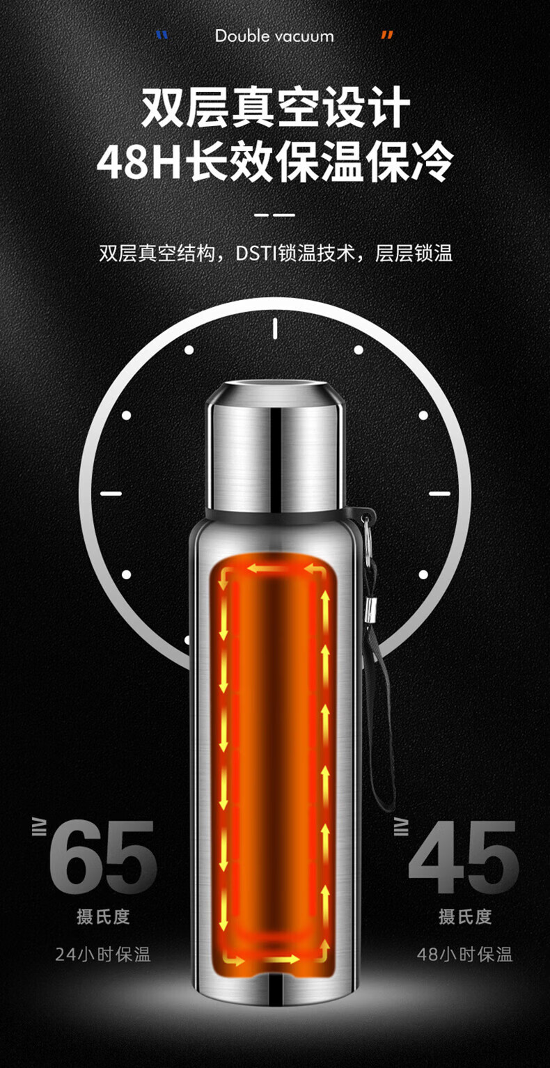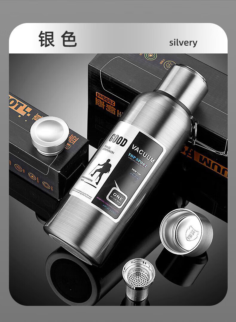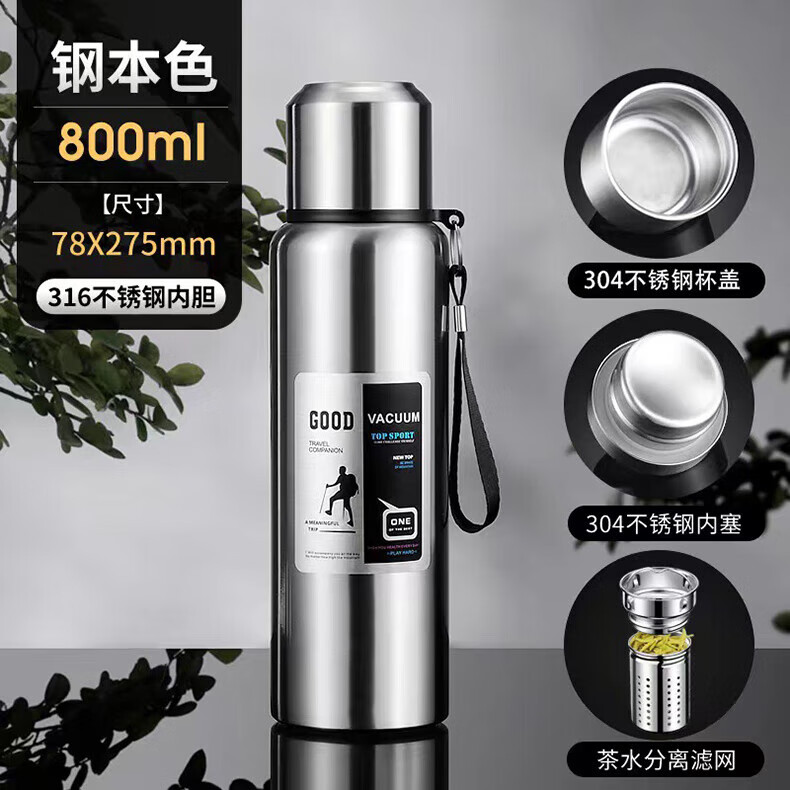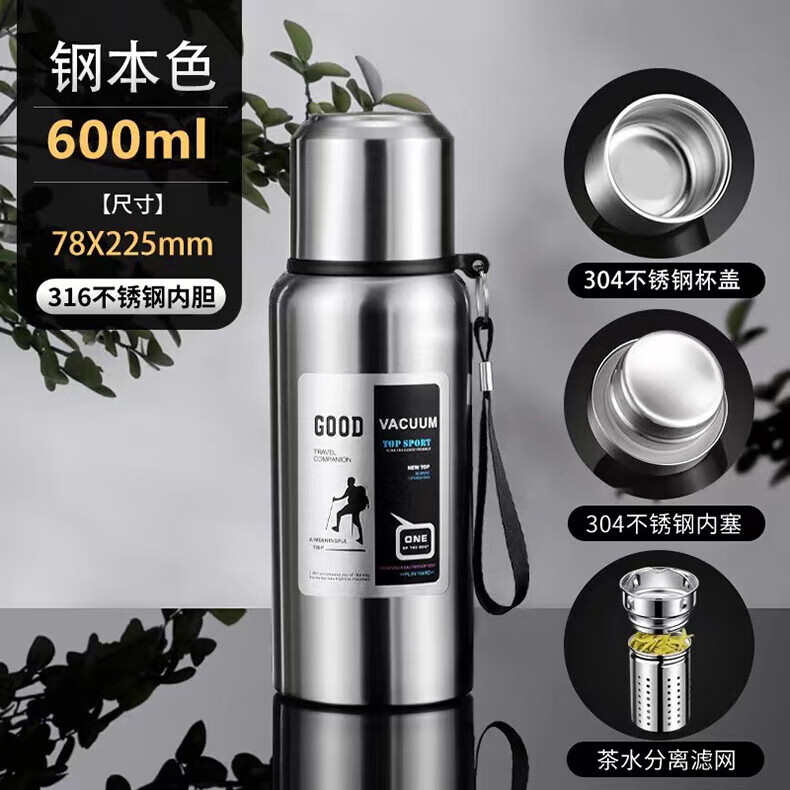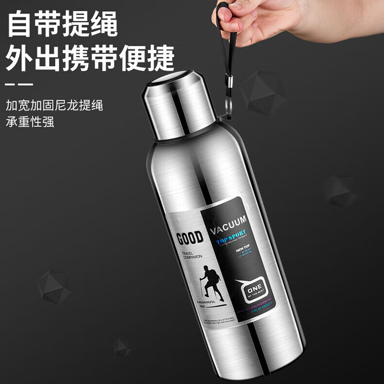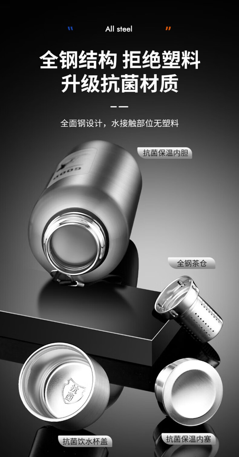 PJ全钢保温杯网网红水杯水壶大容量316不锈钢男士便携茶杯户外车 加厚黑色2000ml