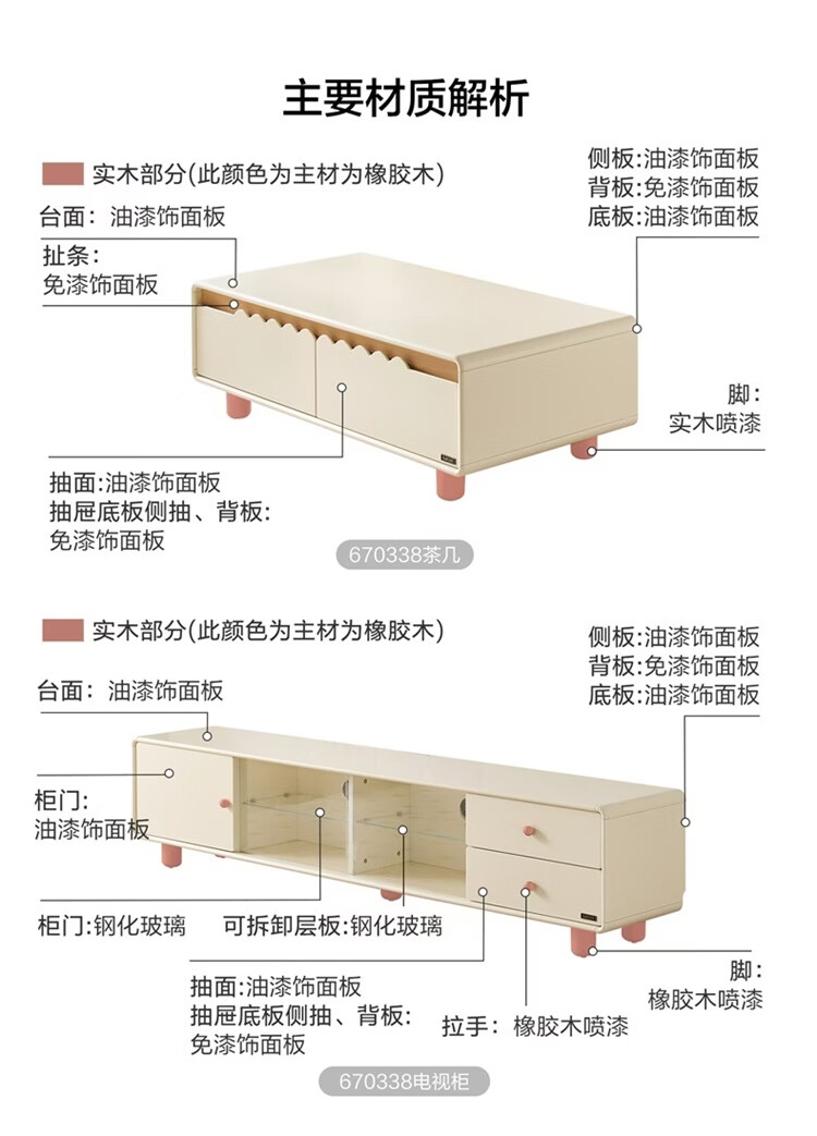 全友家居原木奶油风电视柜茶几组合家用加宽实木脚收纳储物桌置物柜 【奶油白+原木色】电视柜