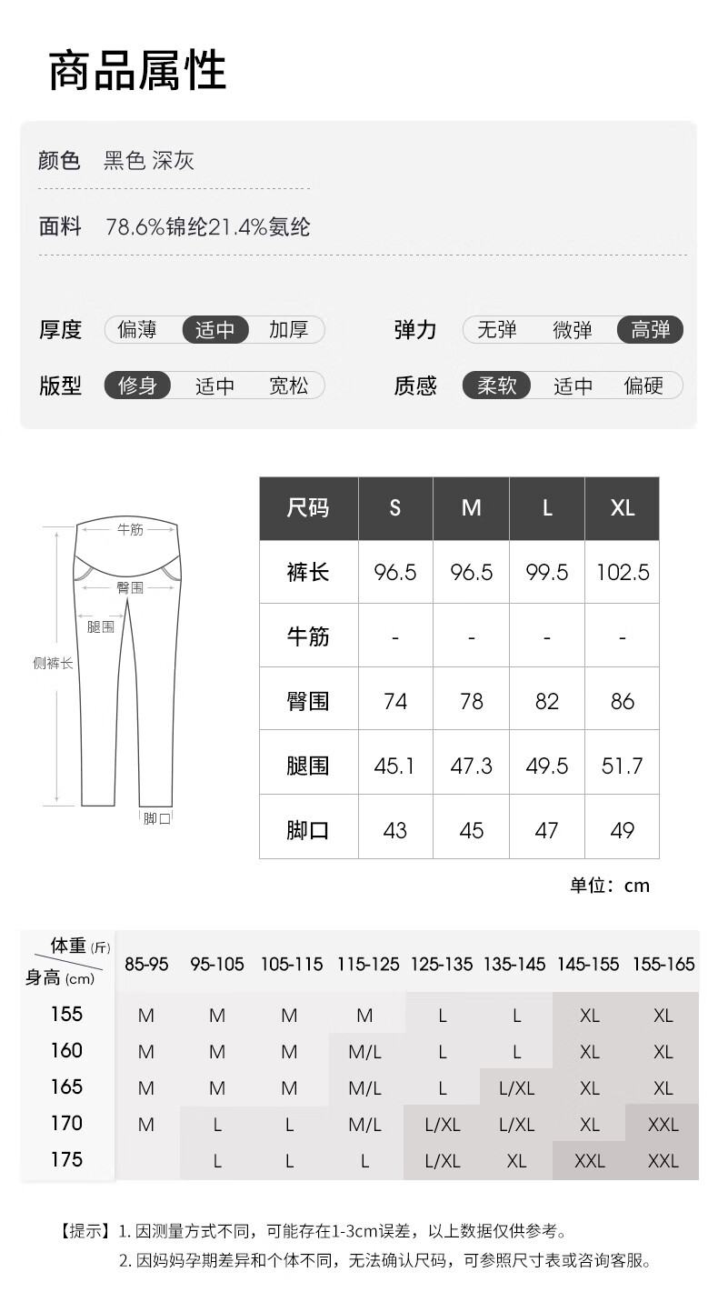 孕之彩孕妇春季新款九分烟管裤孕妇裤款360超弹高腰直筒裤 黑色 XXL