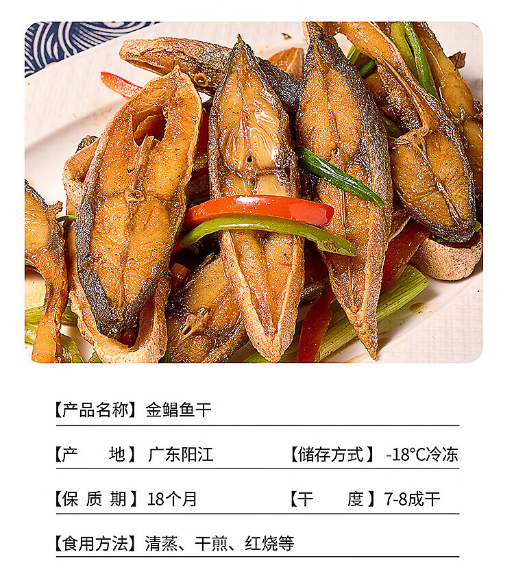 海确丰广东阳江特产金鲳鱼干6条装渔民新晒海鱼干淡口风干不咸干货 淡晒金鲳鱼 6条(每条450-500克)共约2700g