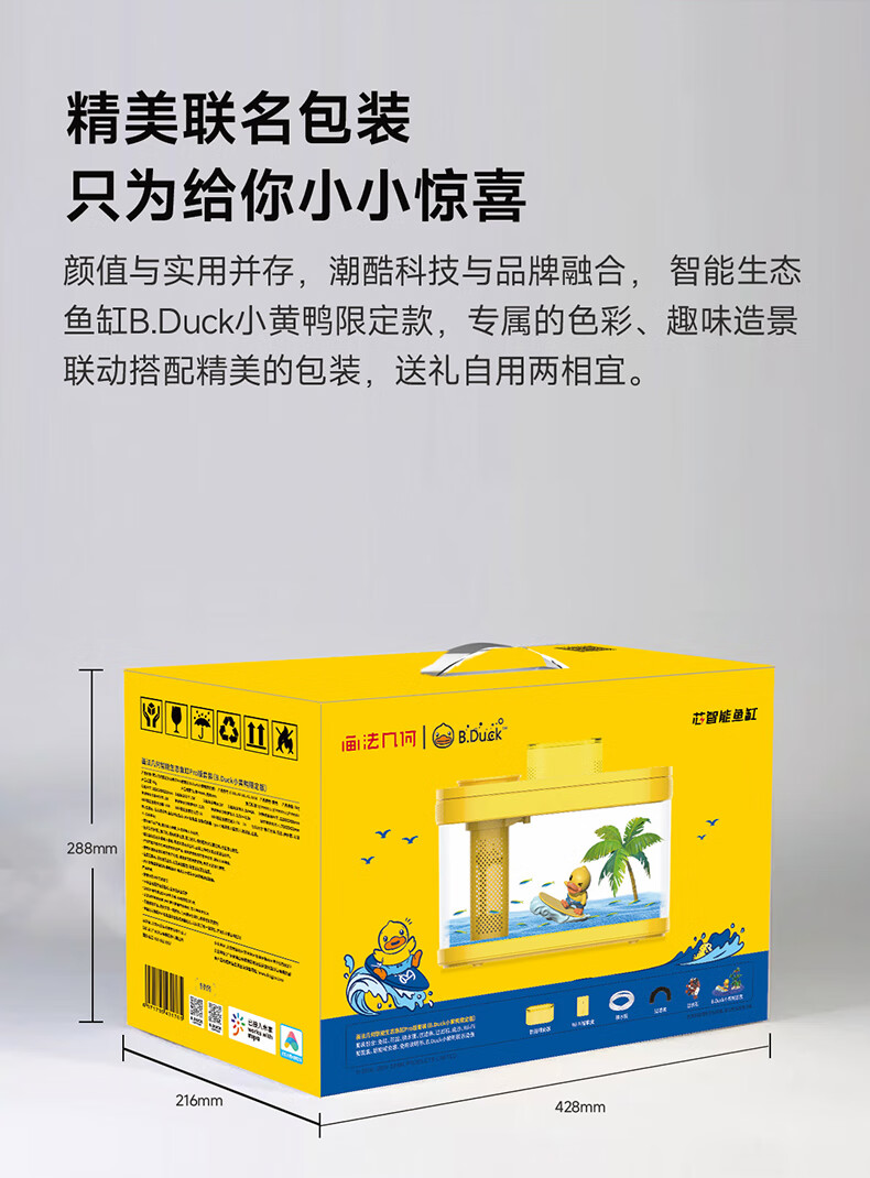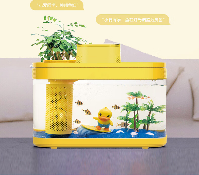 画法几何智能鱼缸桌面客厅鱼缸生态缸全套语音操控小型鱼缸免换水懒人鱼缸 C180 WIFI盒+喂食器【非小黄鸭版】
