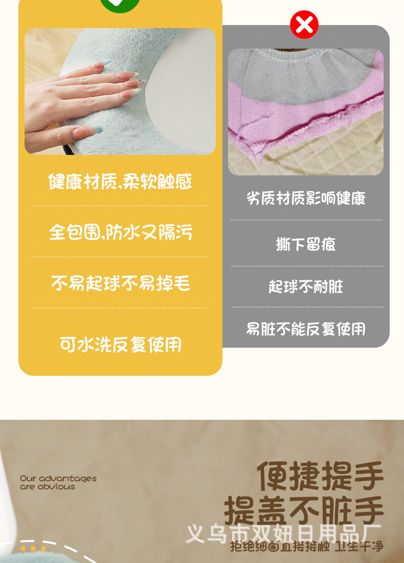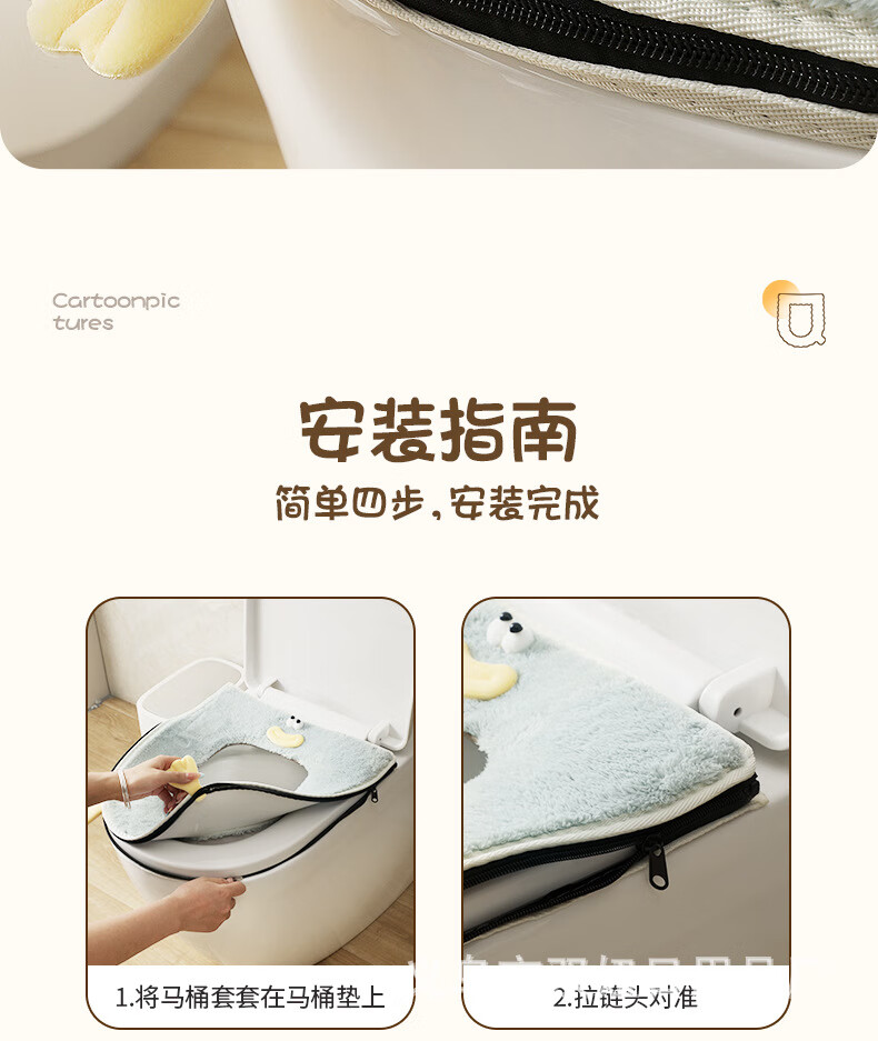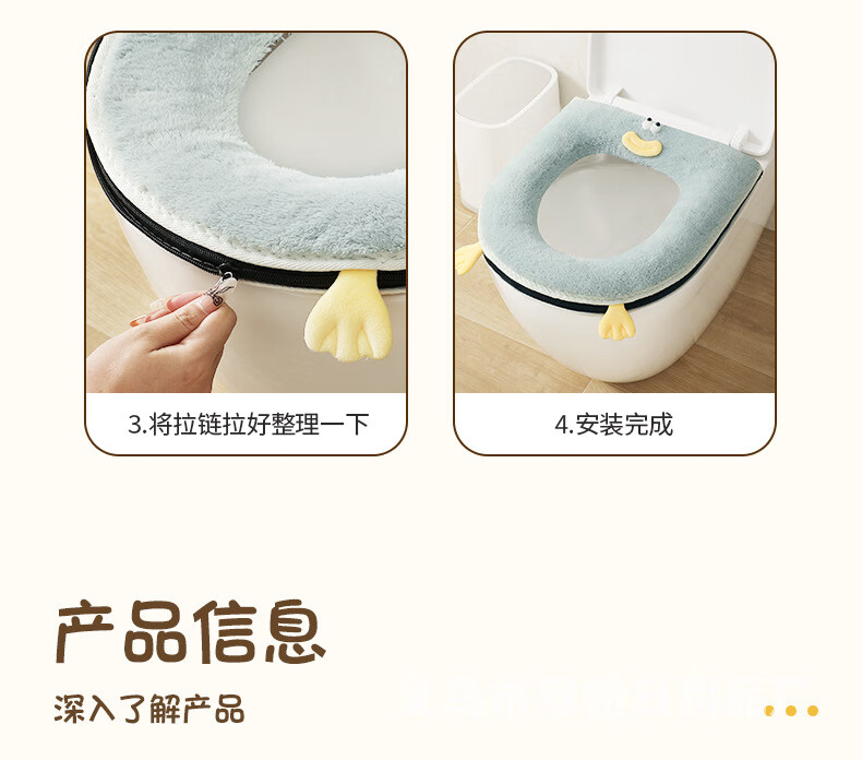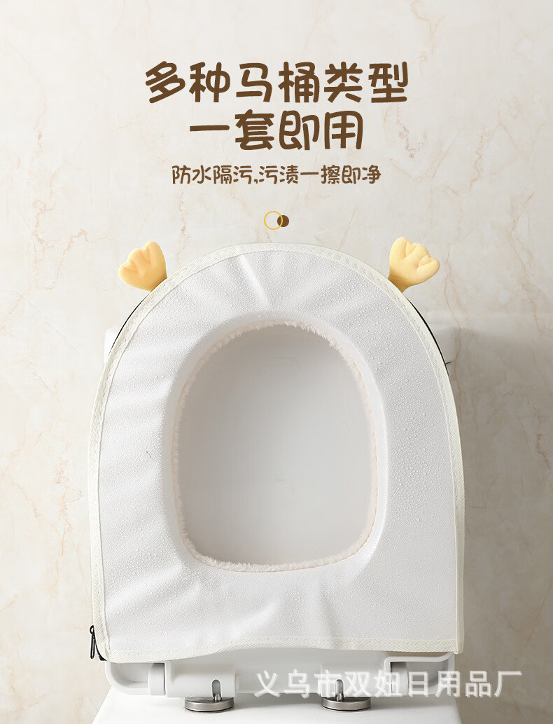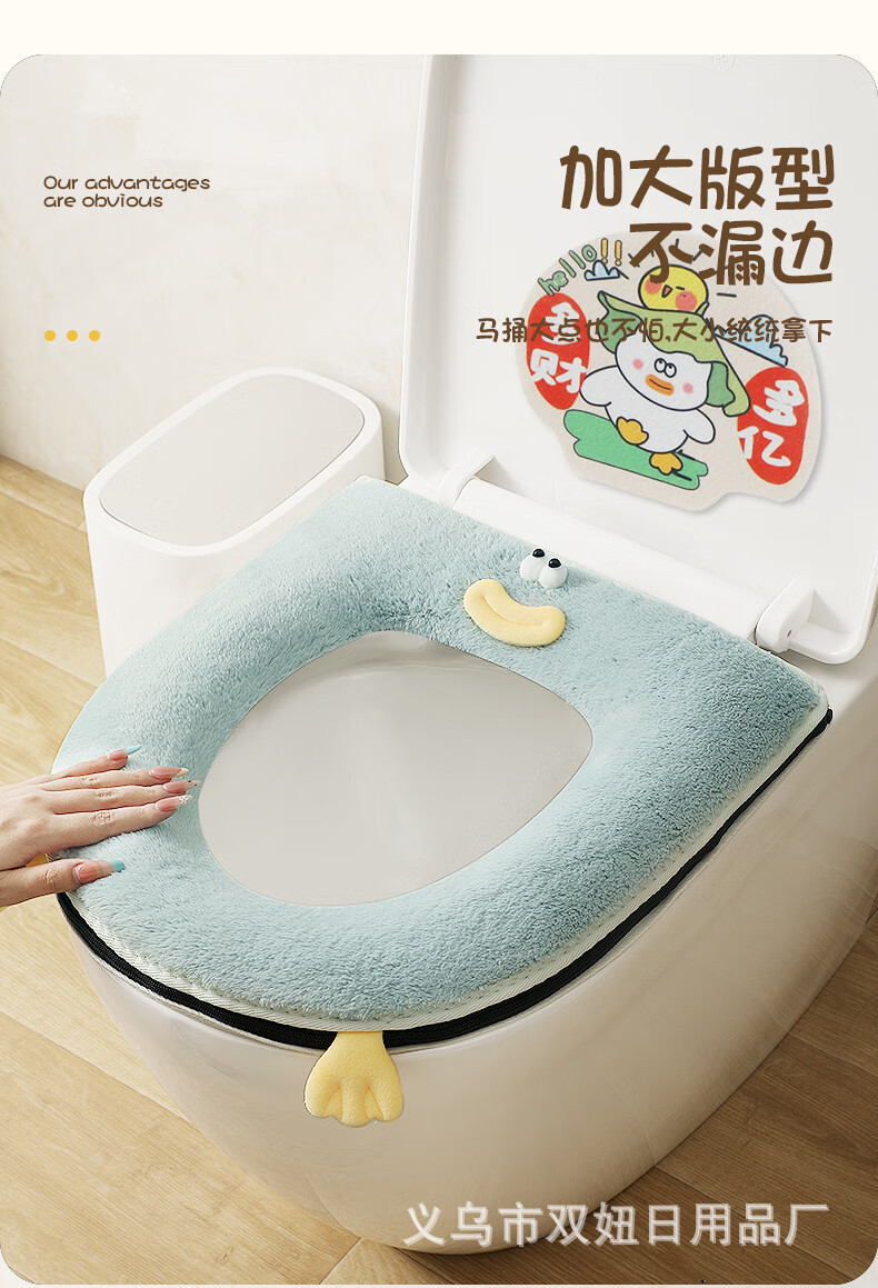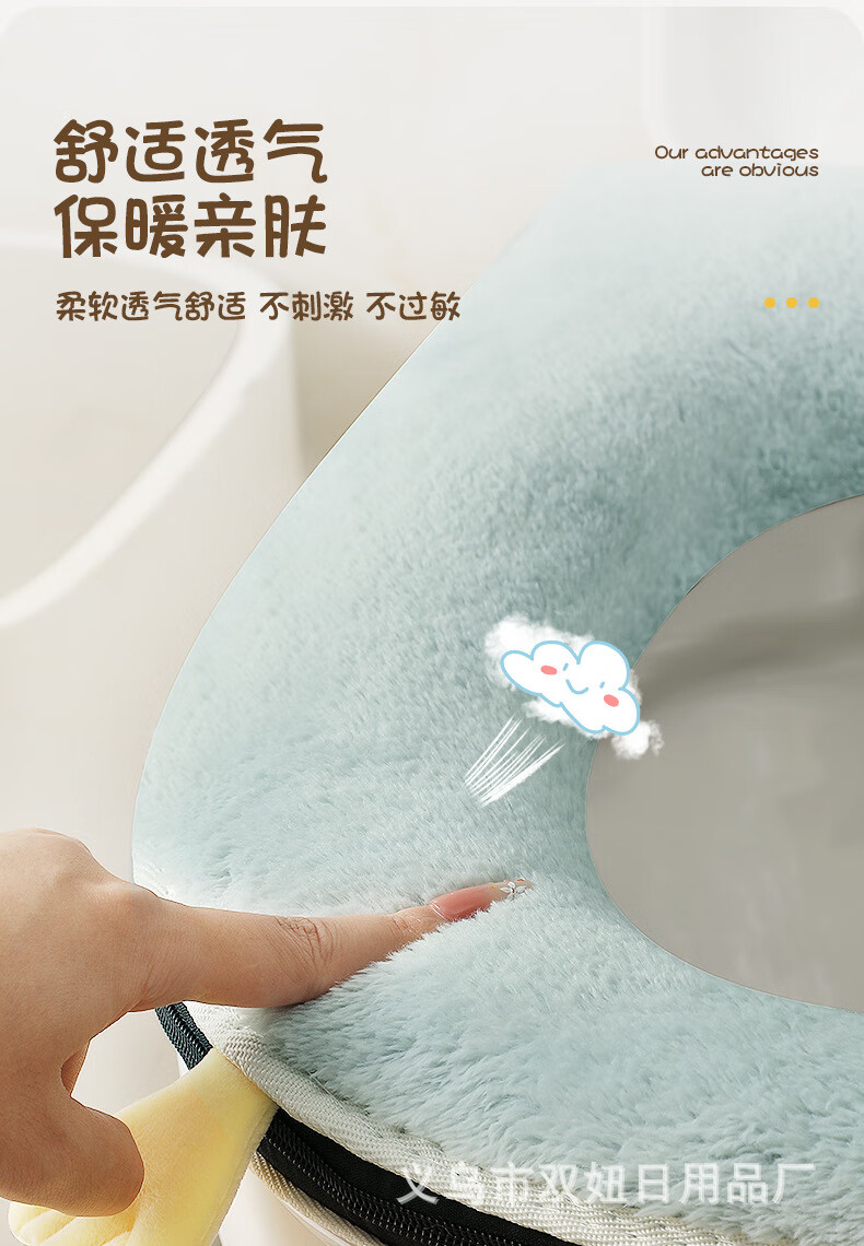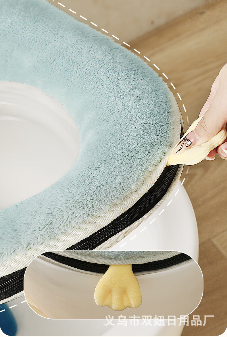 【甄选直发】马桶坐垫加厚冬季拉链垫圈家用坐便套通用防水马桶垫 粉色