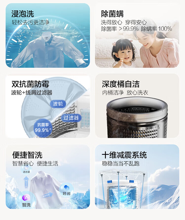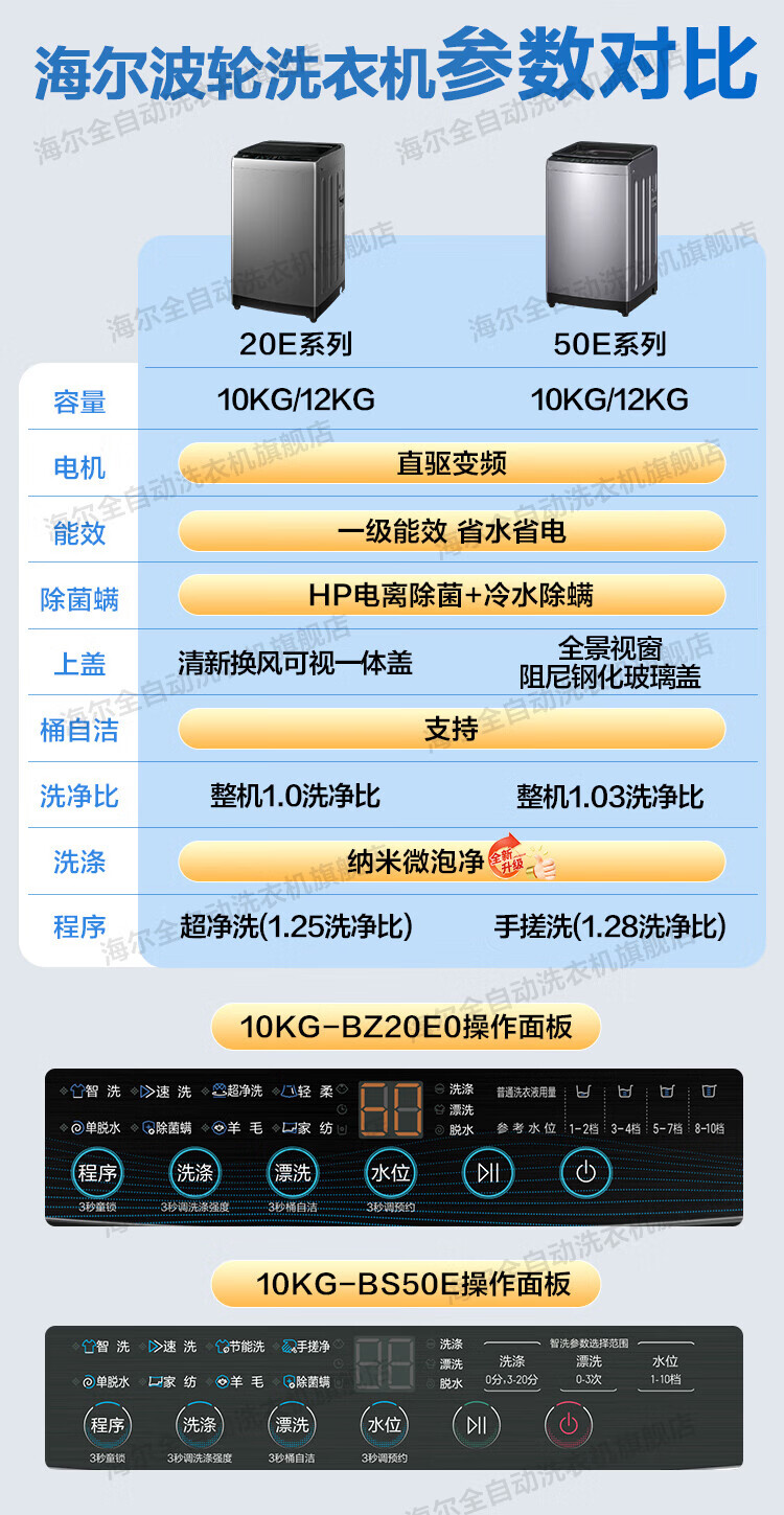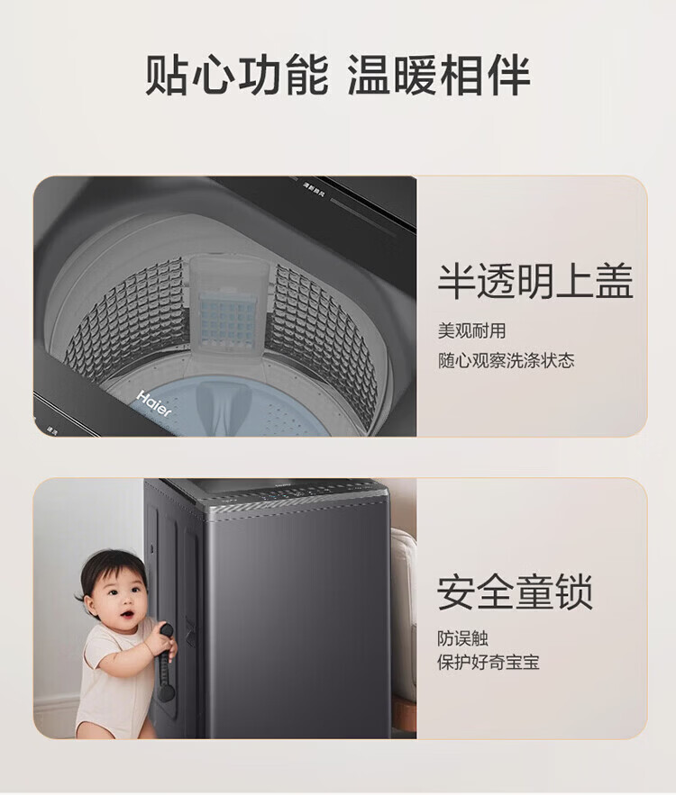 海尔(Haier)洗衣机波轮洗衣机全自动家用大容量上翻盖一级能效懒人直驱变频神童除菌螨 家电焕新补贴15% 【爆款】10KG+超净洗+纳米微泡净+七维减震 波轮