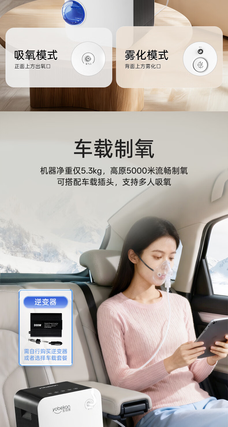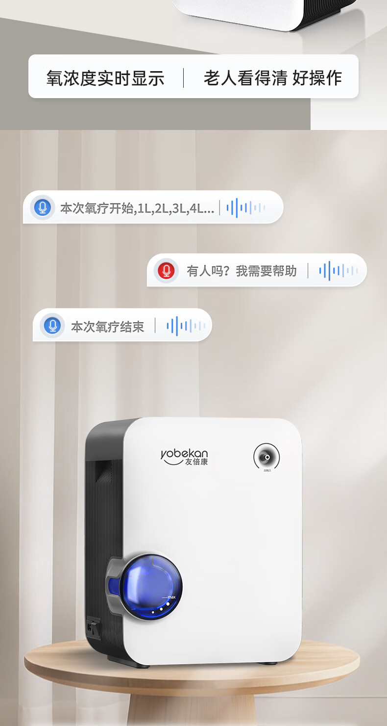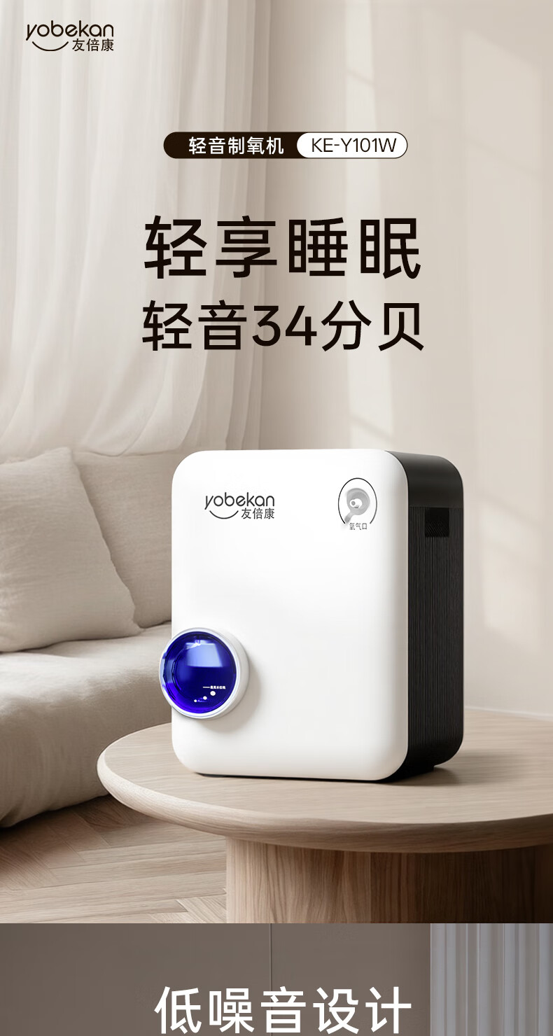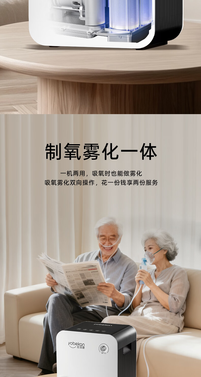 友倍康(yobekan)家用制氧机吸氧机老人氧气机制氧雾化一体机孕妇增氧机KE-Y101W 【双倍大流量款】2-9升氧可调+血氧仪+散热风机