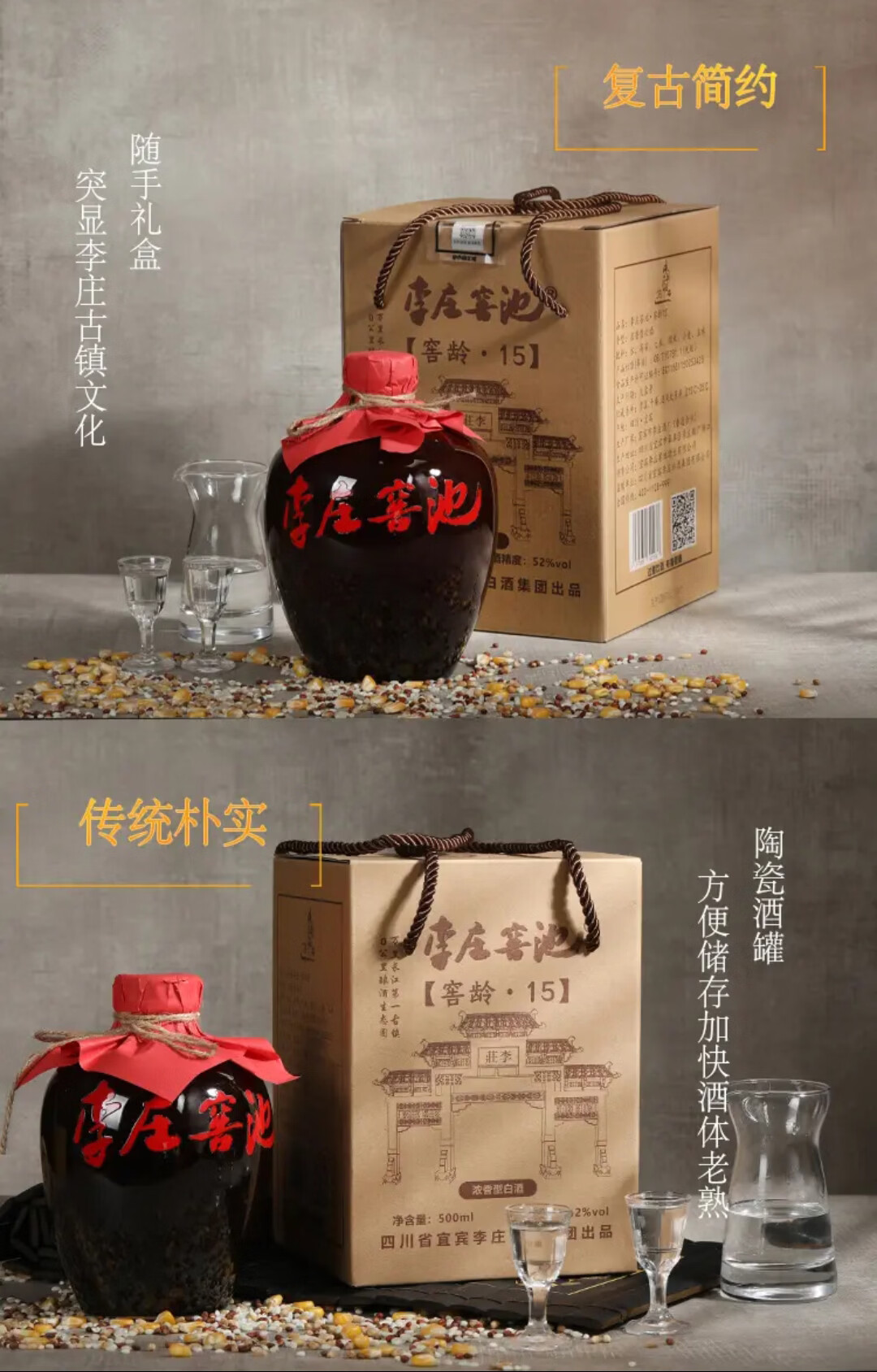 李庄窖池窖龄15 52度浓香型白酒宜宾酒年货节送礼白酒礼盒固态发酵粮食酒 45度 500mL 1瓶 【古酿】手提礼盒