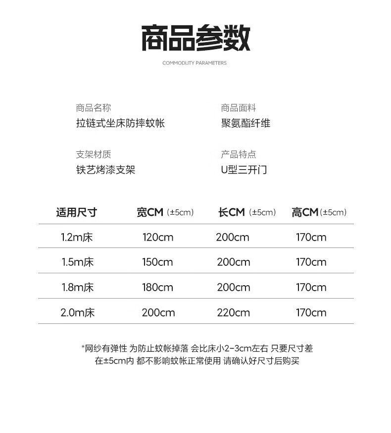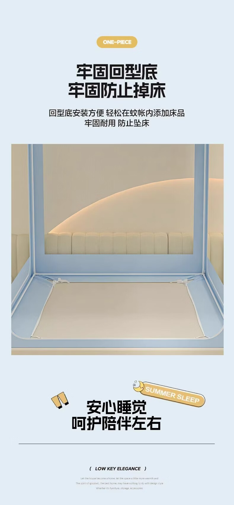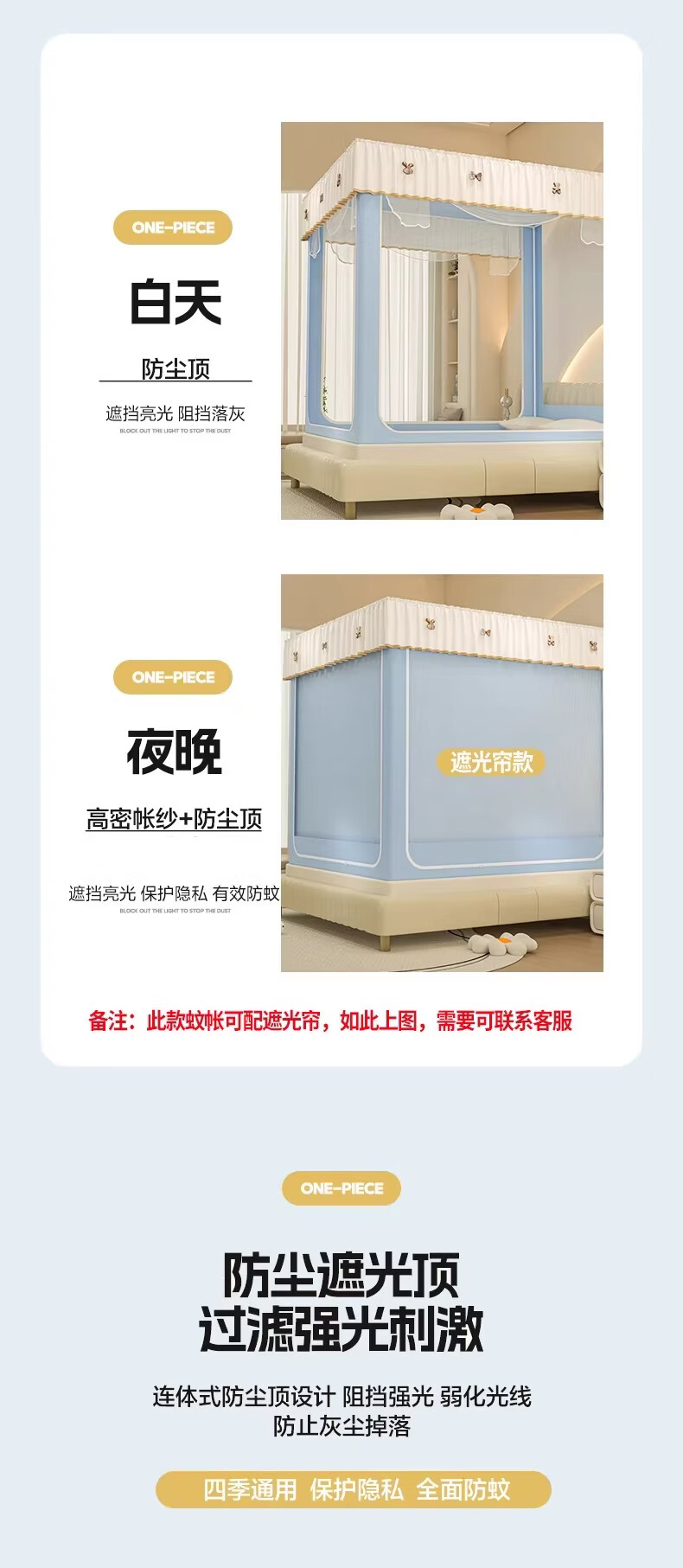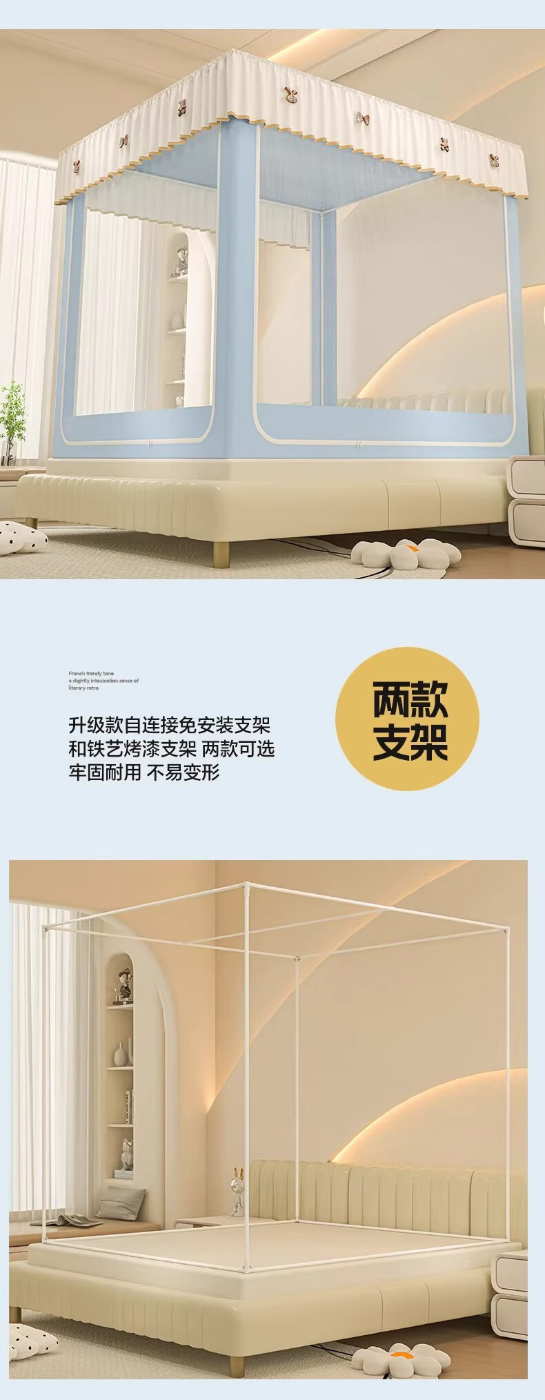无印良品防摔蚊帐1.8x2米家用遮光床帘蚊帐一体式免安装婴儿童防掉床围栏 淡蓝【A类加密帐纱 防蚊防摔】 120cm*200cm*170cm 【自连接支架】